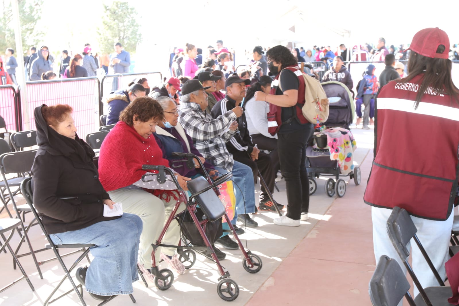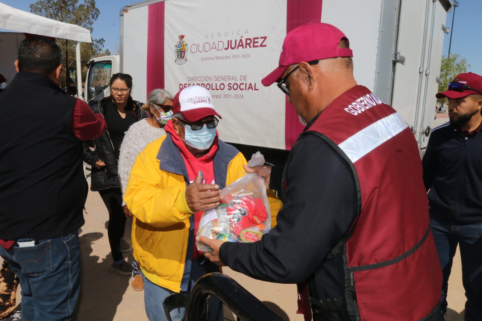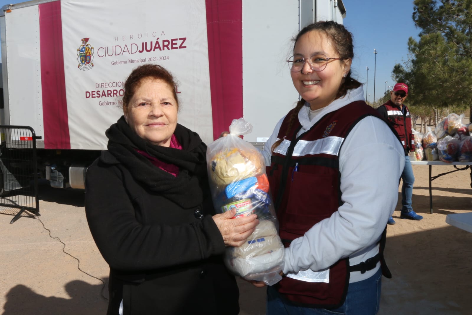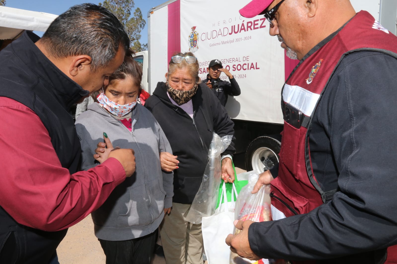 Cargada con una despensa y la solicitud de diferentes apoyos y trámites, la señora Claudia Carrillo Moreno agradeció por el acercamiento de los tres órdenes de Gobierno a través de la Segunda Jornada de Seguridad y Paz, Unidos por la Seguridad de los Juarenses.