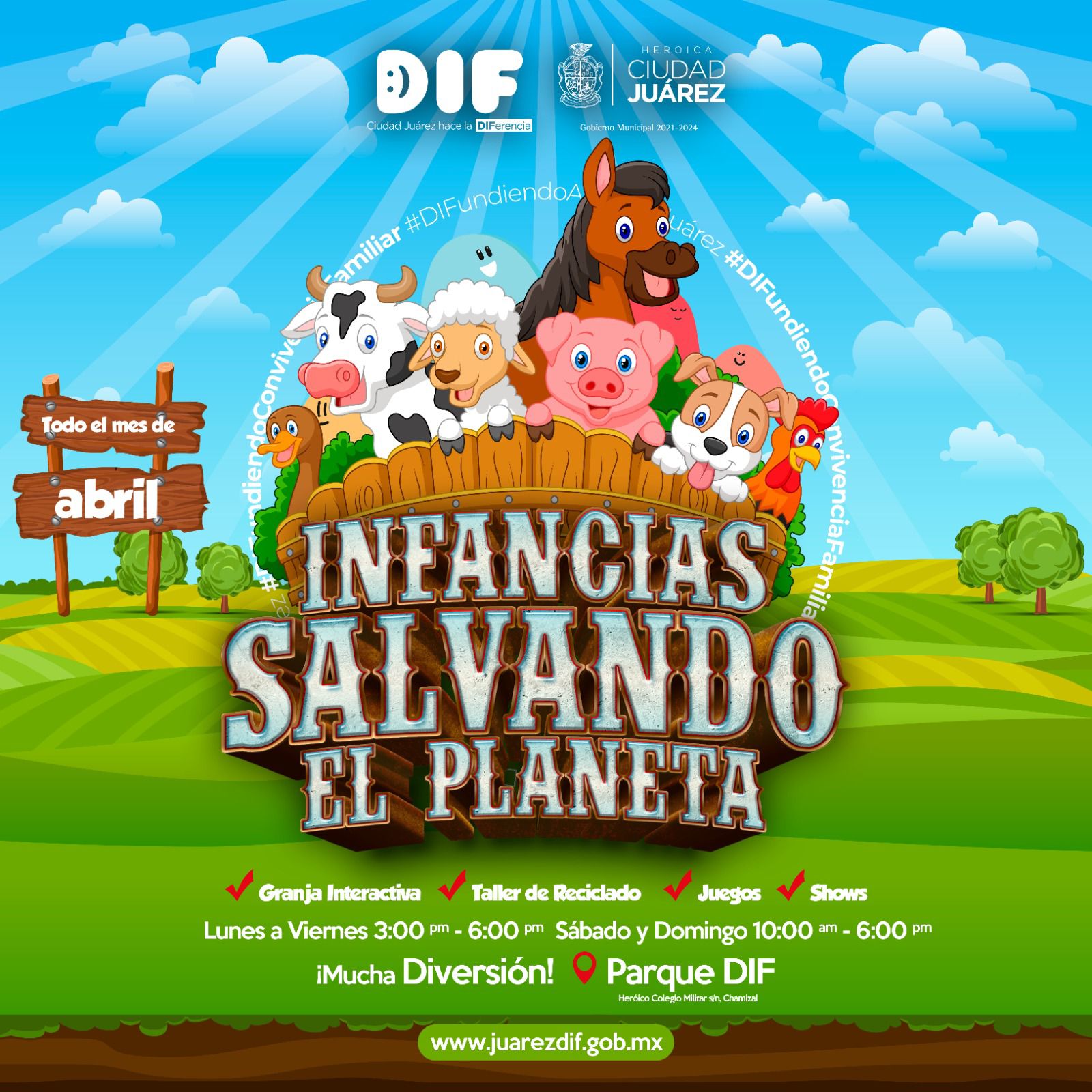 Un mundo de diversión y aprendizajes con dedicatoria especial para las infancias presentó hoy el Sistema para el Desarrollo Integral de la Familia de Juárez, programa que será durante todo el mes de abril, de manera gratuita, en las instalaciones del Parque DIF.