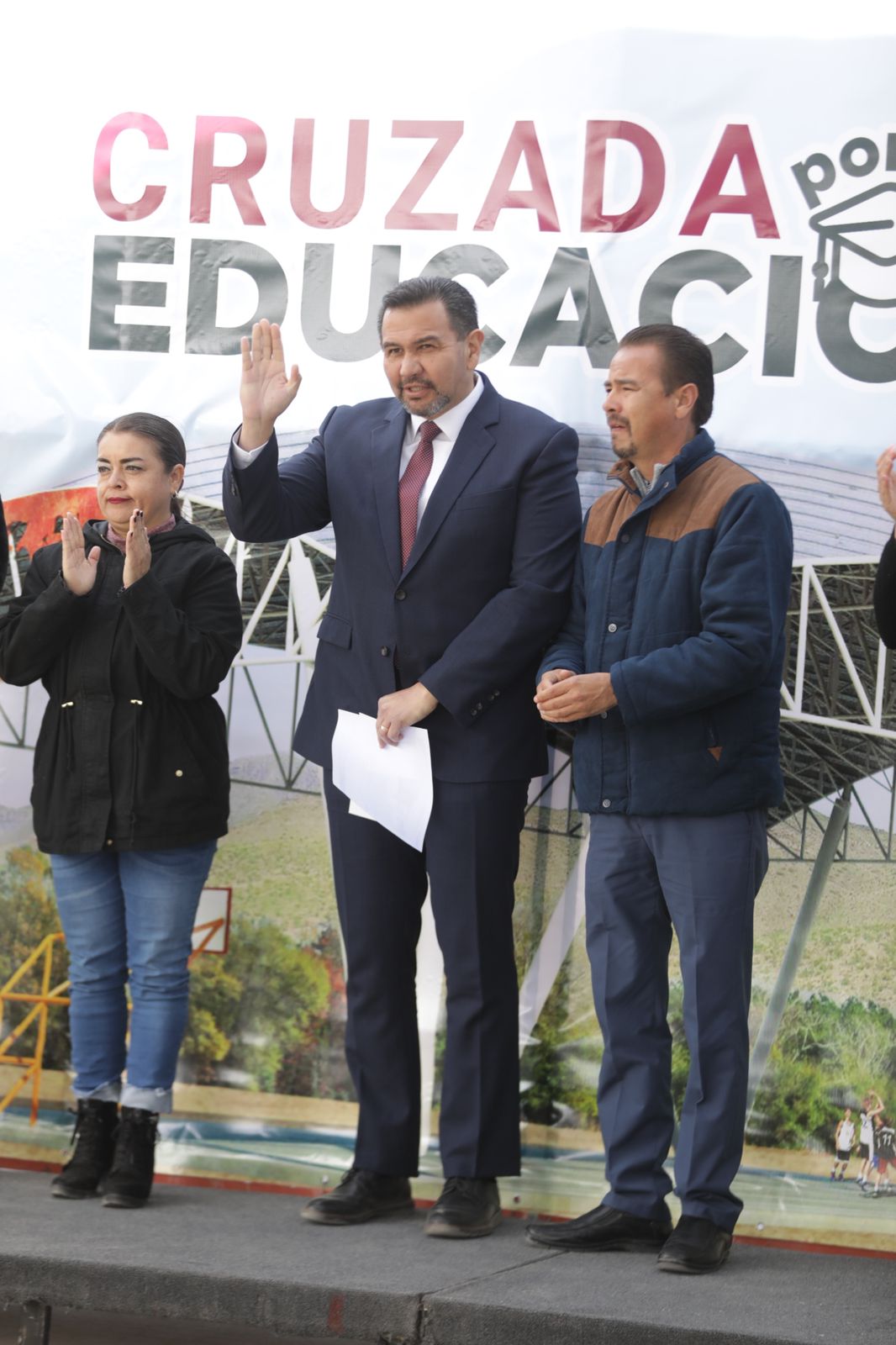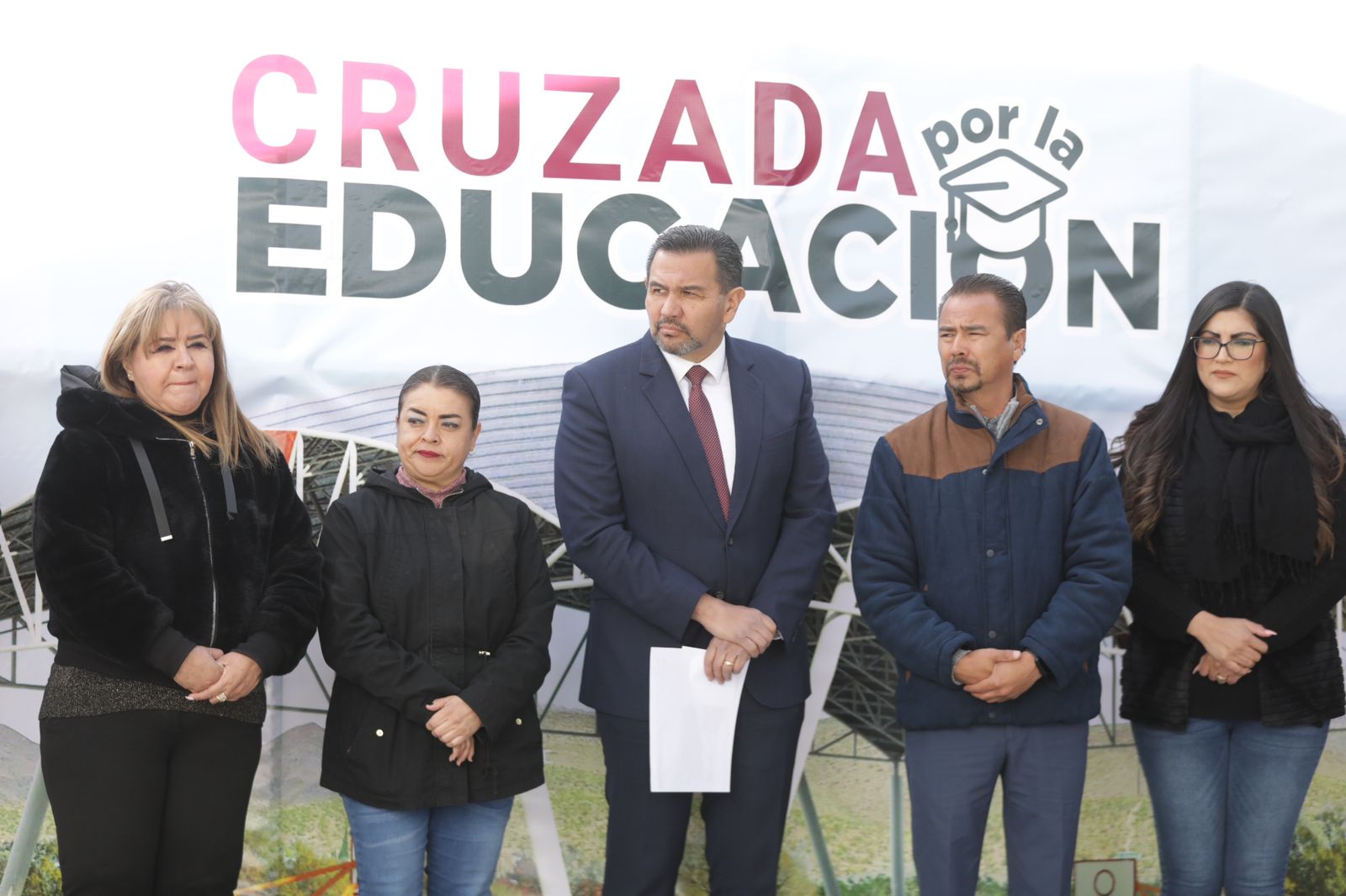 La entrega de ambas estructuras las llevó a cabo el Presidente Municipal, Cruz Pérez Cuéllar, quien reiteró su iniciativa de continuar mejorando las condiciones de los planteles, a fin de brindar a niños y jóvenes espacios en condiciones dignas que les ayuden a realizar actividades académicas, culturales y deportivas aminorando las inclemencias climáticas.