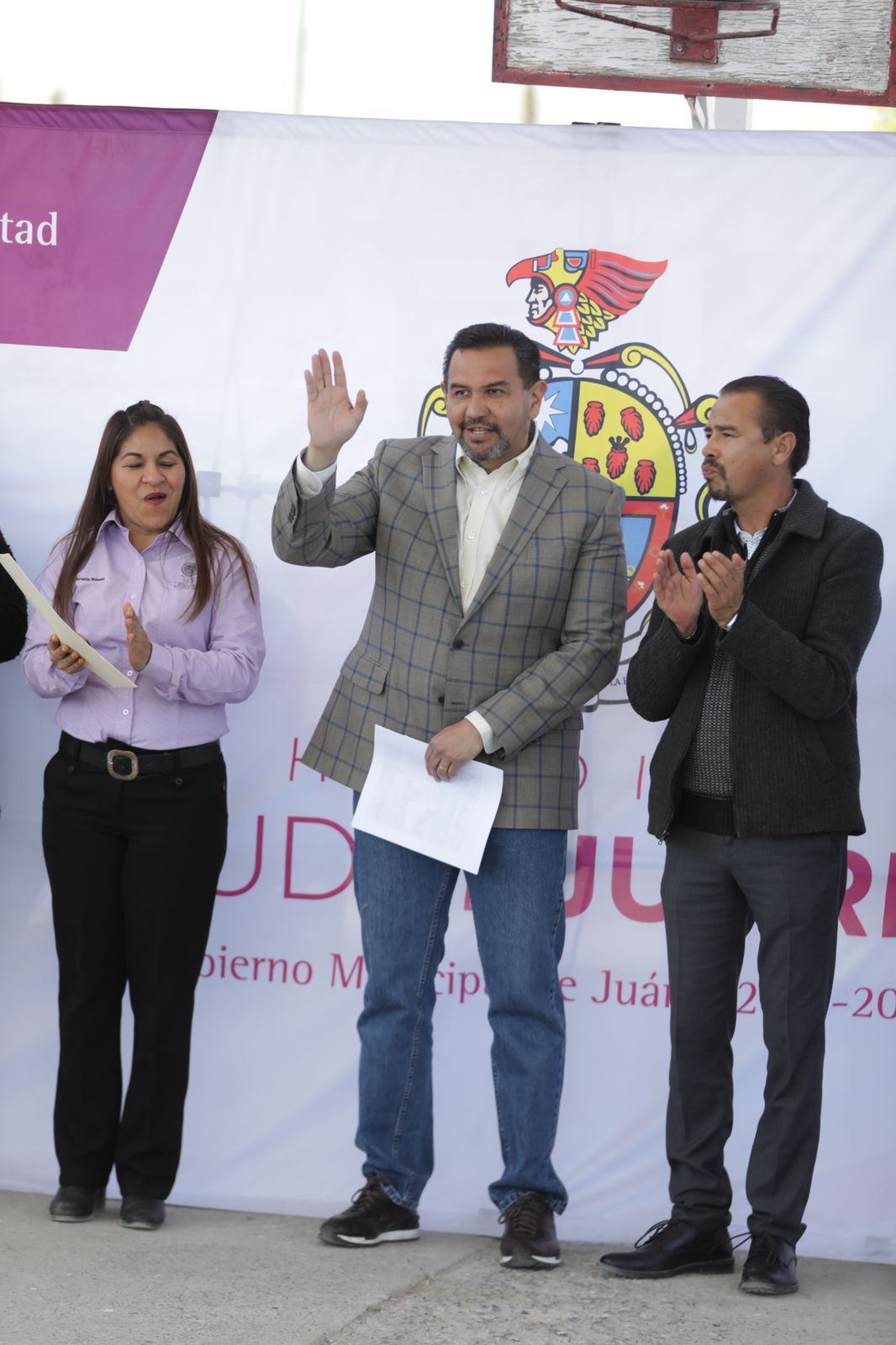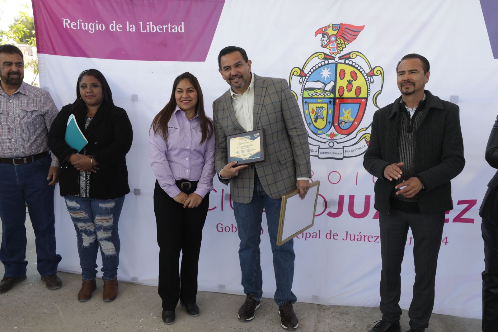 El Comité de Vecinos del sector y la administración de la escuela le entregaron dos reconocimientos al Presidente Municipal, como muestra de agradecimiento por los trabajos realizados, de igual forma se develo una placa por las obras.
