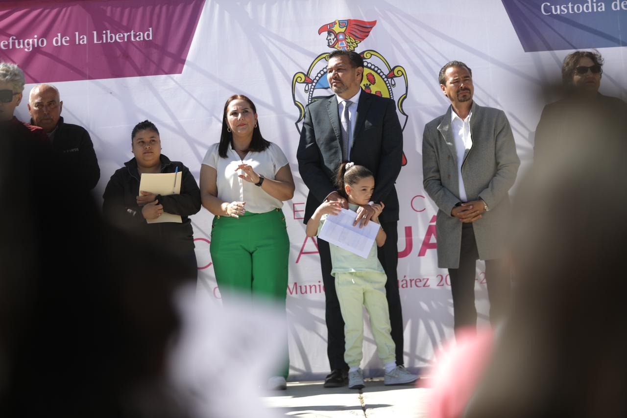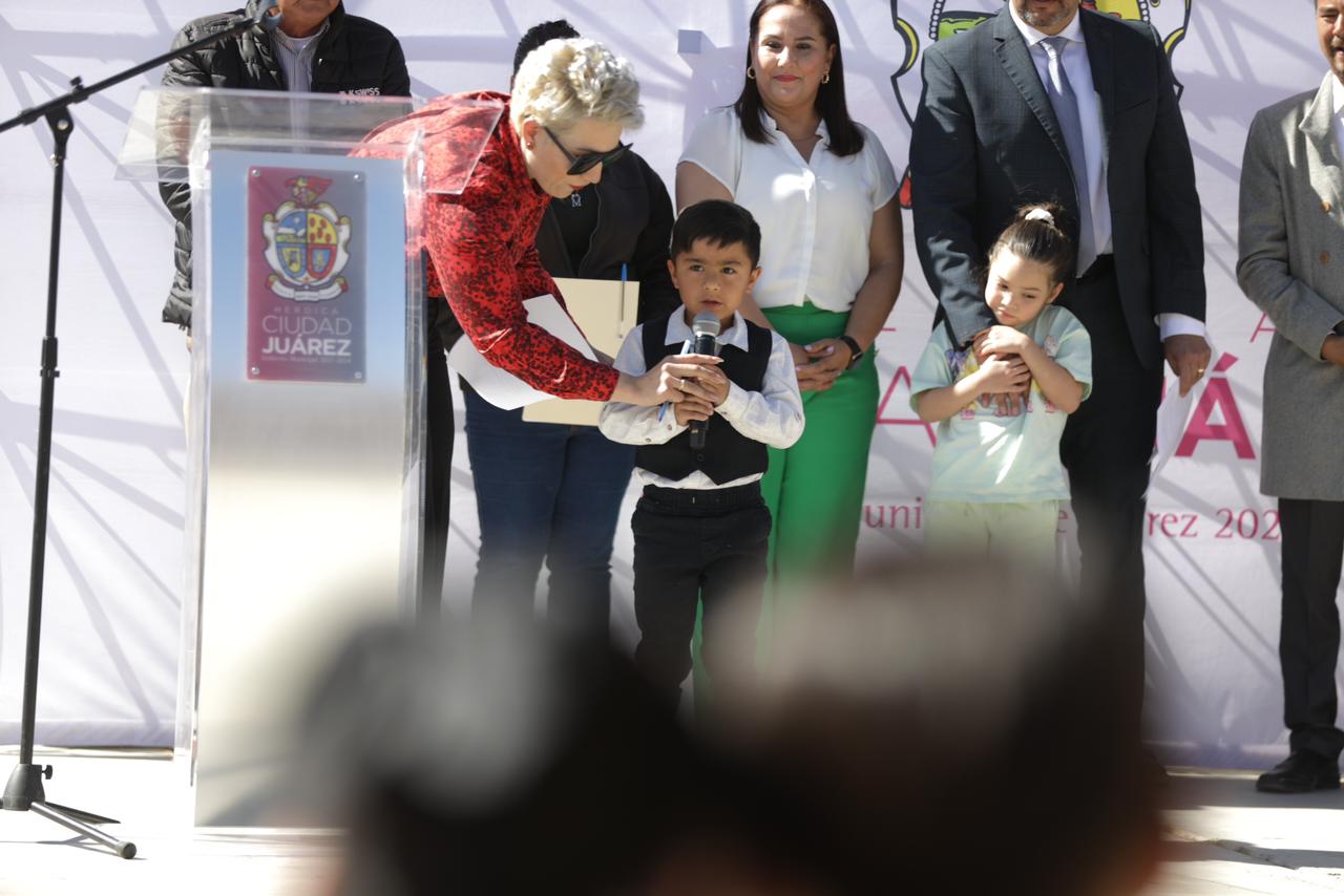 Frente a decenas de pequeños que estudian en el lugar, el alcalde dijo estar convencido de seguir apoyando a la niñez y juventud juarense.
