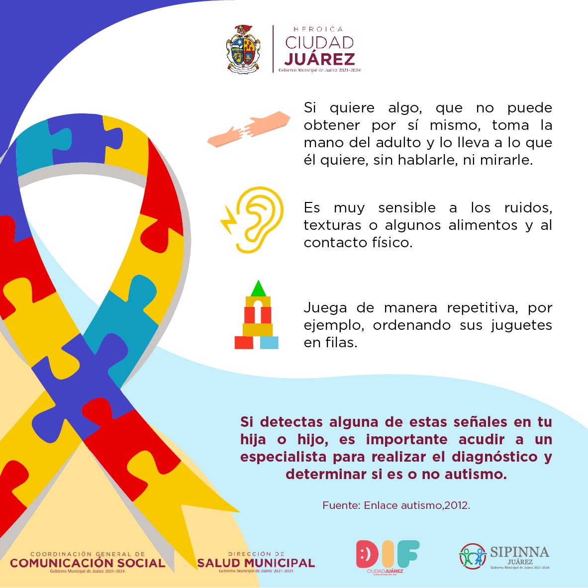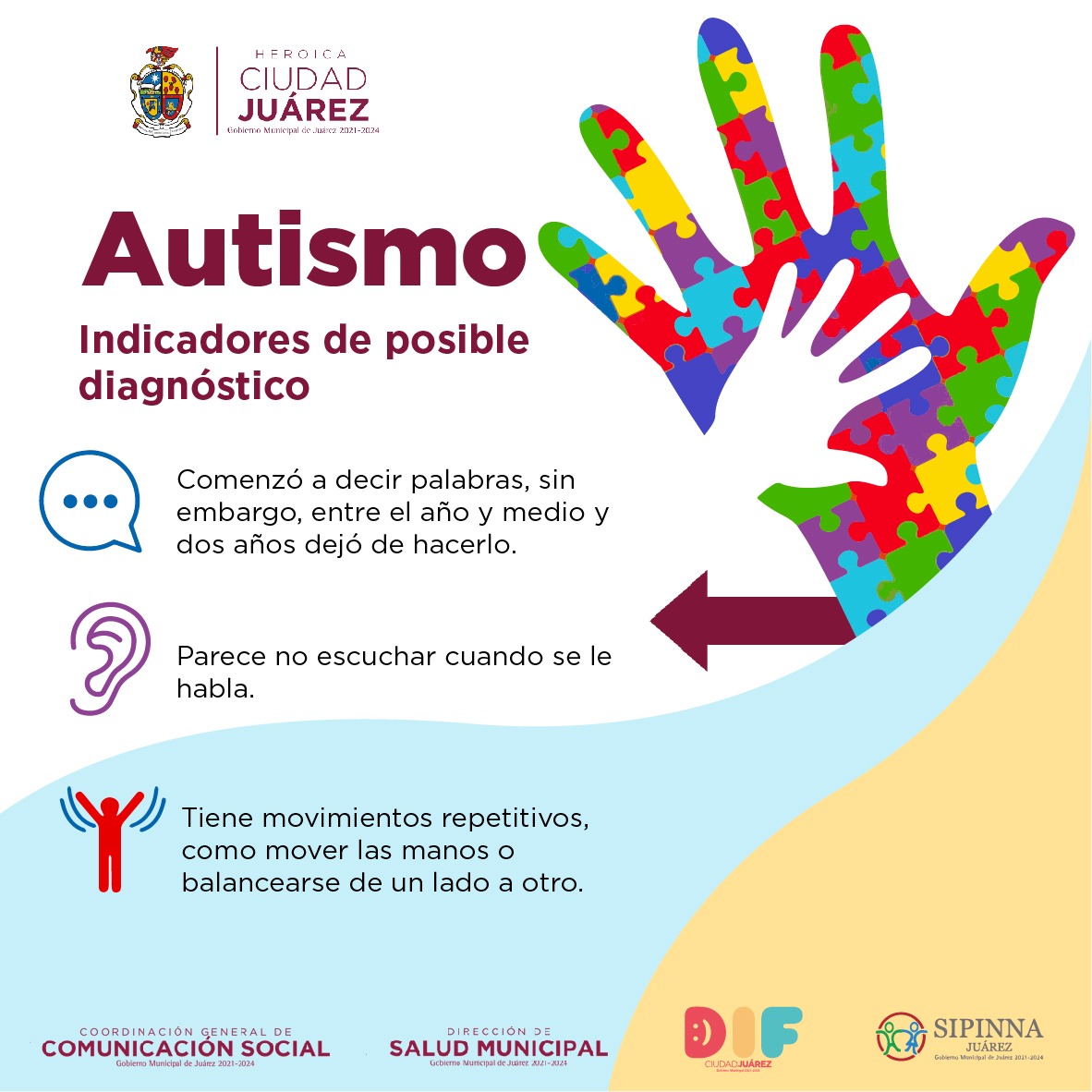 El Gobierno Municipal a través de diversas dependencias, dio a conocer varios indicadores que podrían indicar el padecimiento de autismo en niños, niñas y adolescentes, esto con el objetivo de que los padres lo detecten a tiempo y puedan brindar a sus hijos el apoyo necesario.