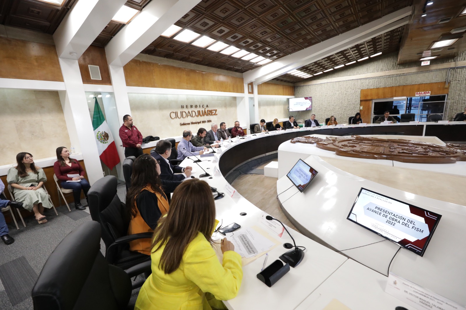 También se llevó a cabo la presentación de avances de obra relativos al Fondo de Infraestructura Social Municipal (FISM) 2022, con el cual se ejercieron 284 millones de pesos para la edificación de 62 domos escolares, la electrificación de una colonia y la intervención de nueve calles, entre las que destacan la repavimentación de la Hermanos Escobar, Ramón Rayón, José Méndez y Héroes del Carrizal.