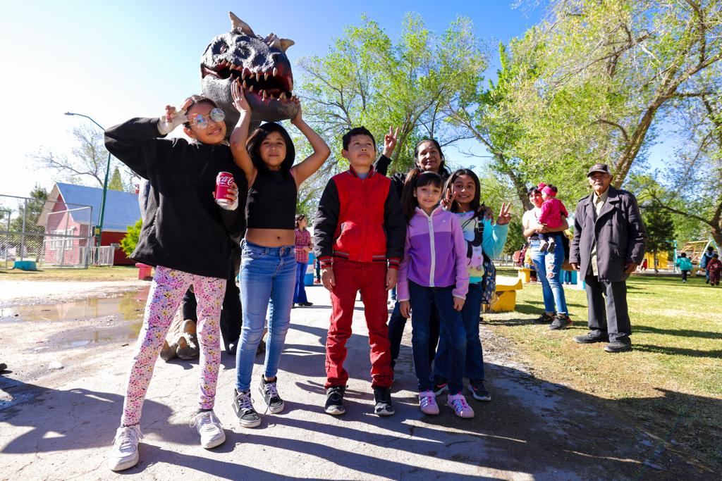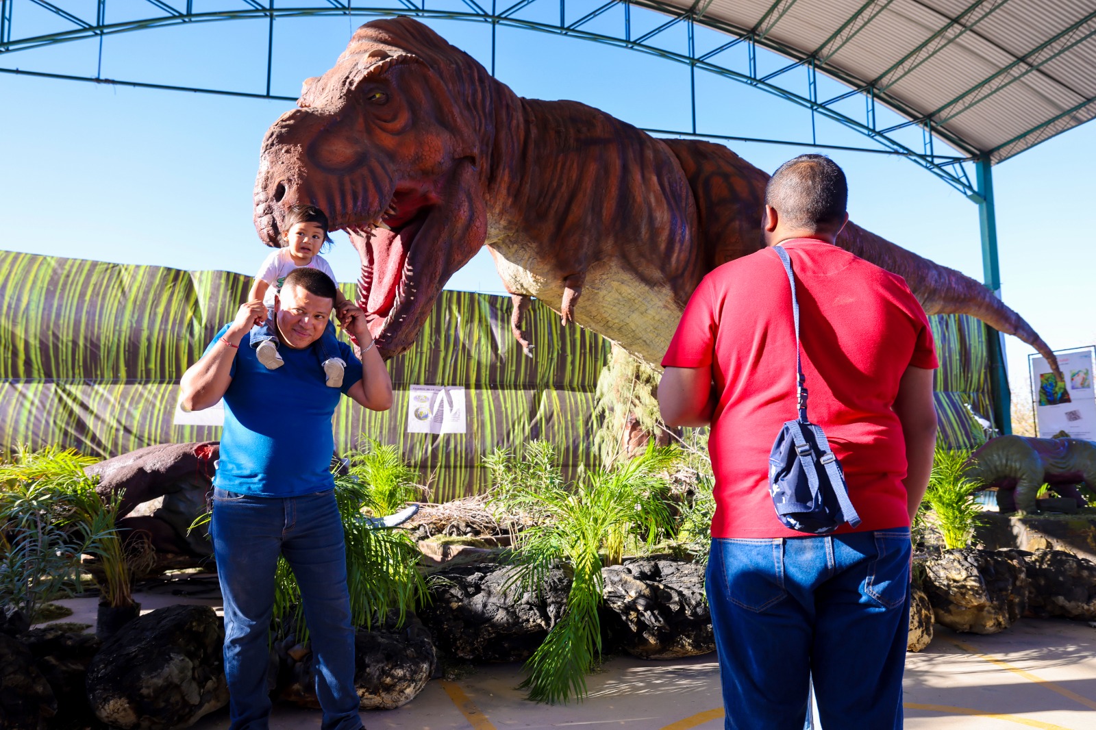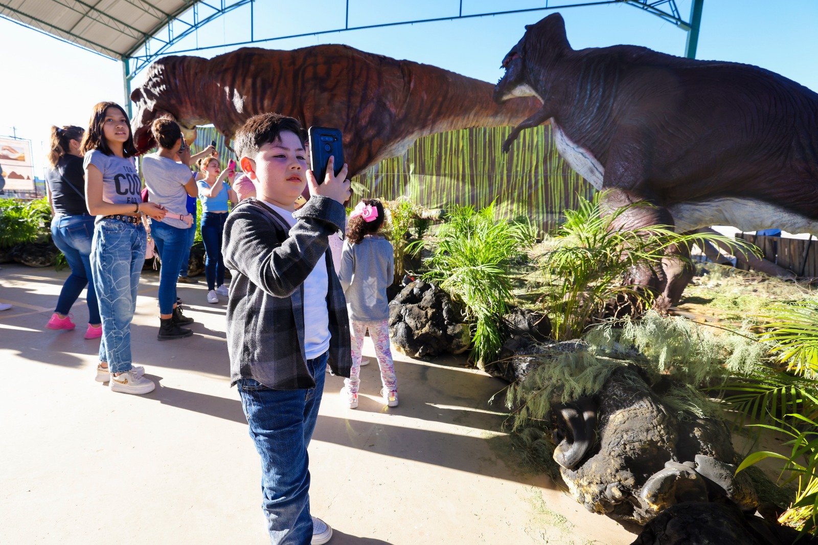 Este lunes, con un clima espléndido, se contó desde temprana hora con numerosas familias de las colonias Nueva Galeana, Independencia II, Andrés Figueroa y Águilas de Zaragoza, así como vecinos de la ciudad de El Paso, quienes con gran expectación, esperaban la llegada de los animales prehistóricos, que al momento de aparecer causaron un asombro mayor.