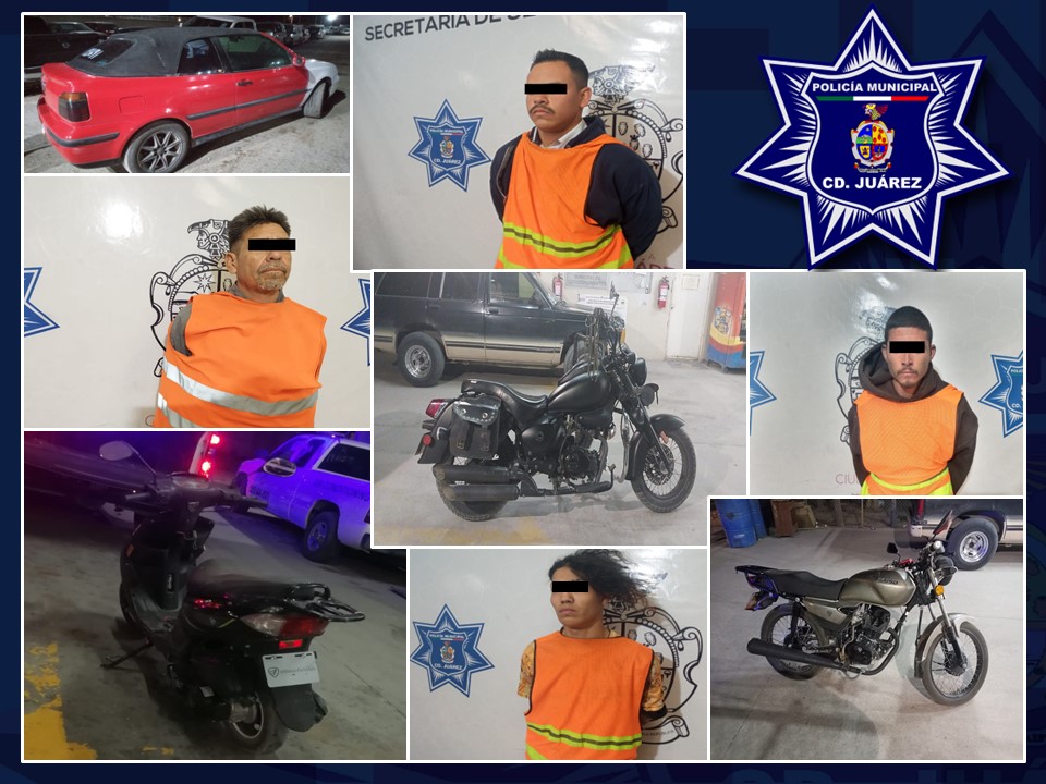 A 05 de abril de 2023.- Elementos de la Secretaría de Seguridad Pública Municipal arrestaron a cuatro personas por su presunta responsabilidad en la comisión del delito de posesión de vehículo con reporte de robo.