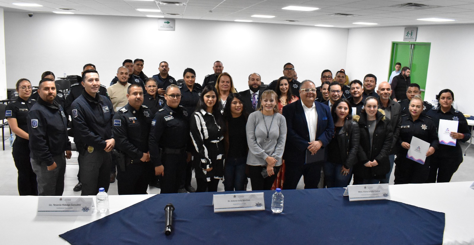Personal del área de Transversalización del Instituto Municipal de las Mujeres (IMM), en coordinación con la Secretaría de Seguridad Pública Municipal (SSPM), impartió un diplomado en Atención Policial a la Violencia de Género contra las Mujeres, dirigido a los agentes de la corporación.