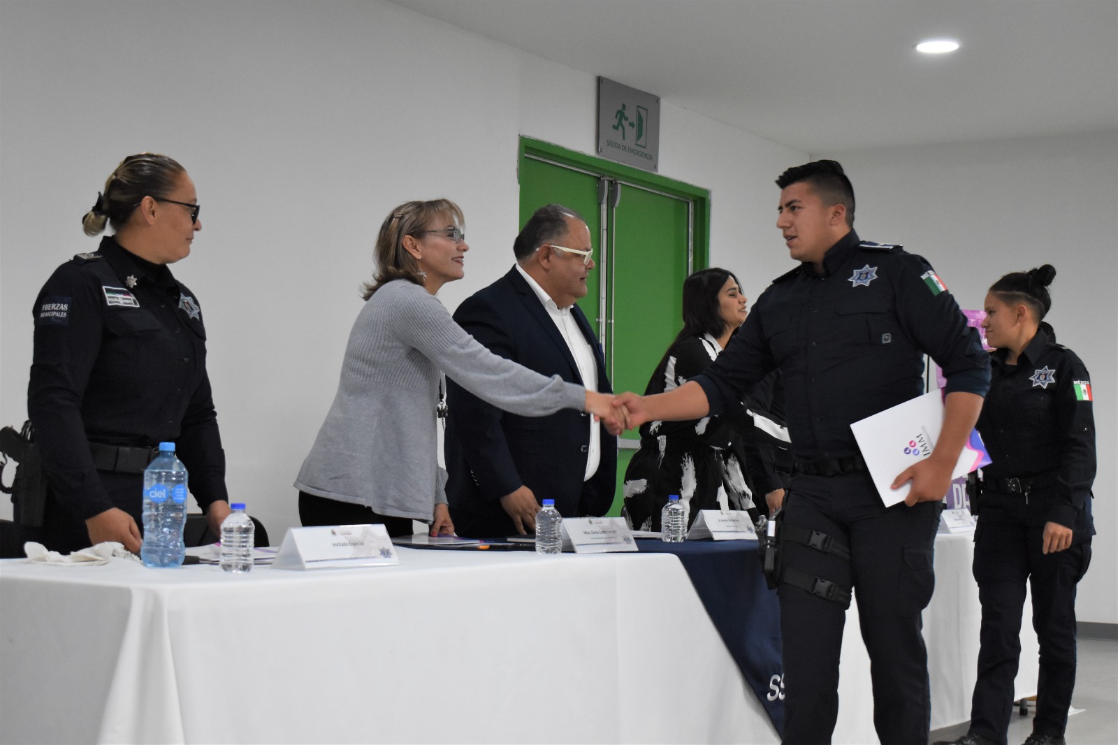 Durante el evento de clausura se entregaron las constancias para los agentes preventivos que tomaron el diplomado; estas fueron entregadas por parte de la directora del IMM y la coordinadora de Transversalización, así como la comandante Maribel Madrid Hernández; el director de Prevención Social de la SSPM, Antonio Salas y el comandante de la UNEVID, Enrique Burciaga.