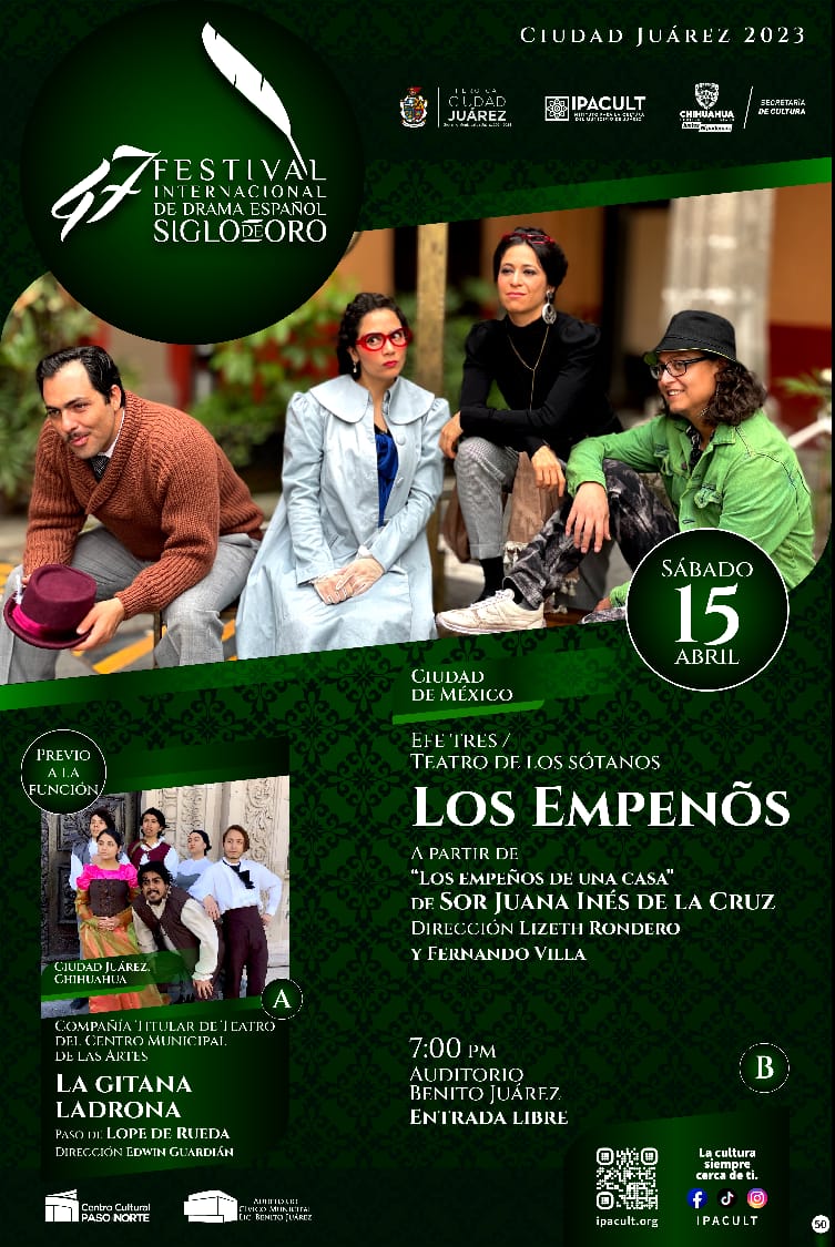 El Gobierno Municipal 2021-2024 a través del Instituto para la Cultura del Municipio de Juárez (IPACULT) invita al Festival Internacional de Drama Siglo de Oro, uno de los más representativos en cuestión de eventos culturales con más tradición en la comunidad fronteriza.