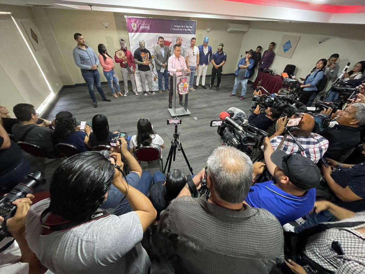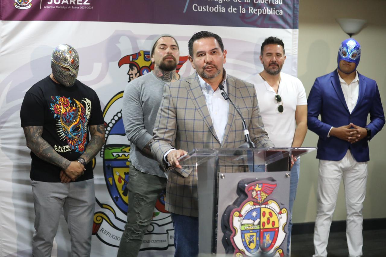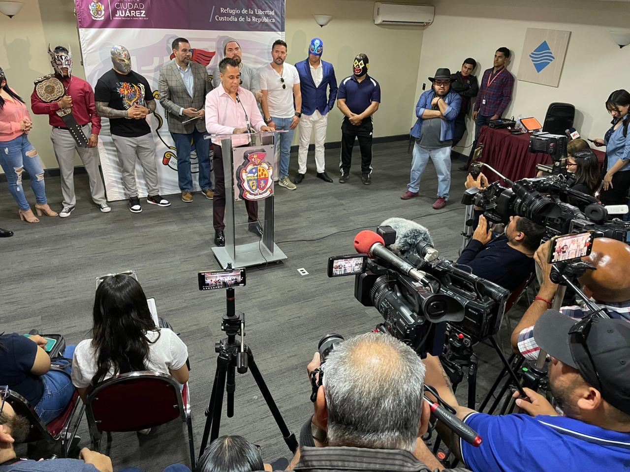 En conferencia de prensa, el Presidente Municipal, Cruz Pérez Cuéllar, invitó a los juarenses a disfrutar de manera gratuita el evento en el que participarán más de 35 luchadores locales y foráneos.