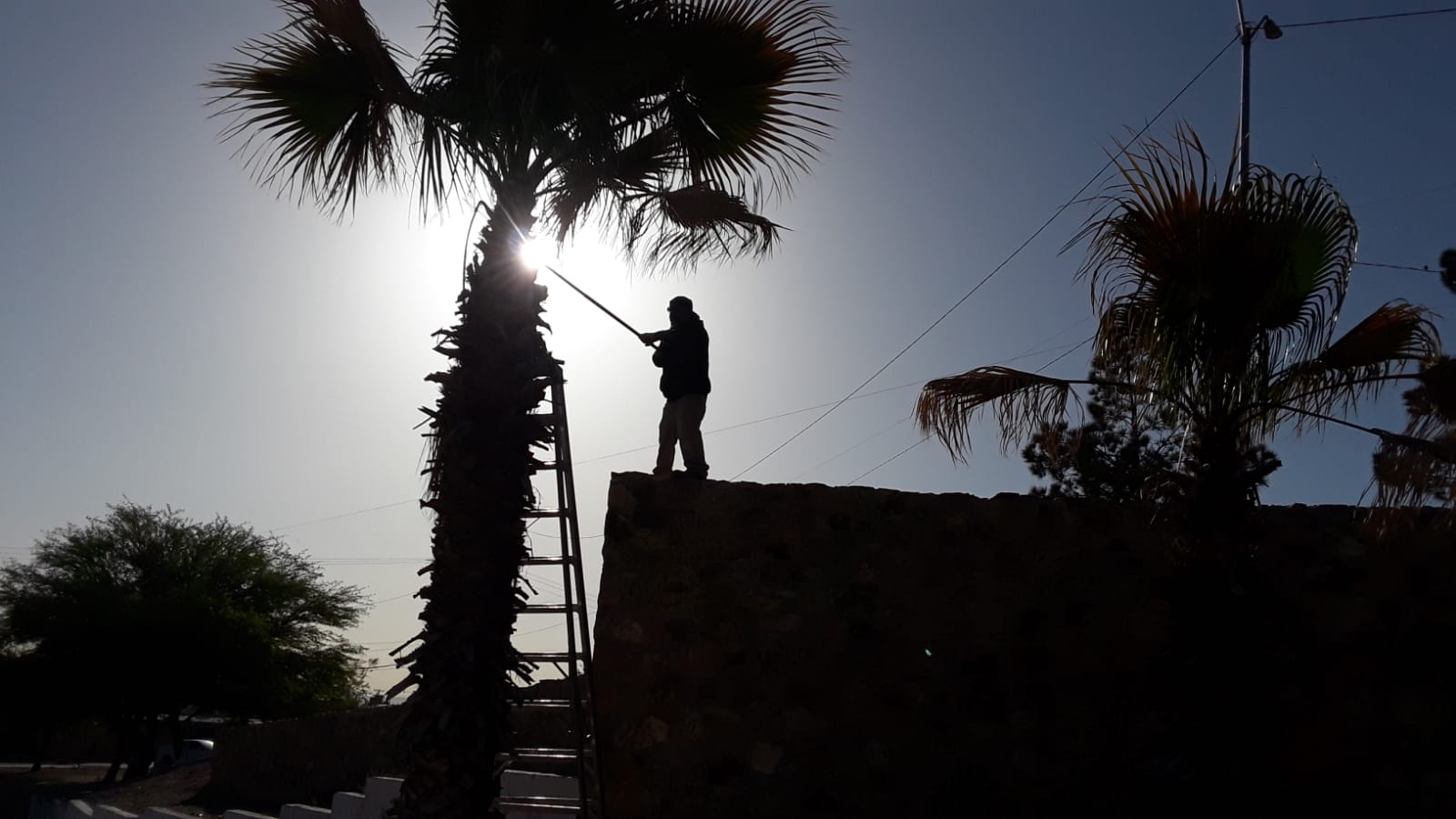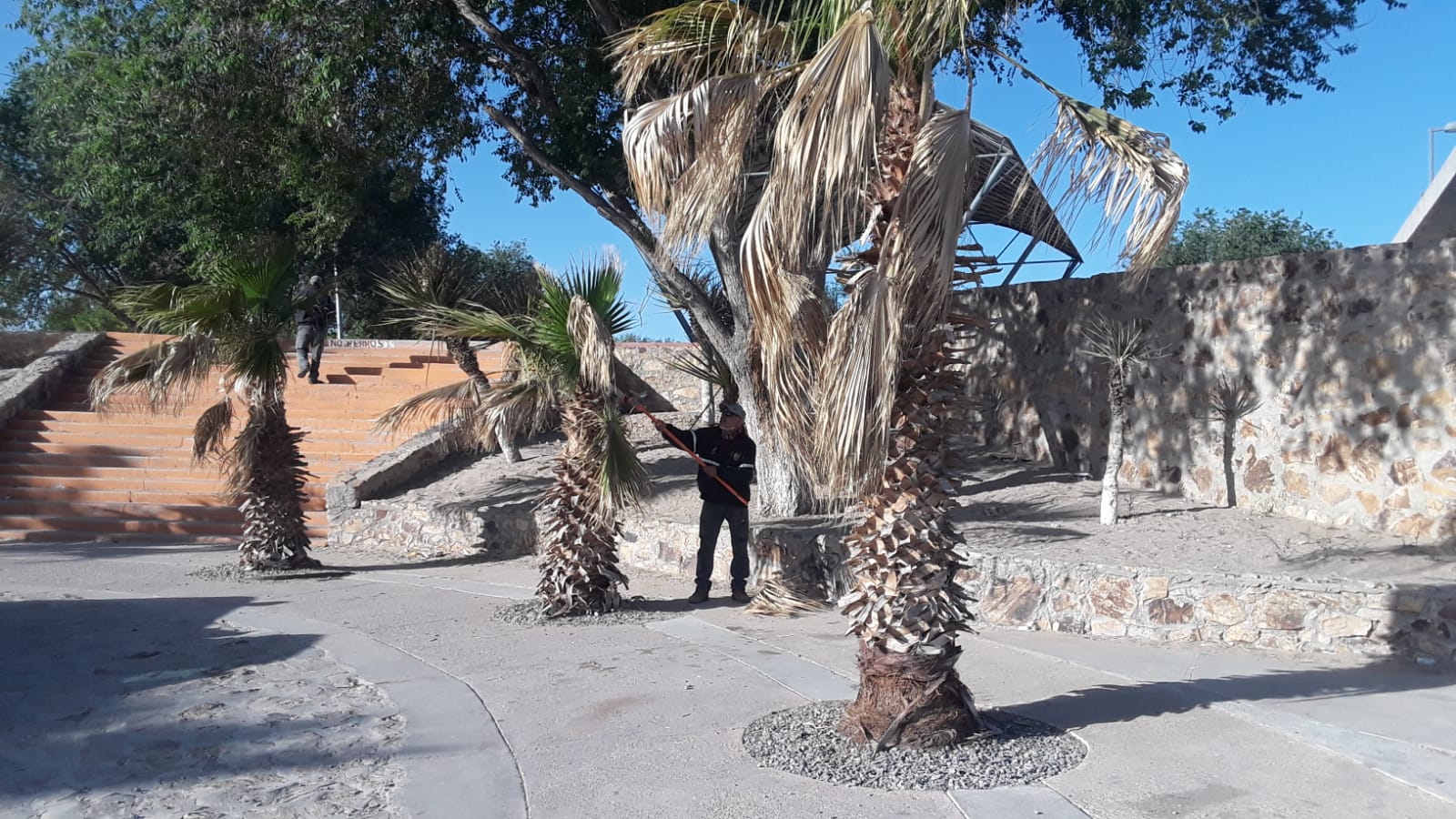 Personal de la Dirección de Parques y Jardines se encuentra trabajando en las instalaciones del Parque Oriente en actividades de limpieza, poda estética, deshierbe y pintura en el área de acceso.