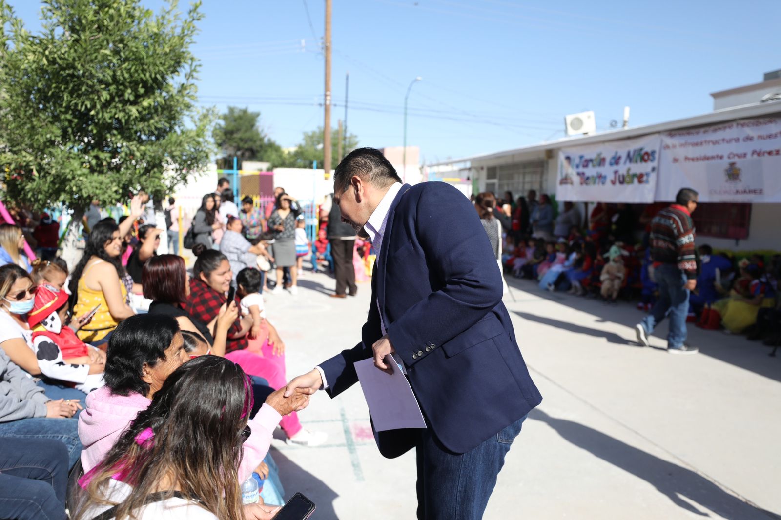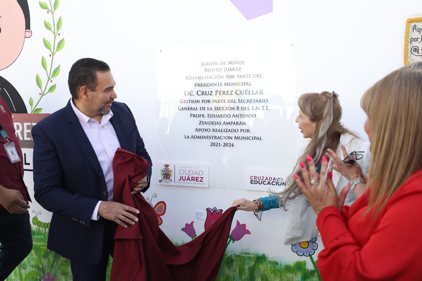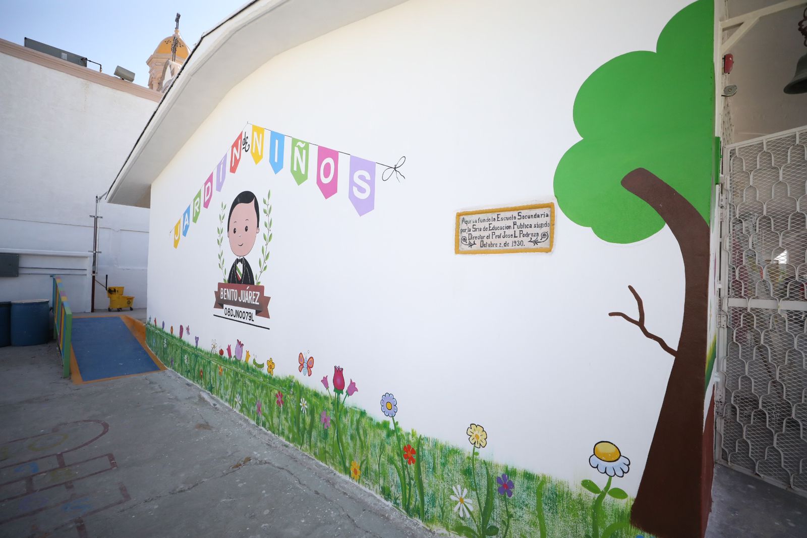 El Presidente Municipal, Cruz Pérez Cuéllar, entregó esta mañana varias obras de mejora en el Jardín de Niños Benito Juárez, localizado entre las calles Constitución y Carlos Villarreal, el cual es considerado el primer preescolar fundado en esta ciudad, con 93 años de existencia.