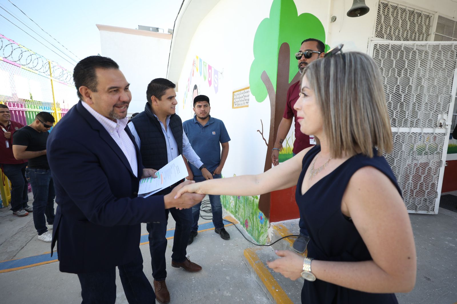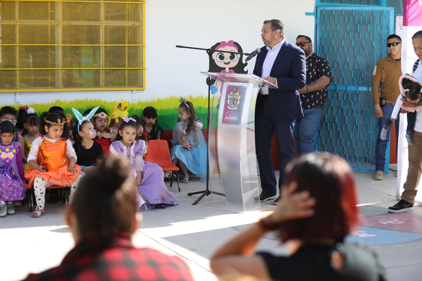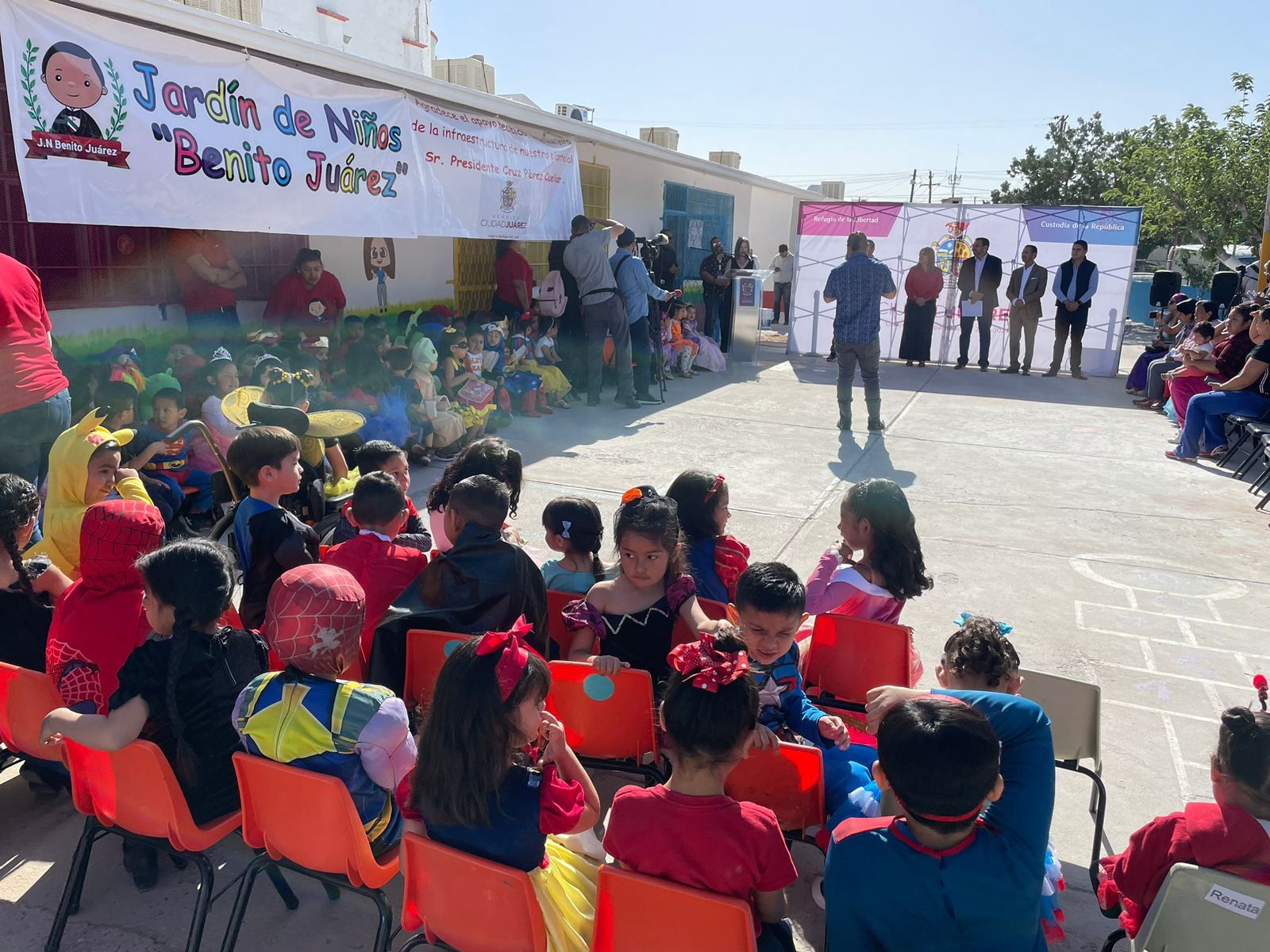 El Presidente Municipal, Cruz Pérez Cuéllar, entregó esta mañana varias obras de mejora en el Jardín de Niños Benito Juárez, localizado entre las calles Constitución y Carlos Villarreal, el cual es considerado el primer preescolar fundado en esta ciudad, con 93 años de existencia.