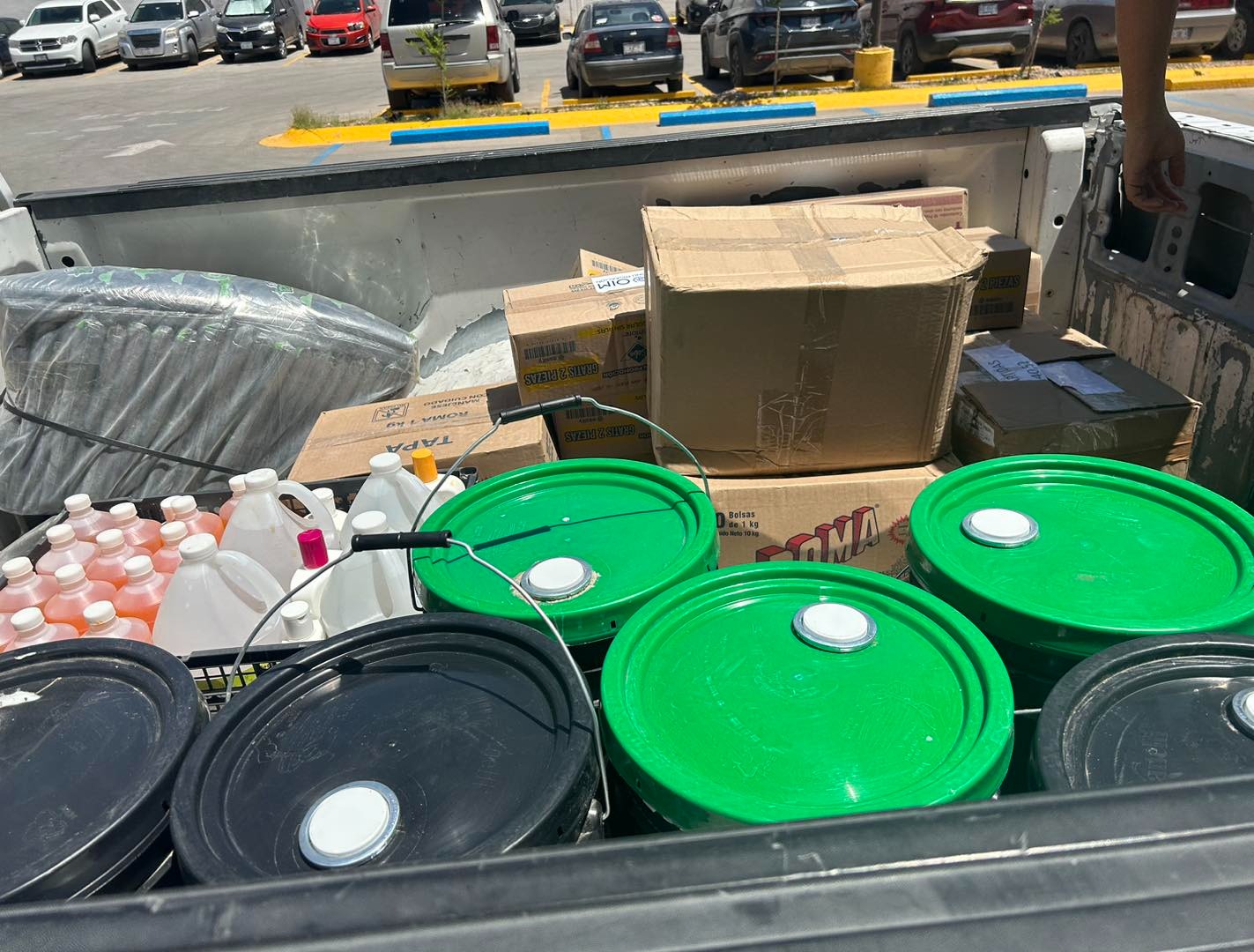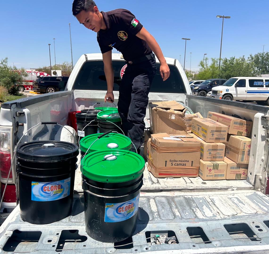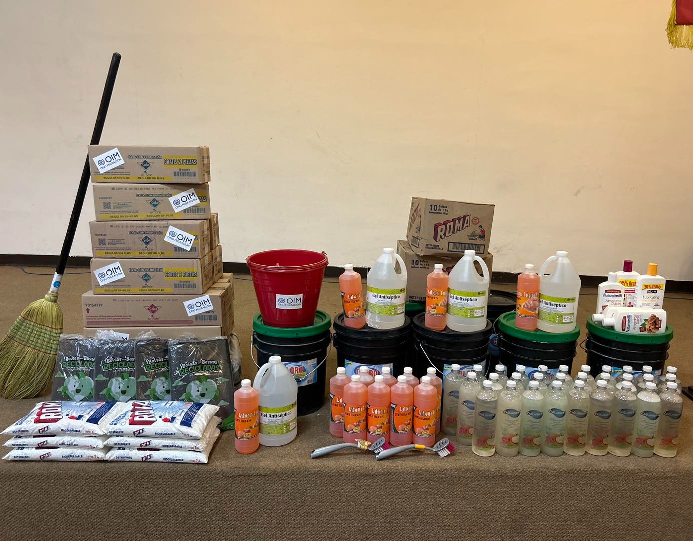 Entre los artículos donados se encuentran 43 botellas de jabón líquido para manos, 20 kilogramos de jabón en polvo, 140 litros de cloro, cuatro galones de gel antibacterial, 25 kilogramos de bolsas para basura, dos cubetas, una escoba y un paquete de cremas para manos.