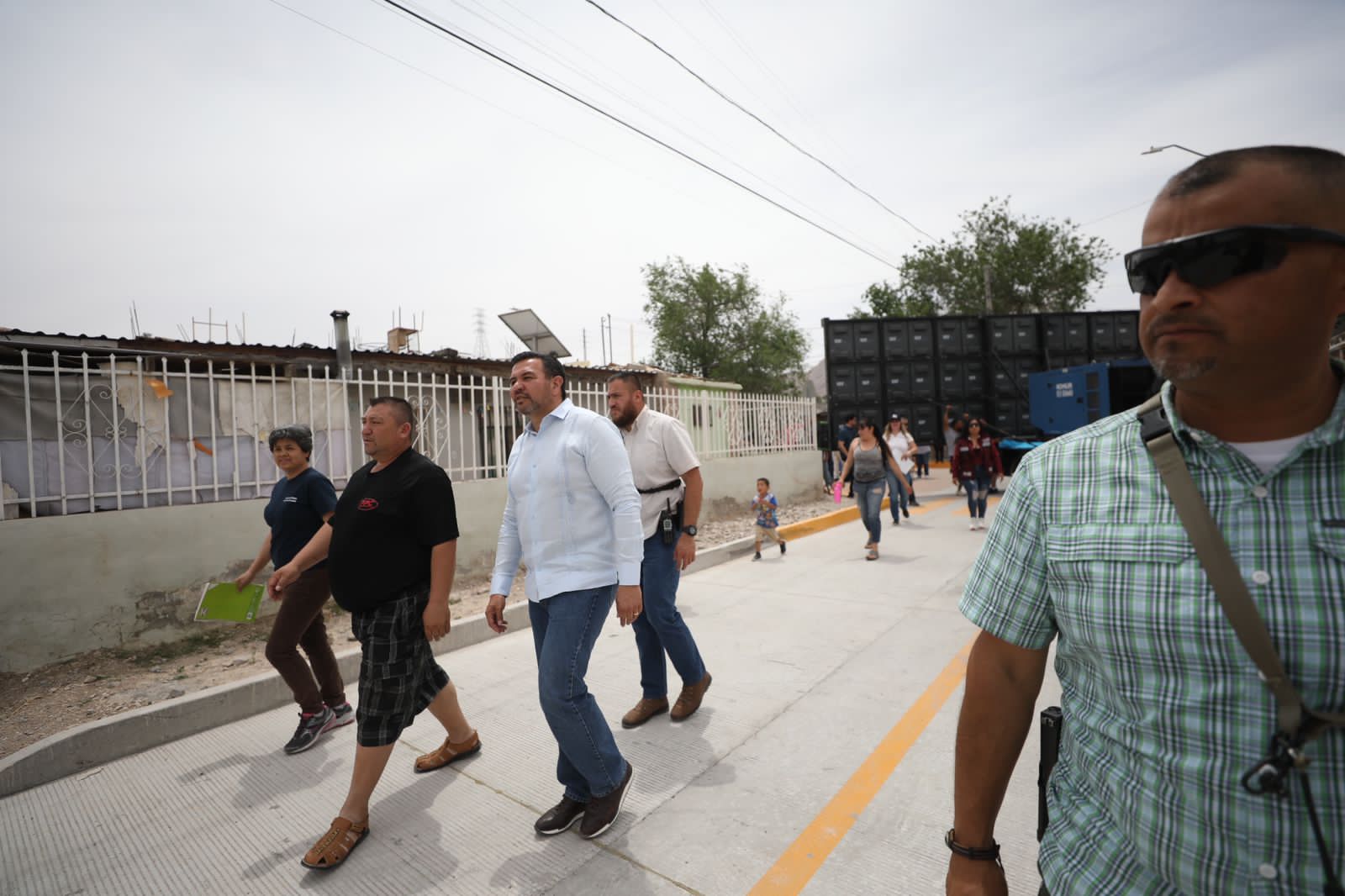 El Presidente Municipal, Cruz Pérez Cuéllar, estuvo en la colonia Fronteriza Baja para entregar a la ciudadanía las obras de pavimentación de las calles Loreto, Pascual Jaramillo y Doctor Manuel Ruíz, las cuales fueron atendidas por el Municipio a través del Programa de Presupuesto Participativo 2022.