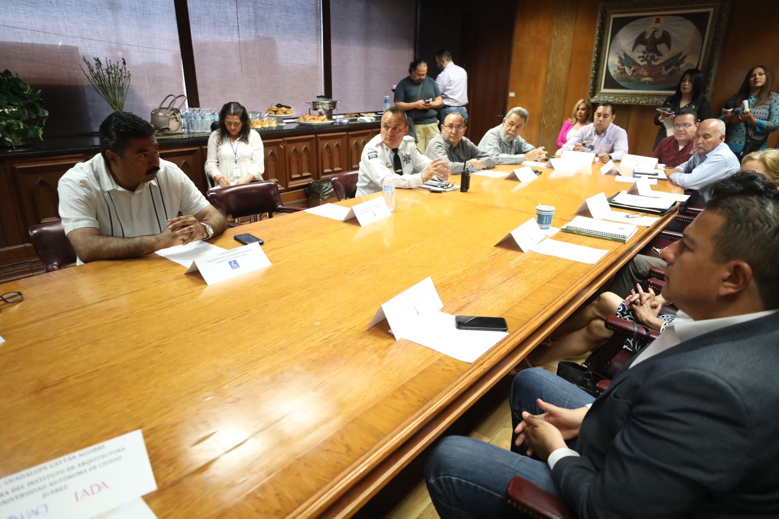 Además de Carlos Israel Nájera Payán, coordinador general de Comunicación Social; Socorro Arredondo, representante del Archivo Histórico del Ayuntamiento de Juárez; Vicente López Urueta, presidente del Consejo de Planeación Urbana; Álvaro Roberto Mora Palacios, director general del Instituto Municipal de Investigación y Planeación y Jorge Luis Chavira Cano, titular de la Secretaría de Desarrollo Urbano y Ecología del Estado.