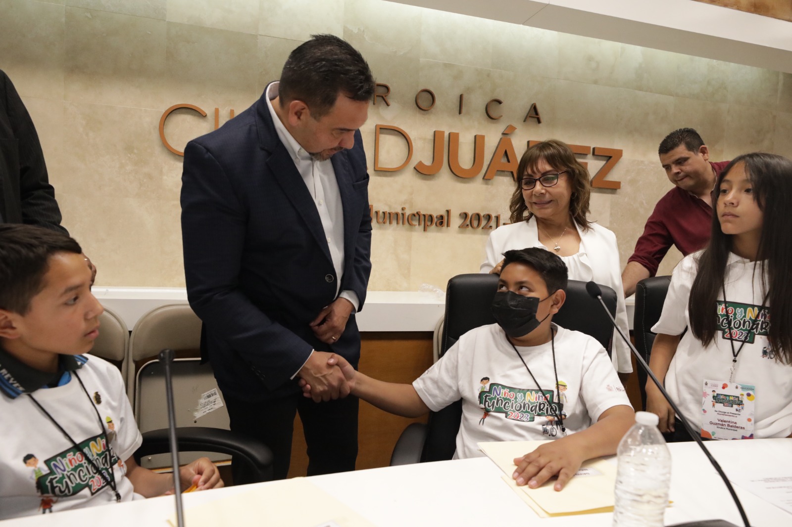 El niño regidor Adrian Alejandro Reyes Orona, propuso la creación de un parque adaptado para niños con alguna discapacidad y en donde todos por igual puedan divertirse de manera segura.