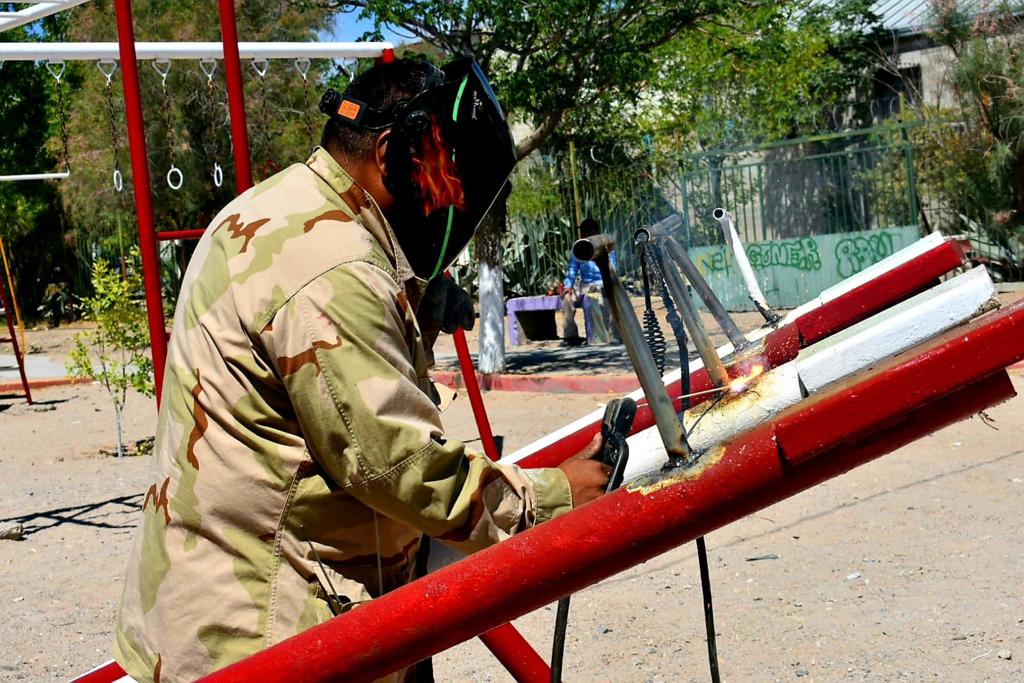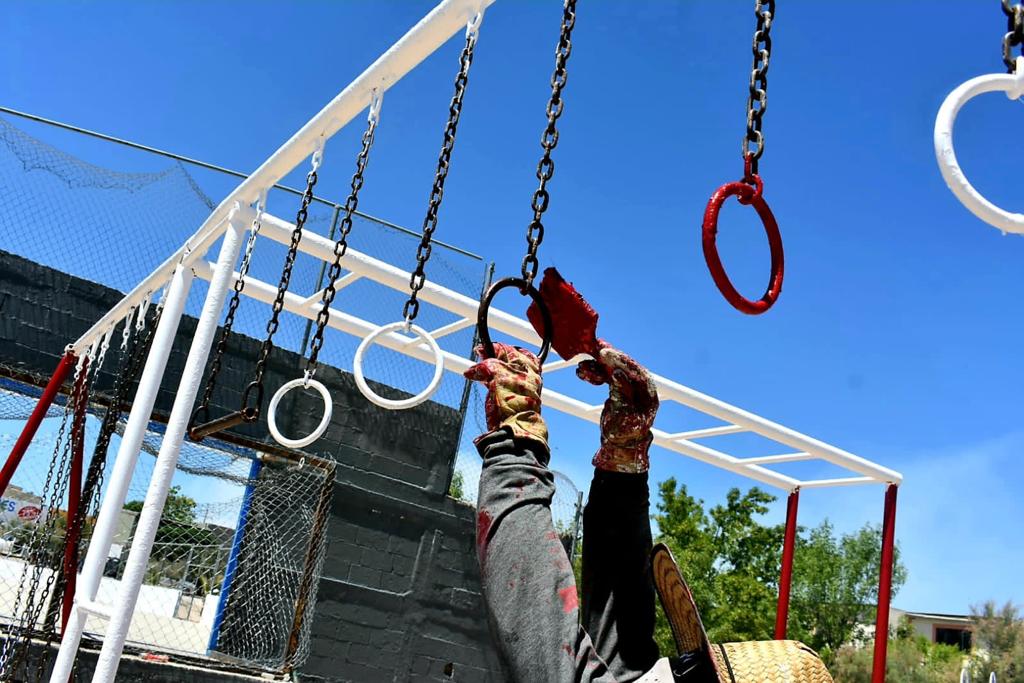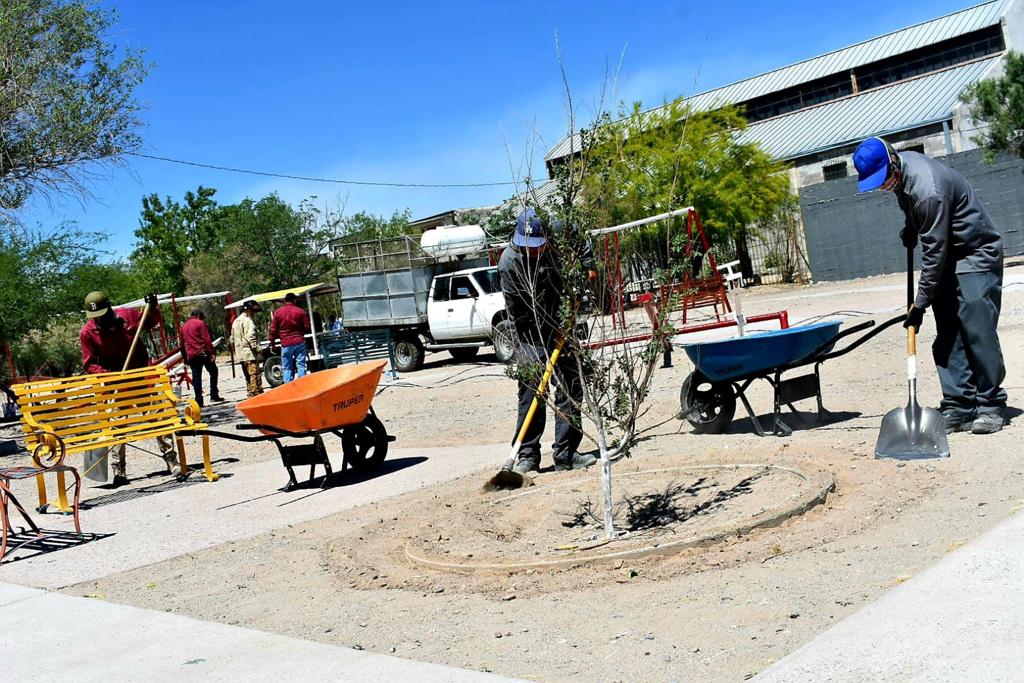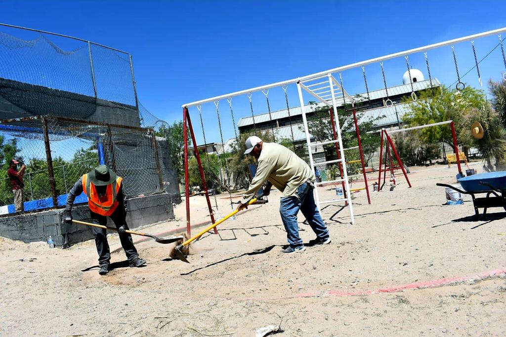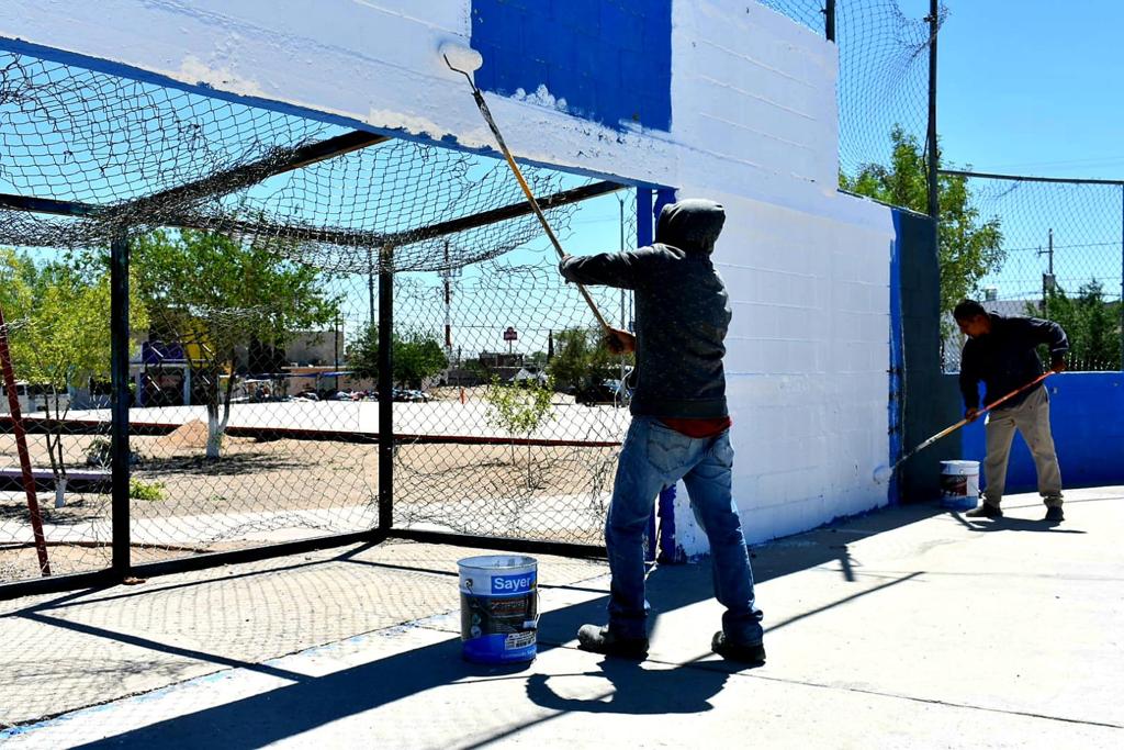 A fin de continuar mejorando los espacios públicos para que las familias juarenses puedan convivir y jugar sanamente, personal de la Dirección General de Servicios Públicos, trabaja en el mantenimiento general del parque Comex, ubicado en la colonia Tierra Nueva I.