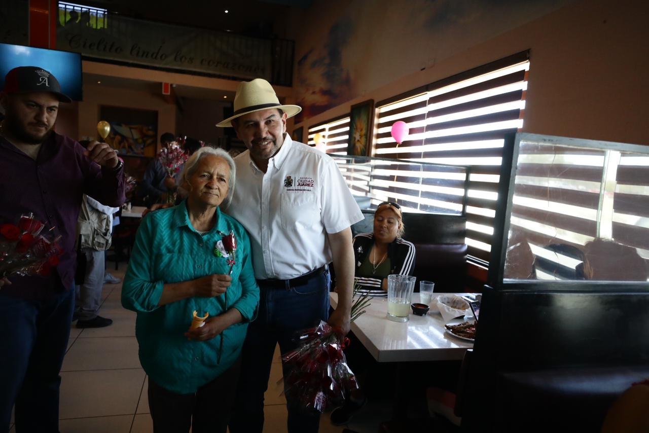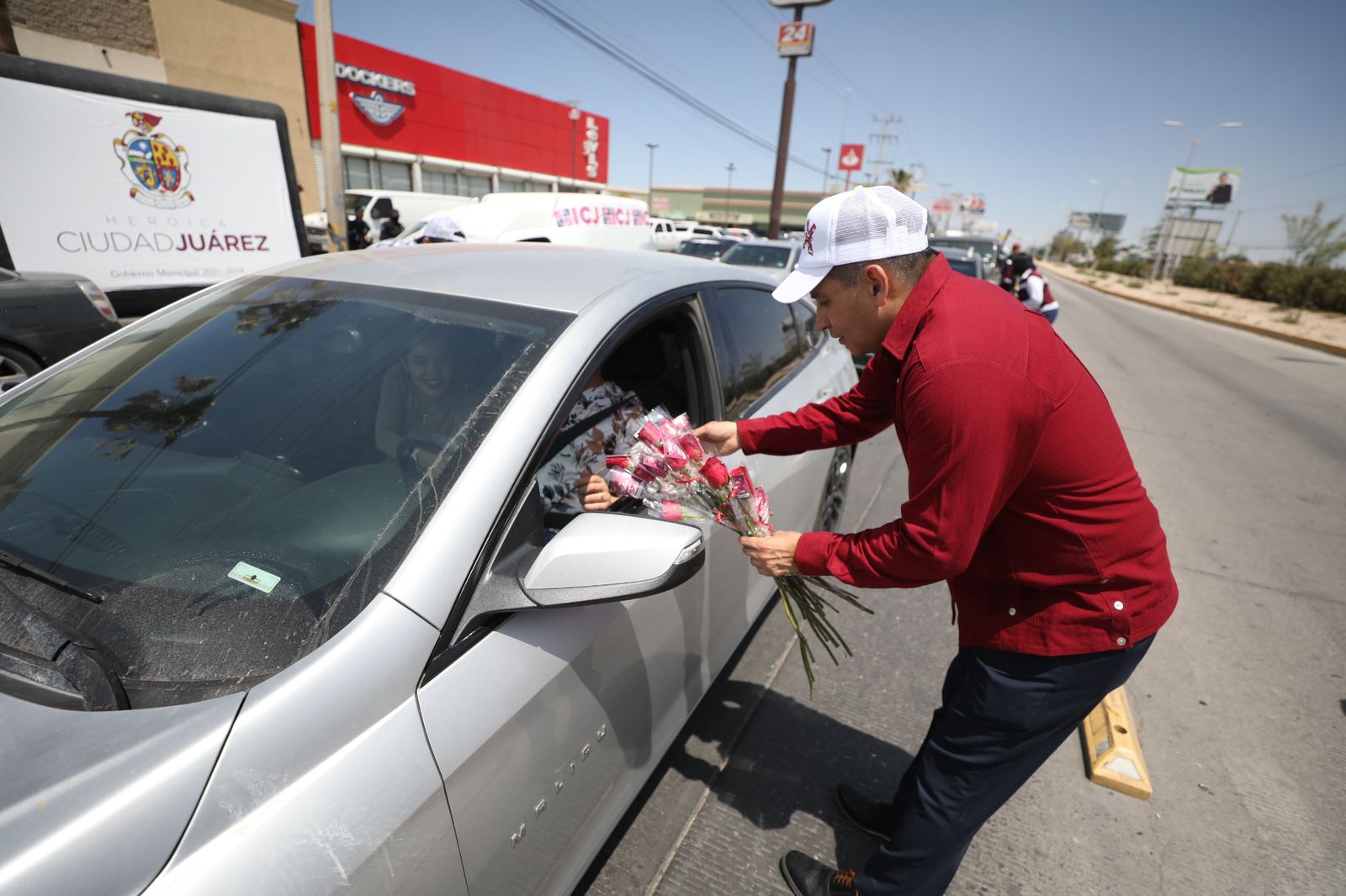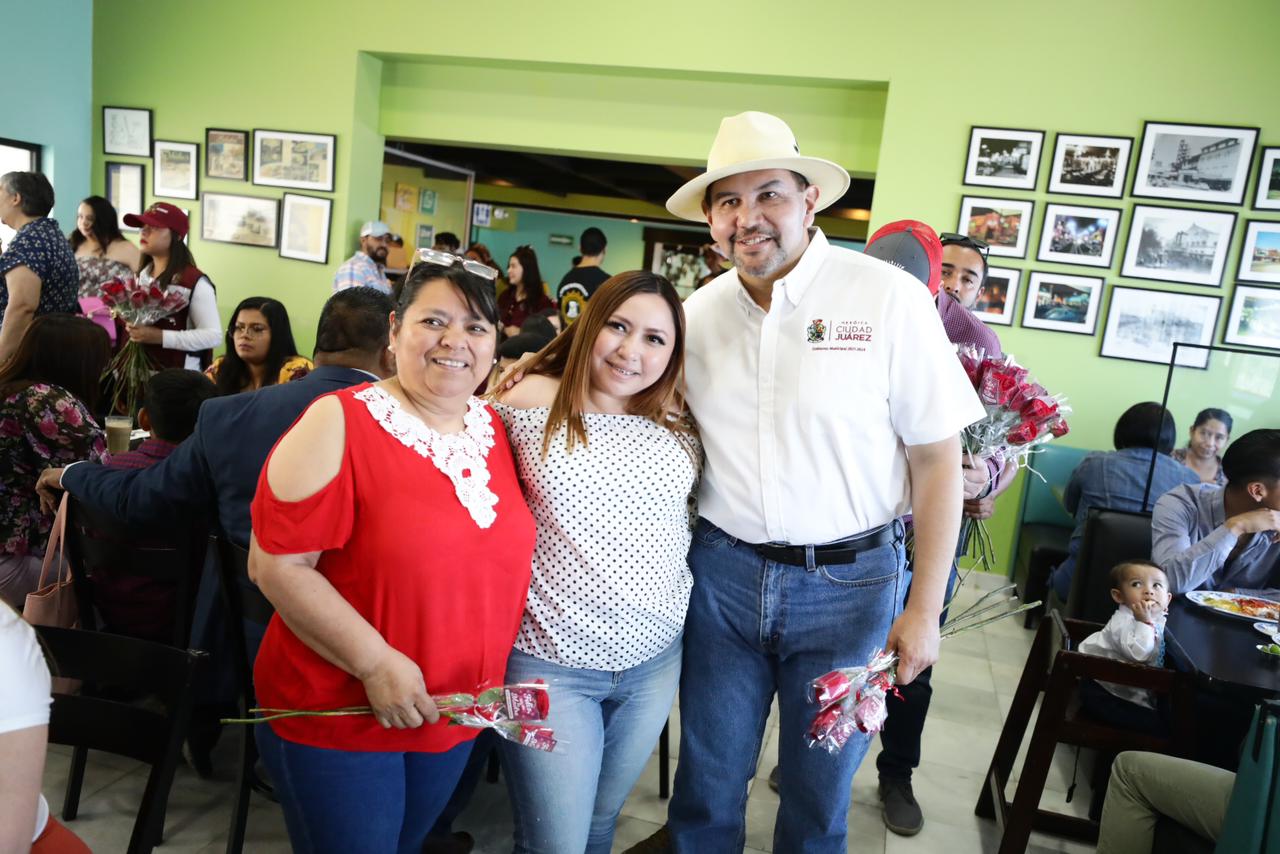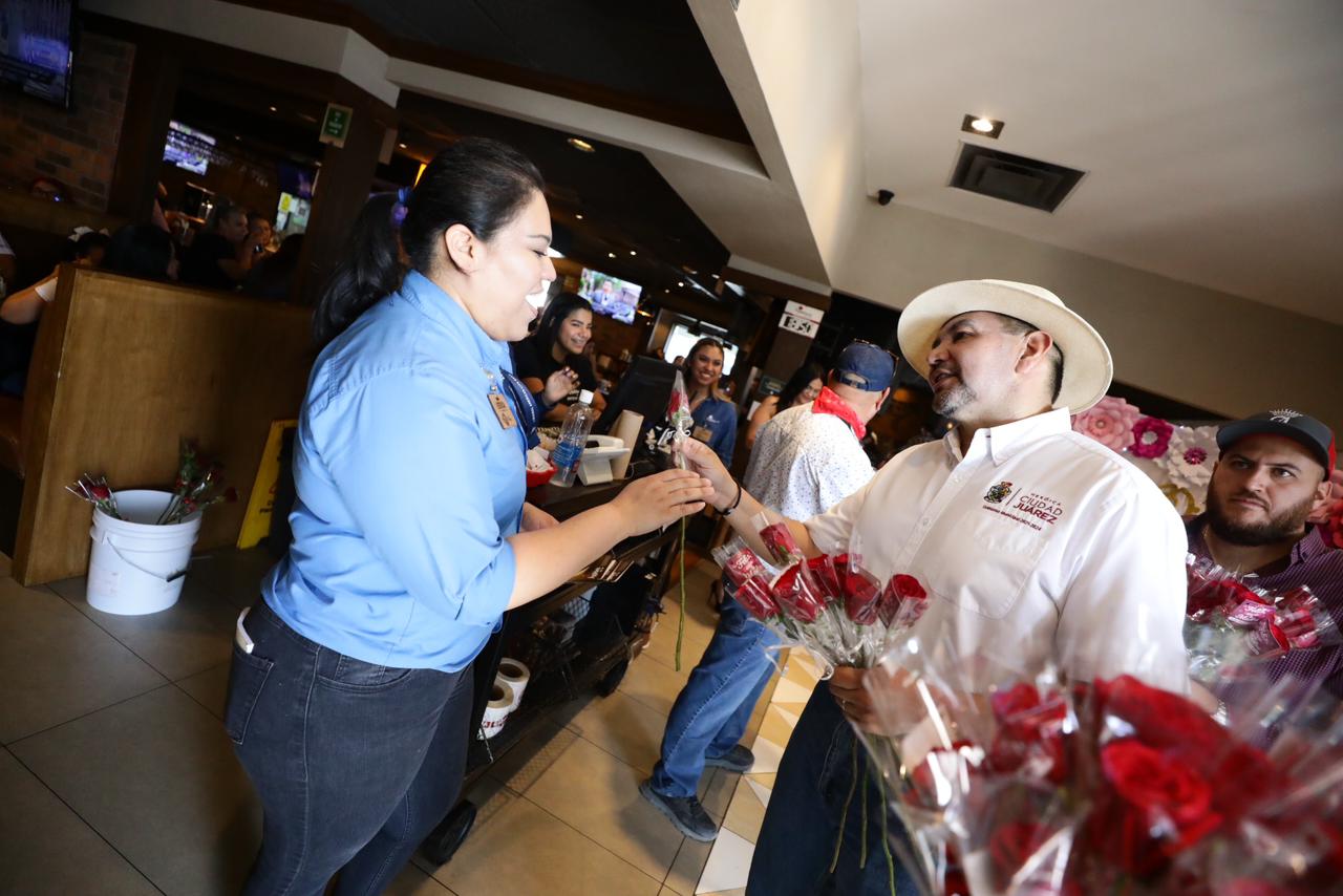 Con el fin de reconocer a las madres juarenses en este Día de las Madres, el Presidente Municipal, Cruz Pérez Cuéllar, hizo un recorrido por cuatro restaurantes para entregar cerca de mil 500 rosas.
