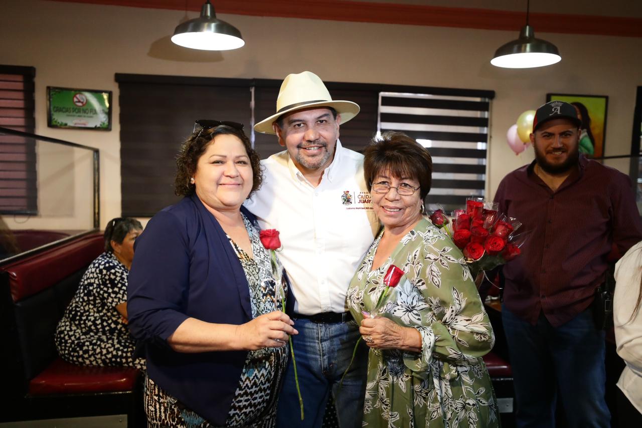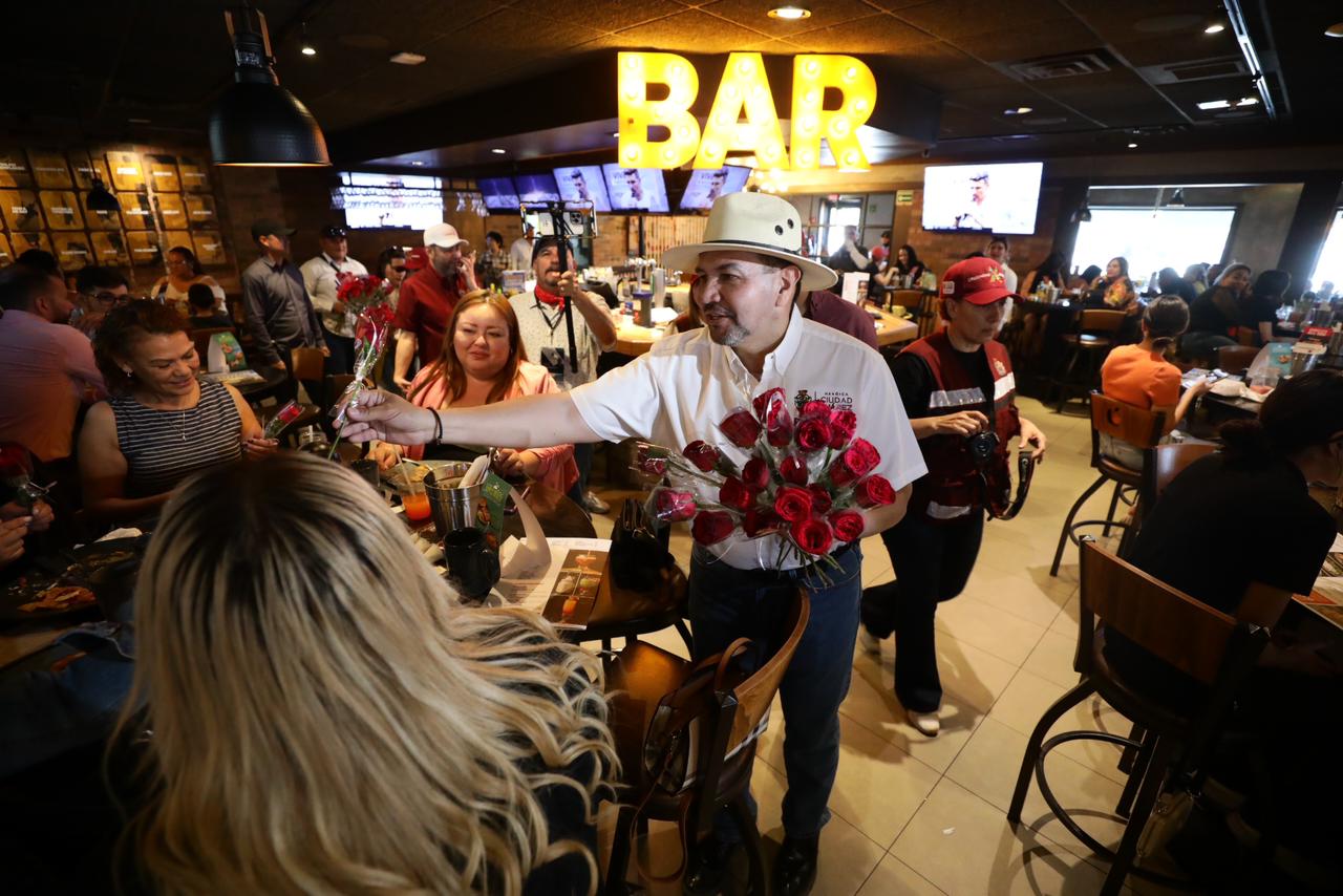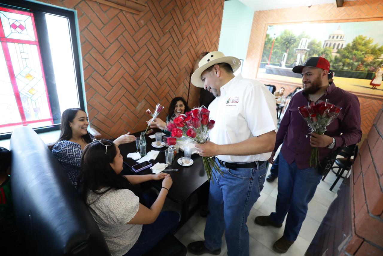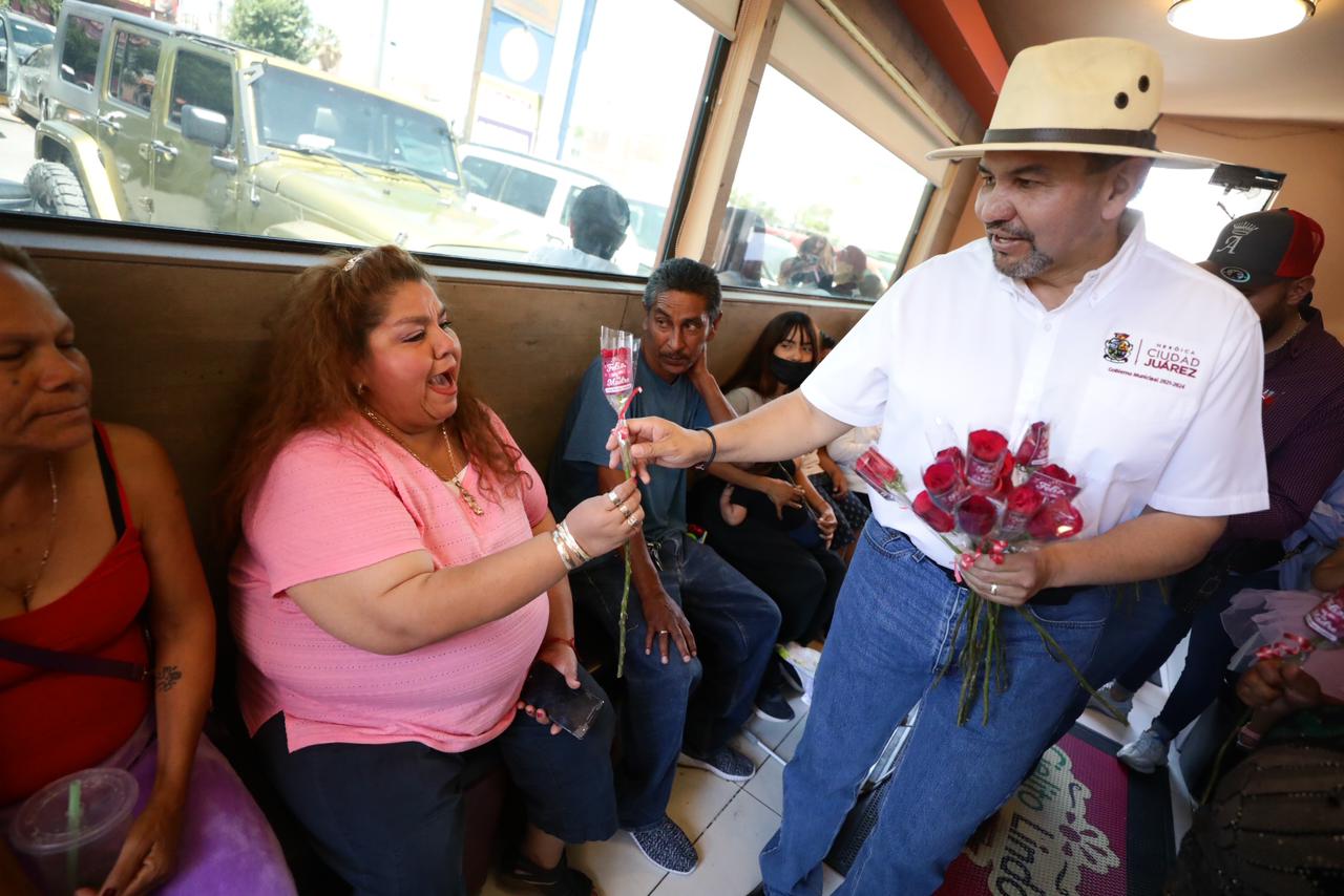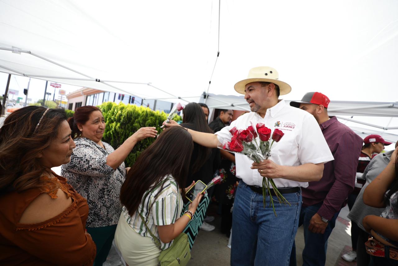 Con el fin de reconocer a las madres juarenses en este Día de las Madres, el Presidente Municipal, Cruz Pérez Cuéllar, hizo un recorrido por cuatro restaurantes para entregar cerca de mil 500 rosas.