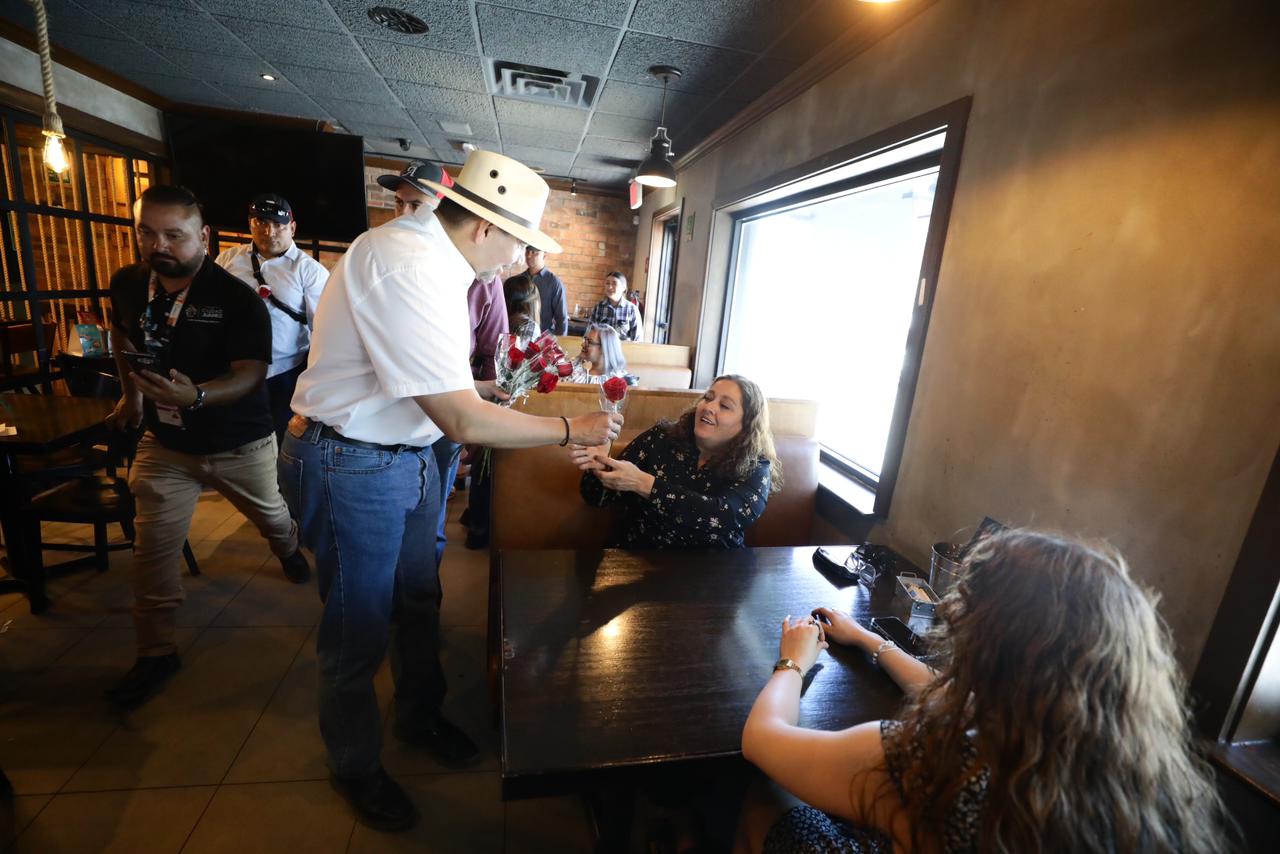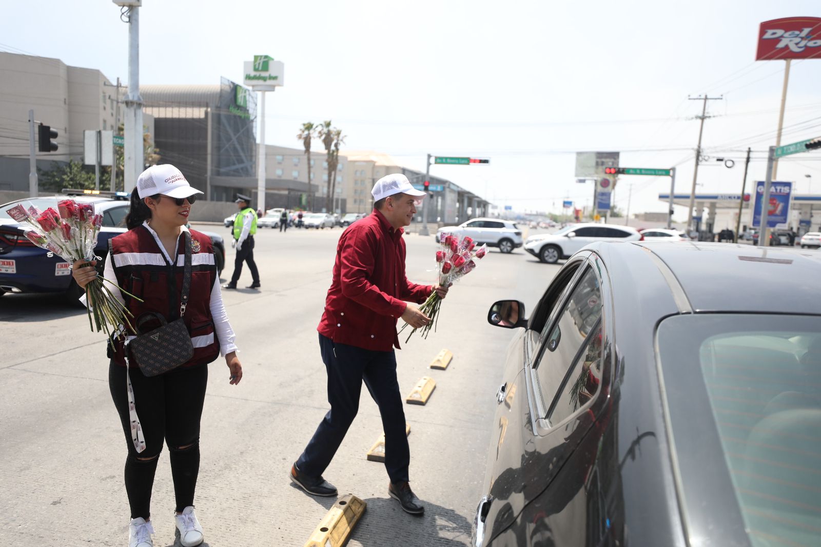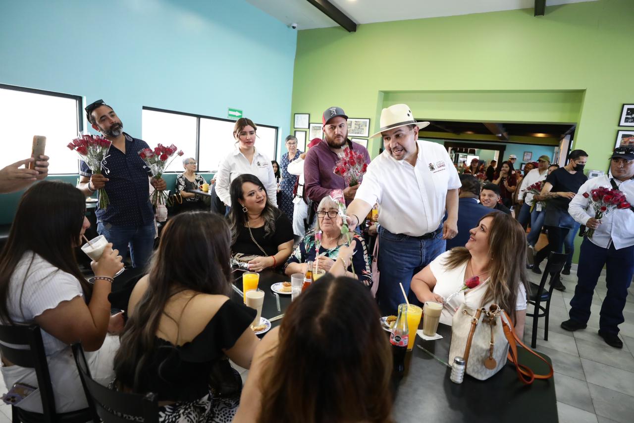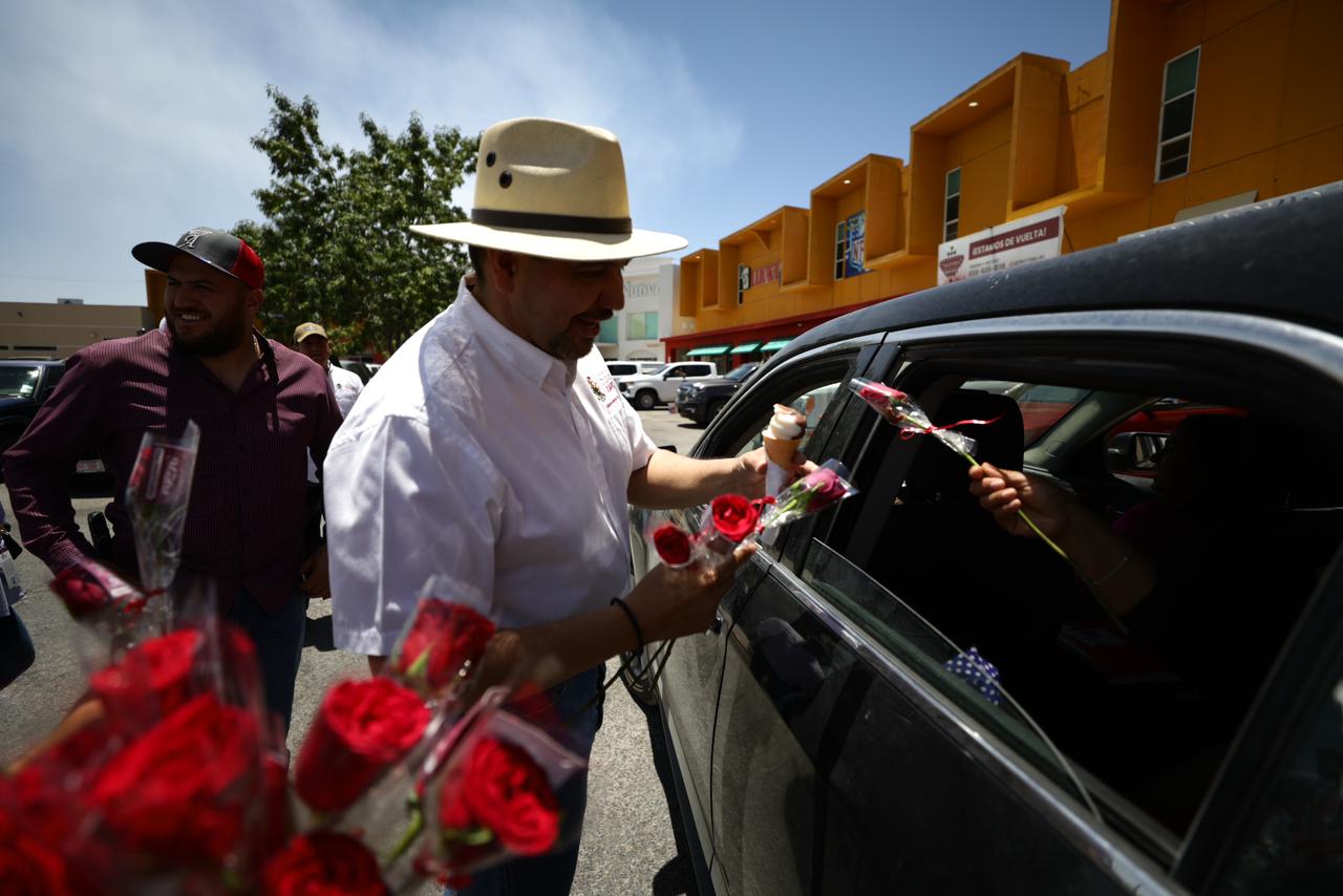 Con el fin de reconocer a las madres juarenses en este Día de las Madres, el Presidente Municipal, Cruz Pérez Cuéllar, hizo un recorrido por cuatro restaurantes para entregar cerca de mil 500 rosas.