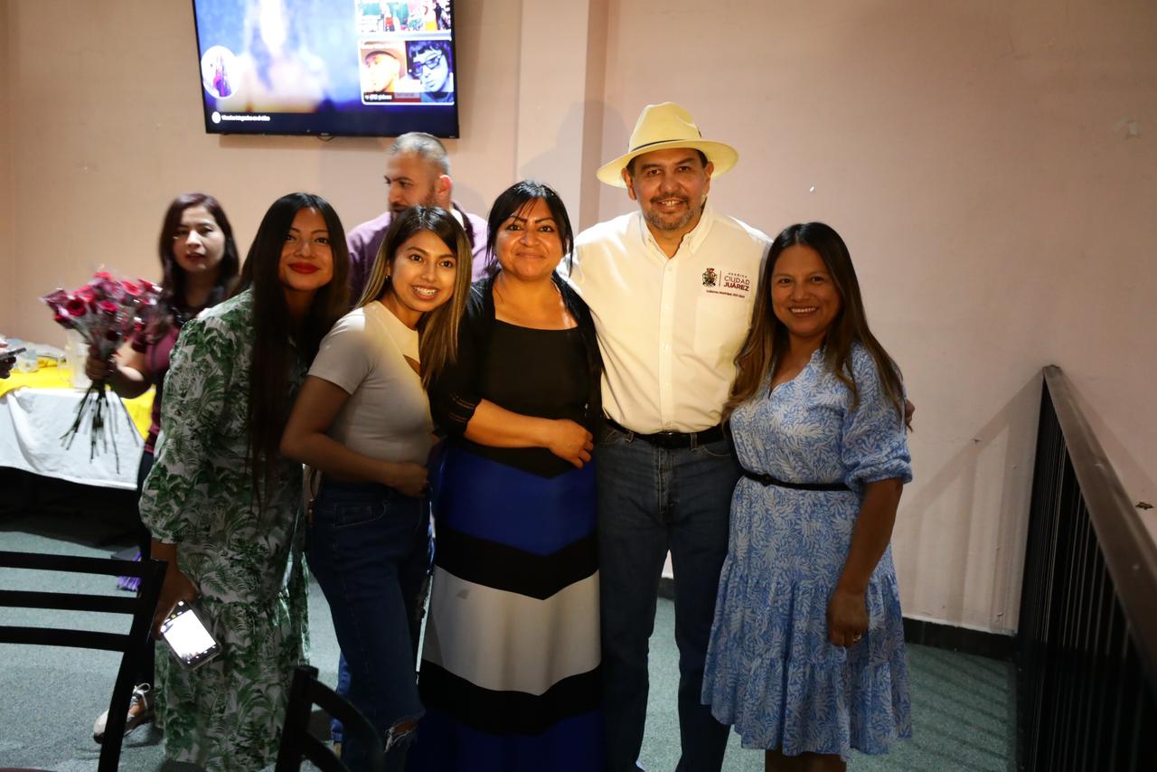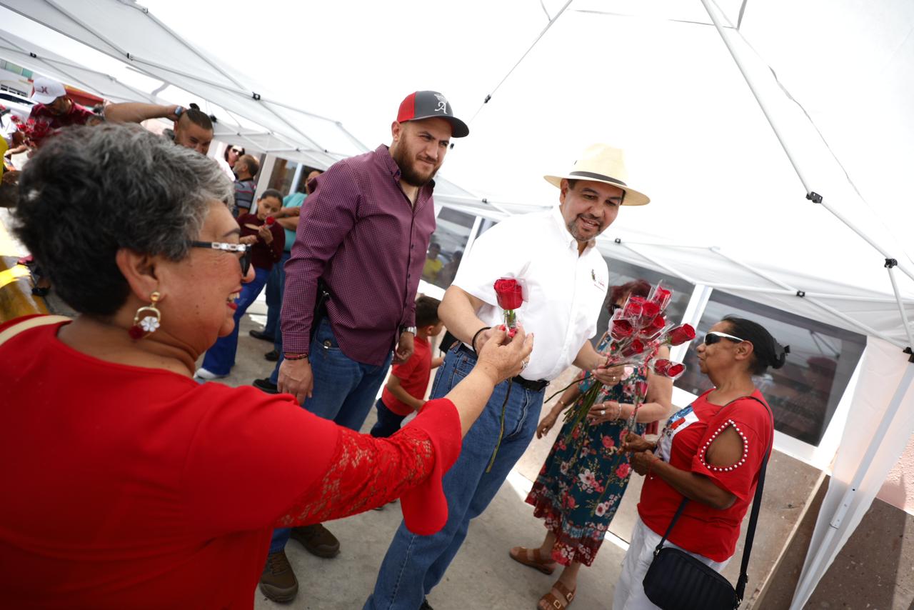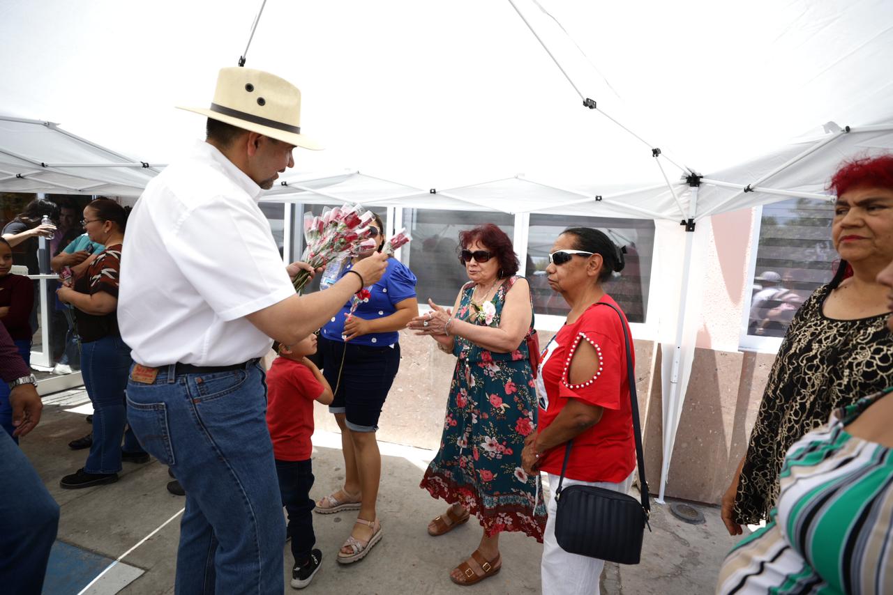 El edil agradeció a las madres de familia por su trabajo diario, se tomó fotografías y les entregó una rosa en reconocimiento a su labor.