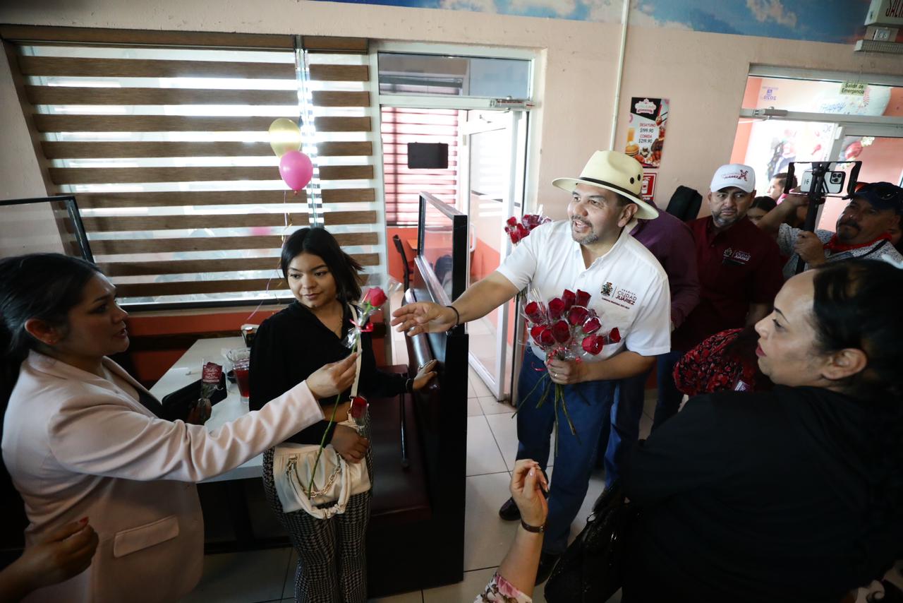 Recorre alcalde restaurantes de la ciudad con entrega de rosas