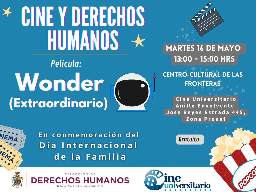 En el marco del día Internacional de la Familia, la Dirección de Derechos Humanos del municipio proyectará la película ??Wonder? (Extraordinario), con el objetivo de reflexionar sobre la capacidad que tiene el ser humano para sobreponerse a la adversidad y la importancia de la familia en la sociedad.