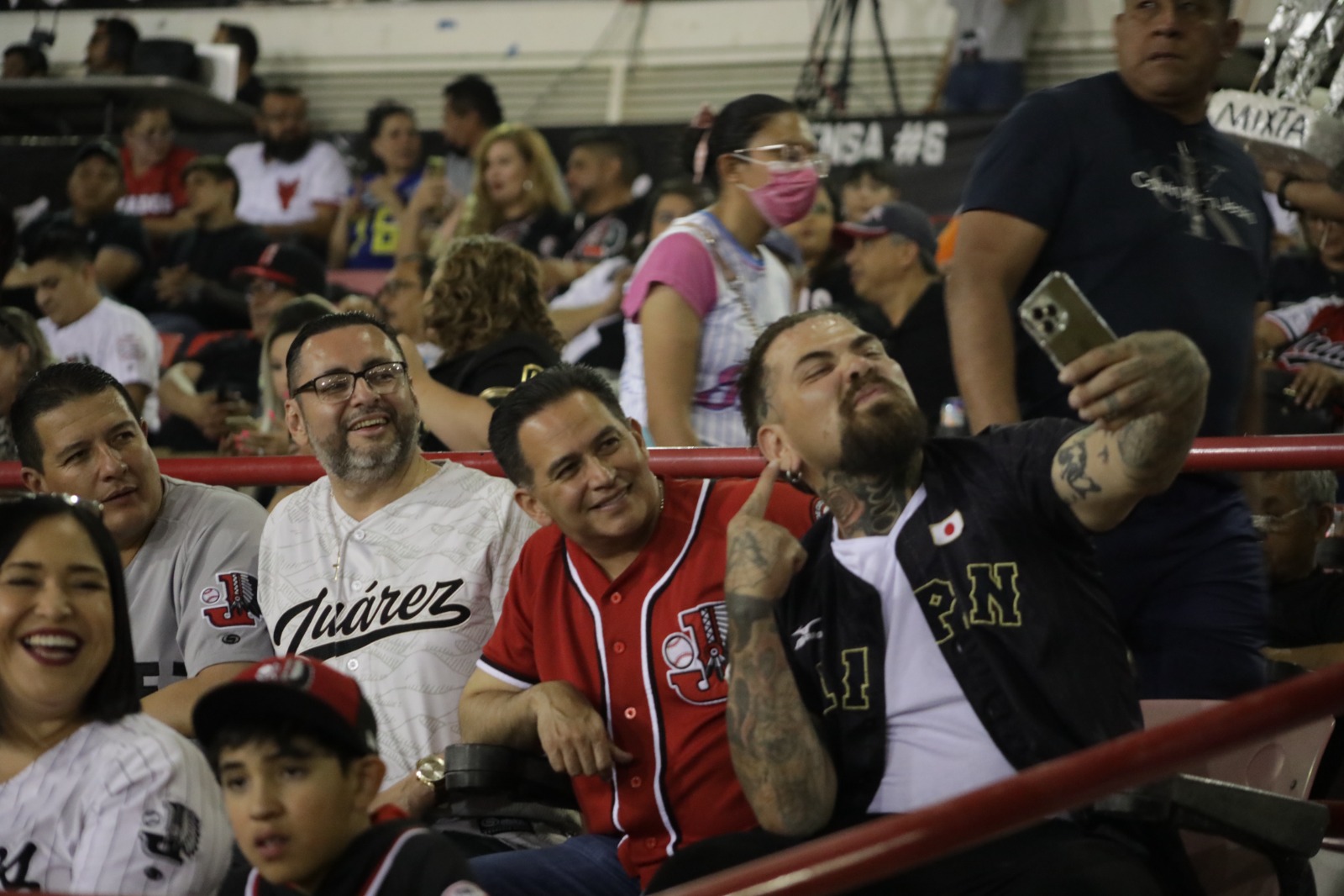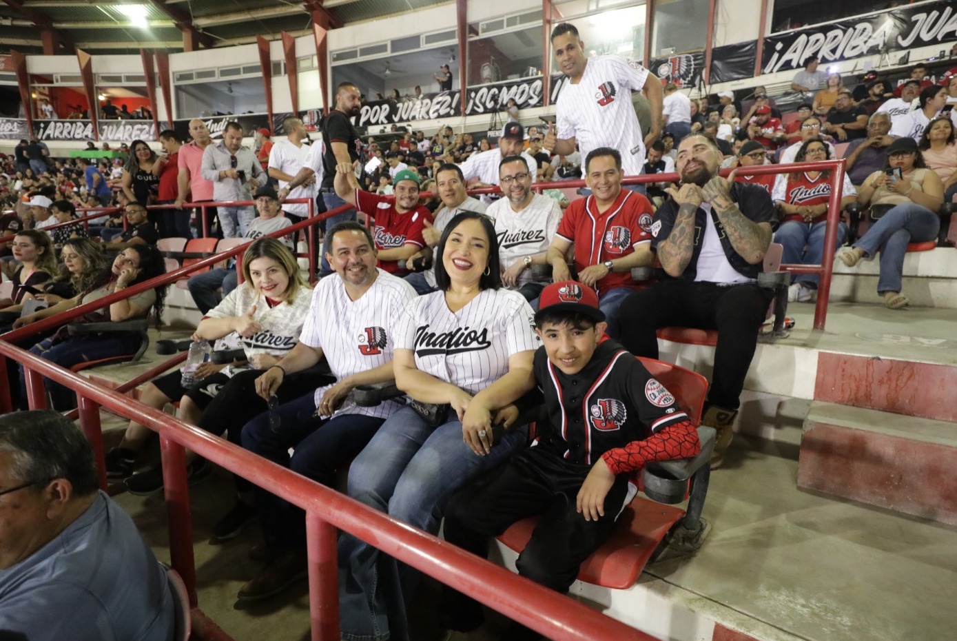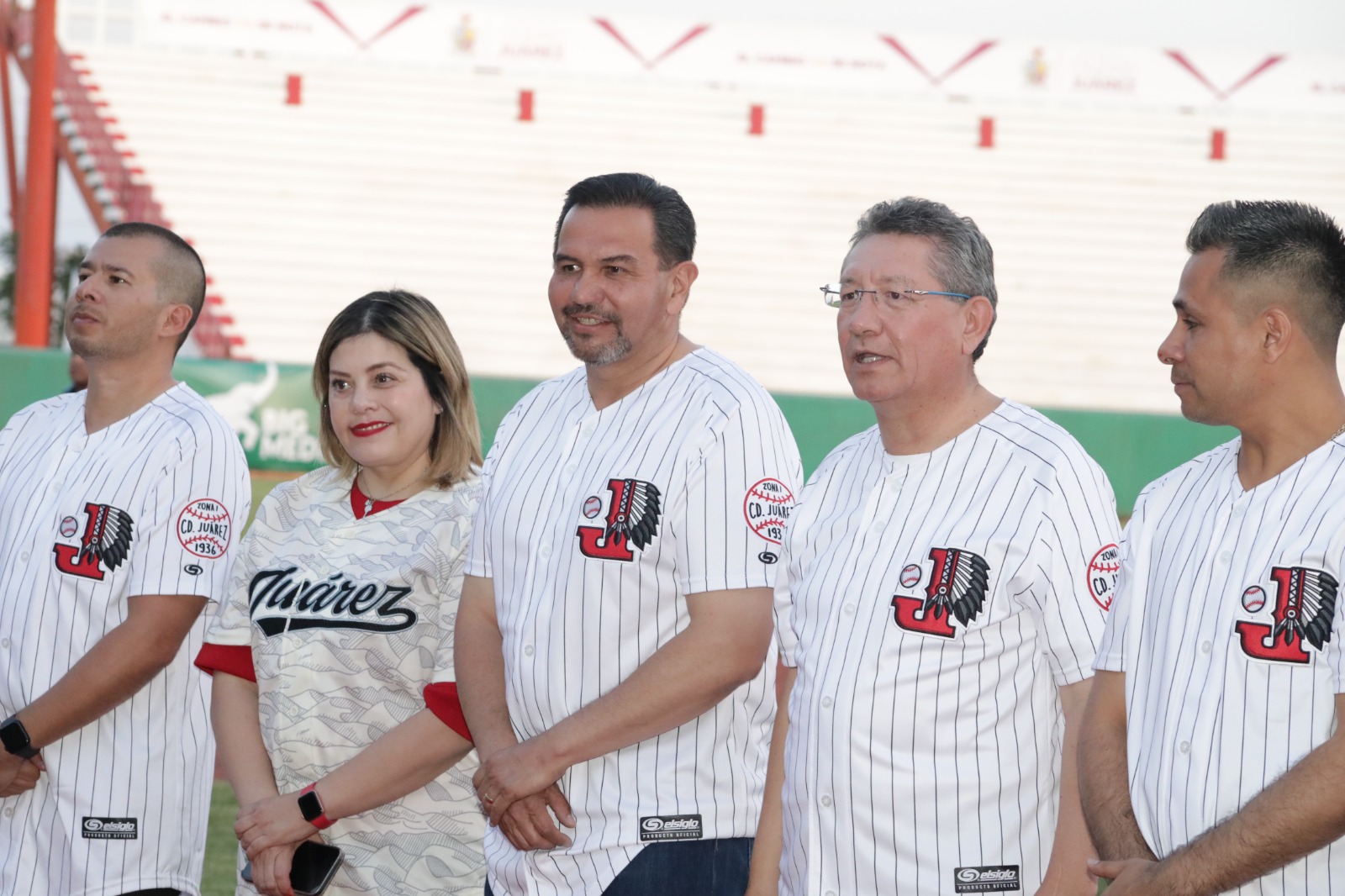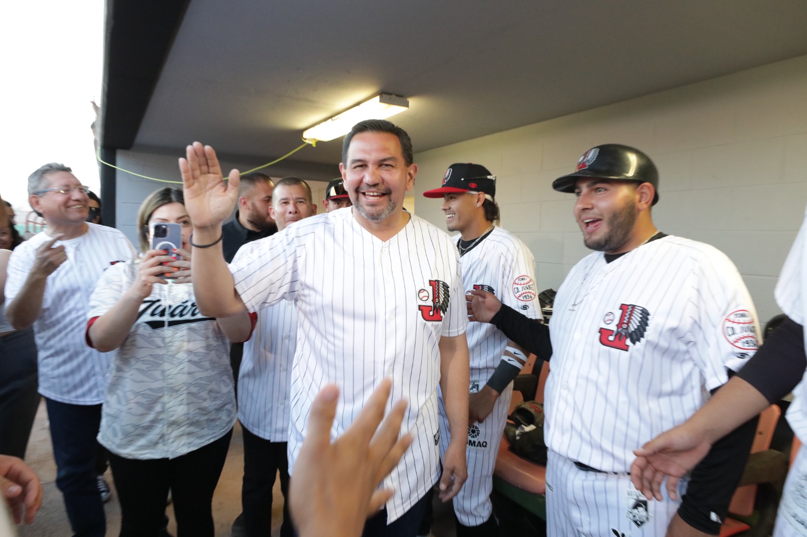 El Presidente Municipal, Cruz Pérez Cuéllar, lanzó la primera pelota en el juego en el que los Indios de Juárez recibieron a los Mineros de Parral en el arranque de la Temporada 2023 de la Liga Estatal de Béisbol (LBE).