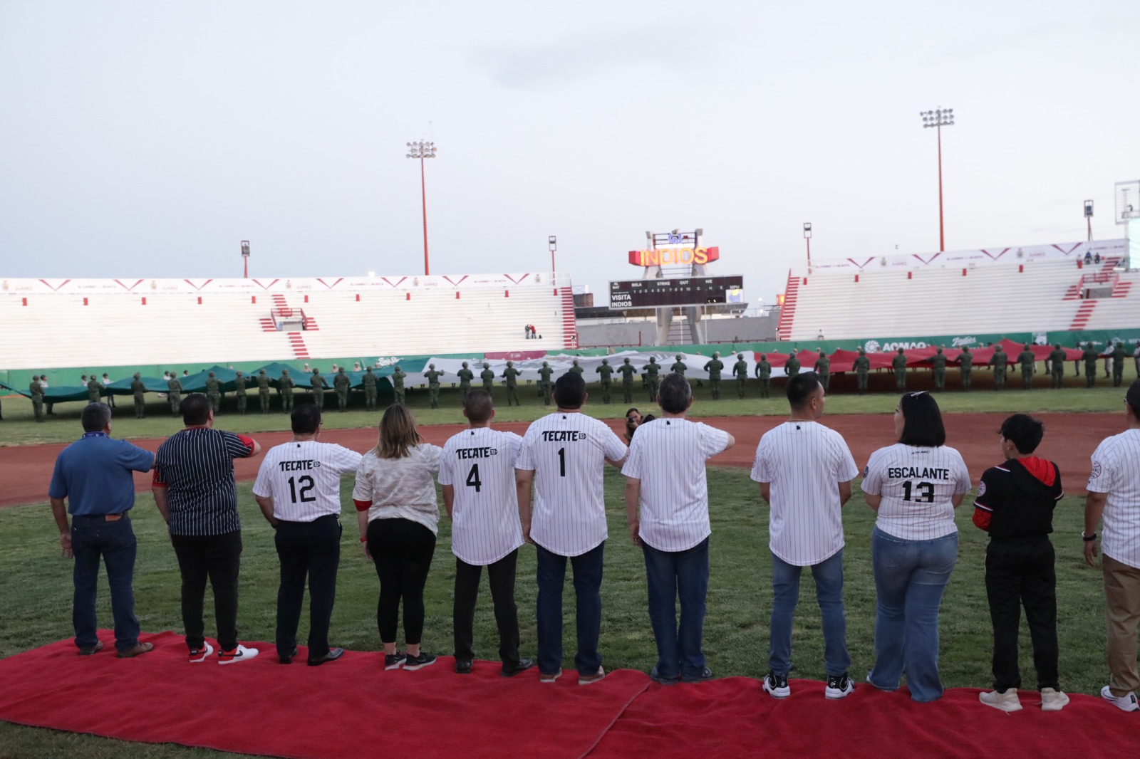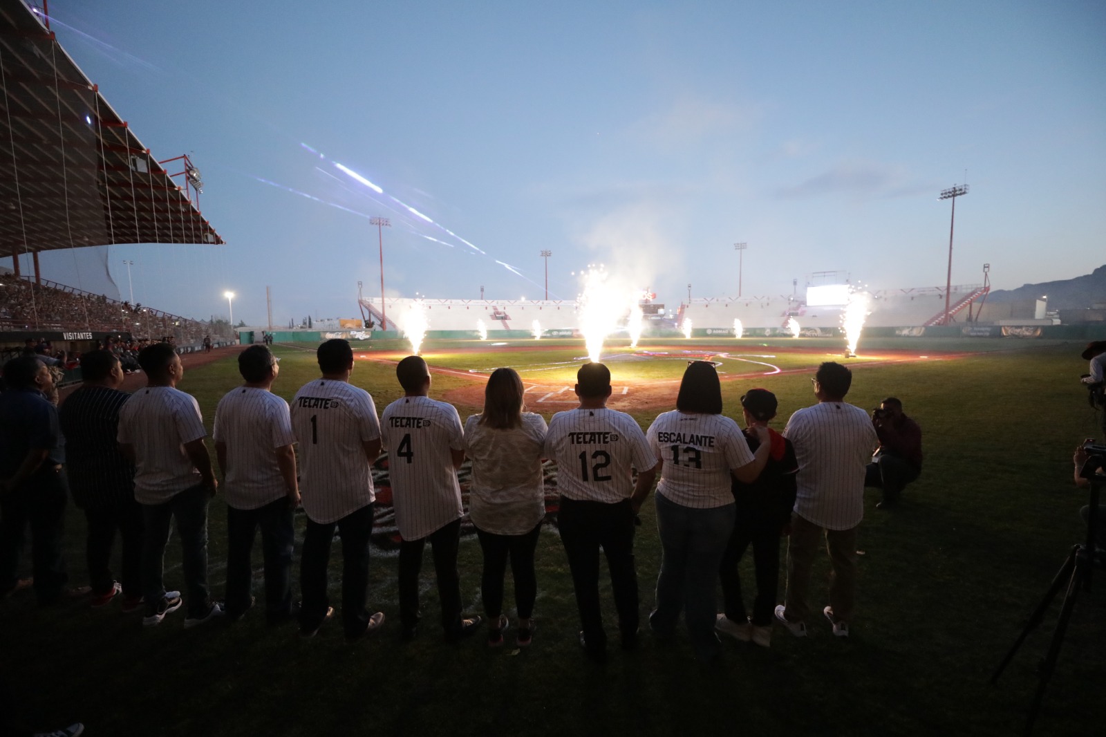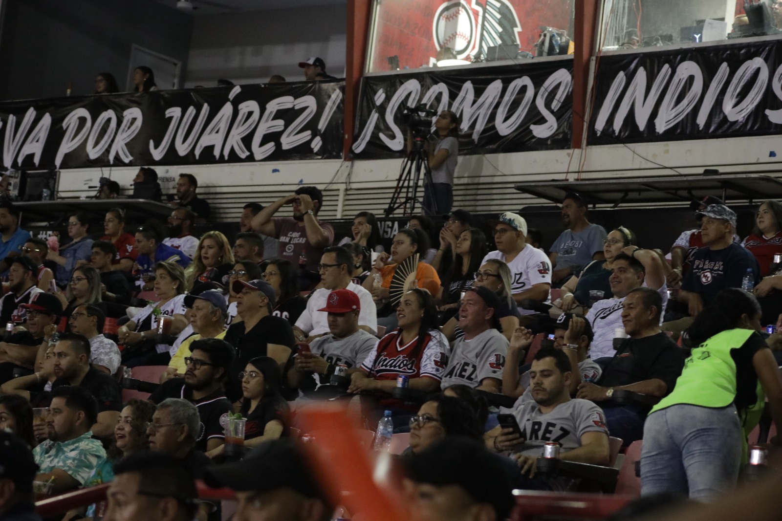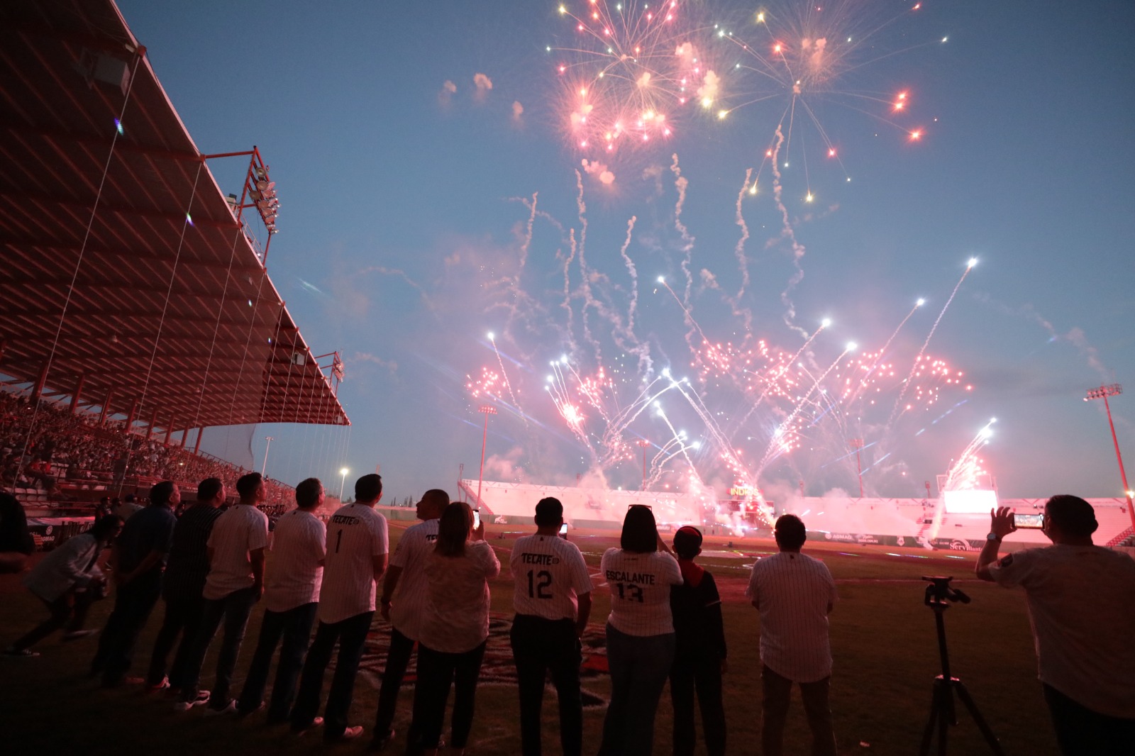 La directiva del Club Indios de Béisbol preparó un espectáculo de luces, sonido y fuegos artificiales, y se escucharon canciones de Juan Gabriel y otros artistas.
