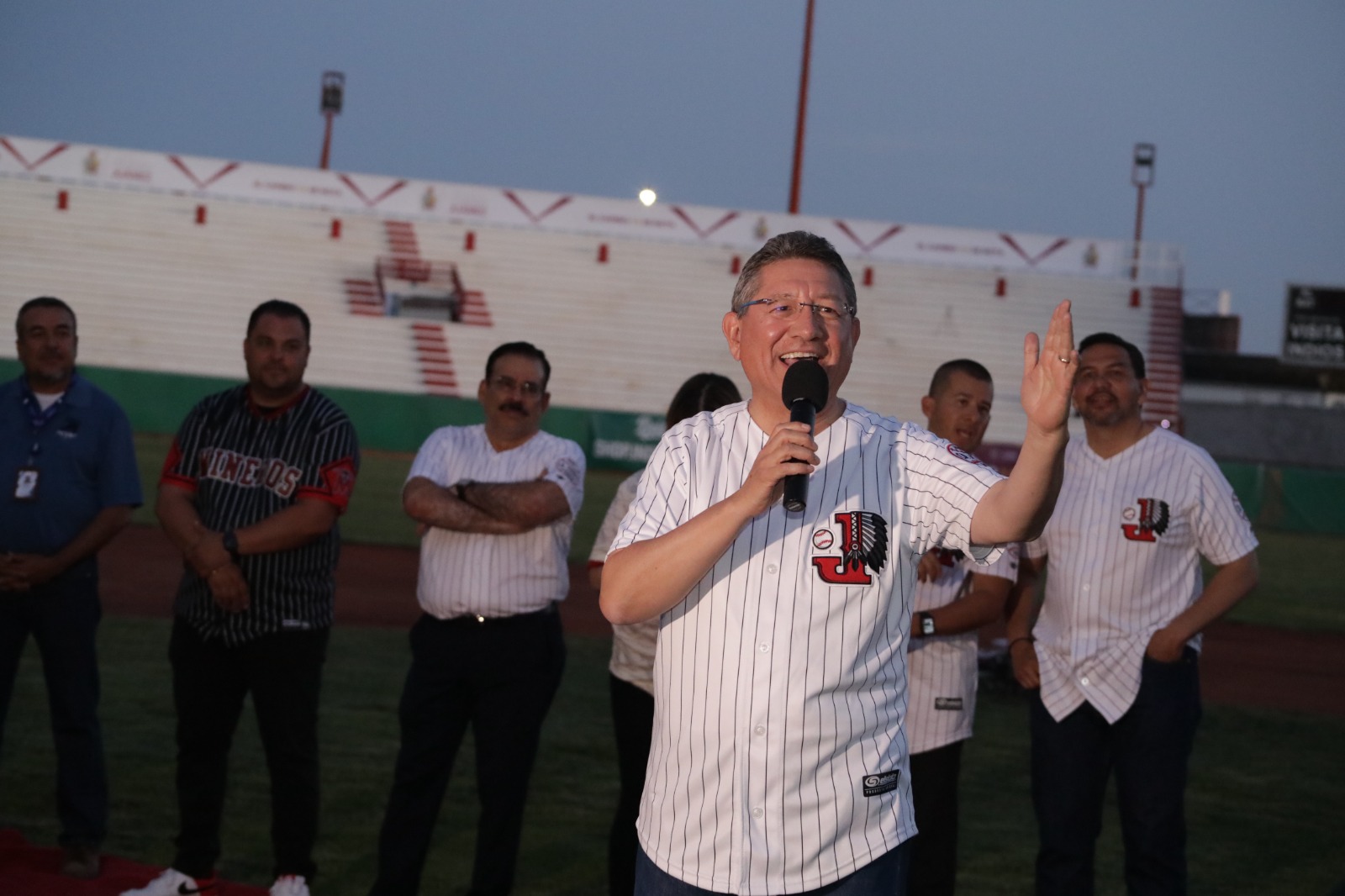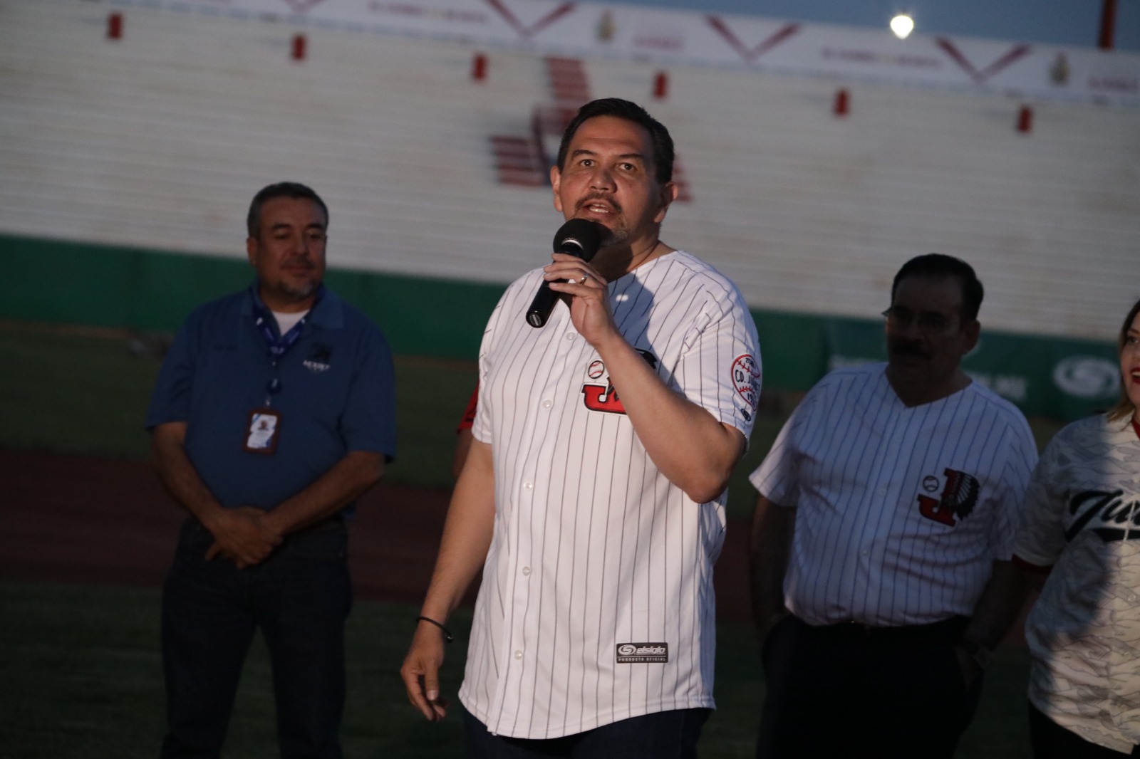 ??Estamos muy contentos por el arranque de esta nueva temporada de béisbol y les deseamos todo el éxito a los participantes?, dijo el edil, para luego exclamar "¡Vamos Indios!"