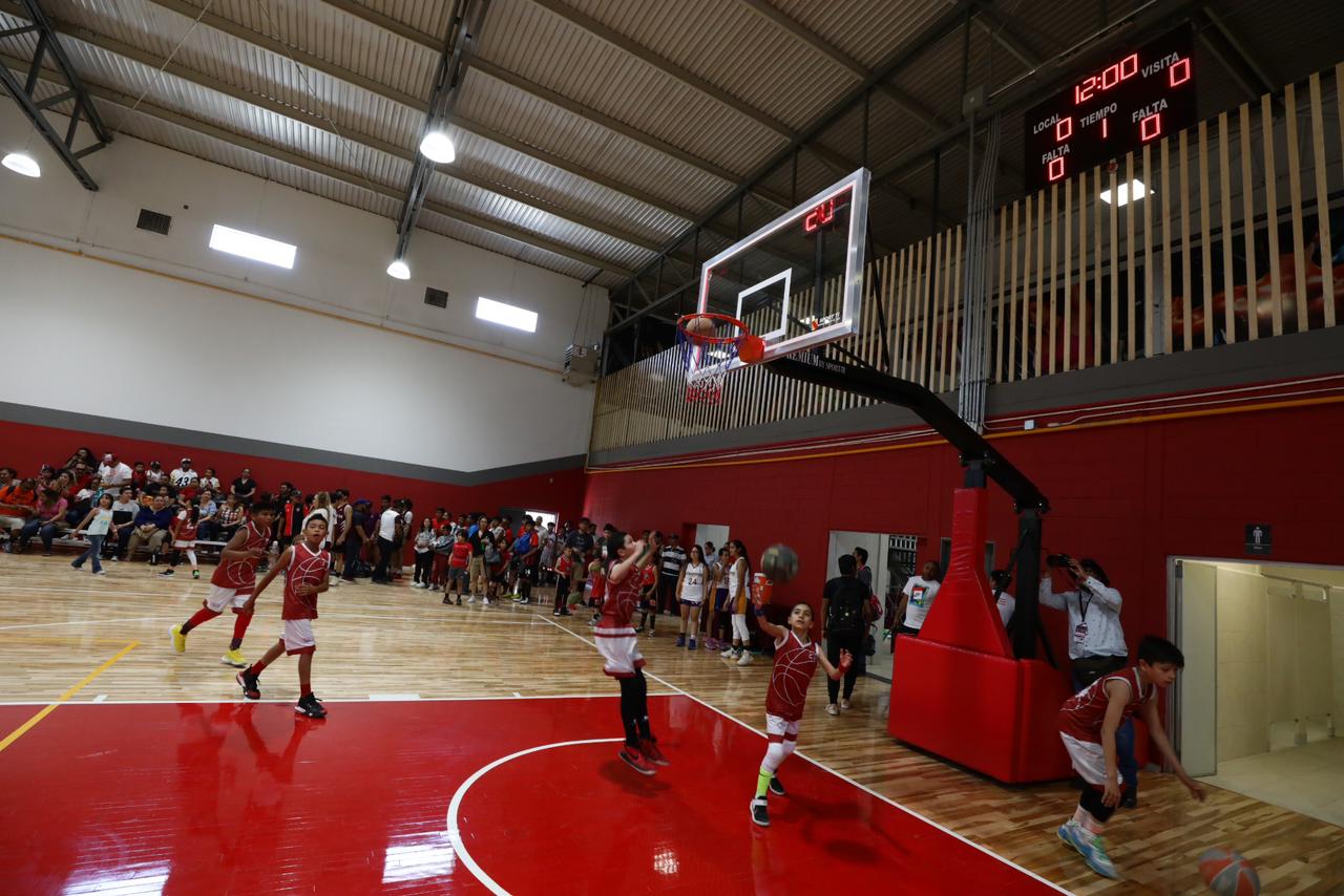 Durante la ceremonia de reinauguración, la cancha de basquetbol quedó abierta cuando la niña Alejandra Gutiérrez, de 8 años, integrante del equipo Troyanos, logró encestar y dar arranque a las actividades.