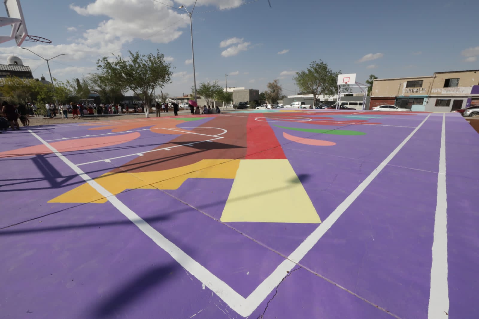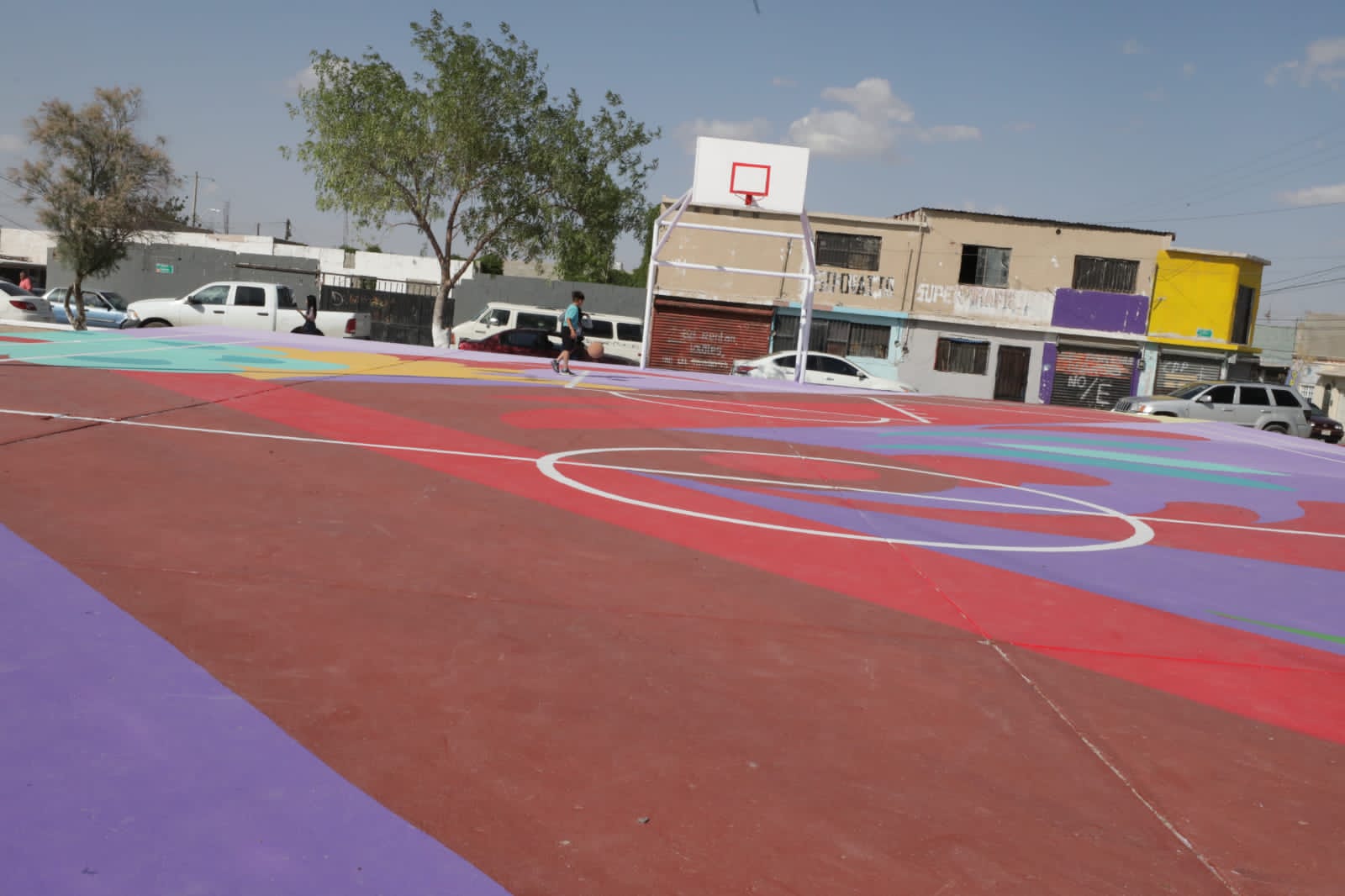 En este lugar se pintó la cancha de futbol rápido, además de que se instaló un mural en la de basquetbol, se instaló alumbrado público, se puso cascara de nuez y se rehabilitó el área de juegos infantiles.
