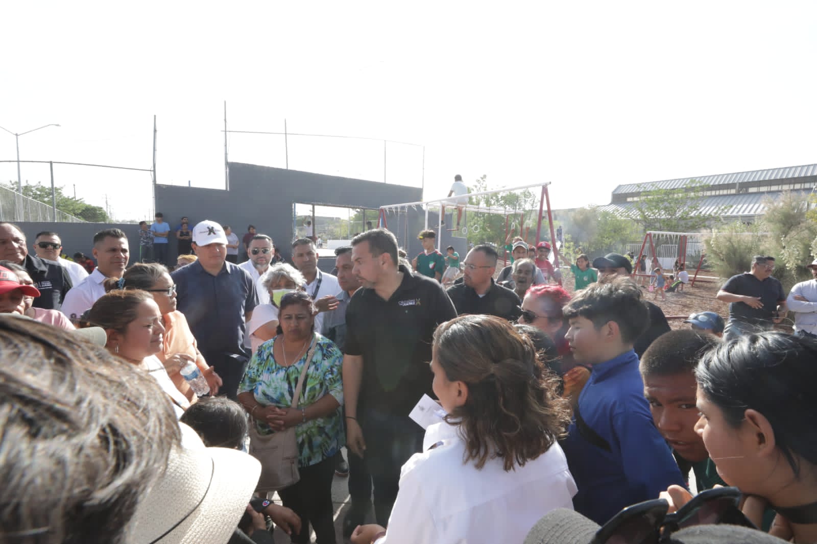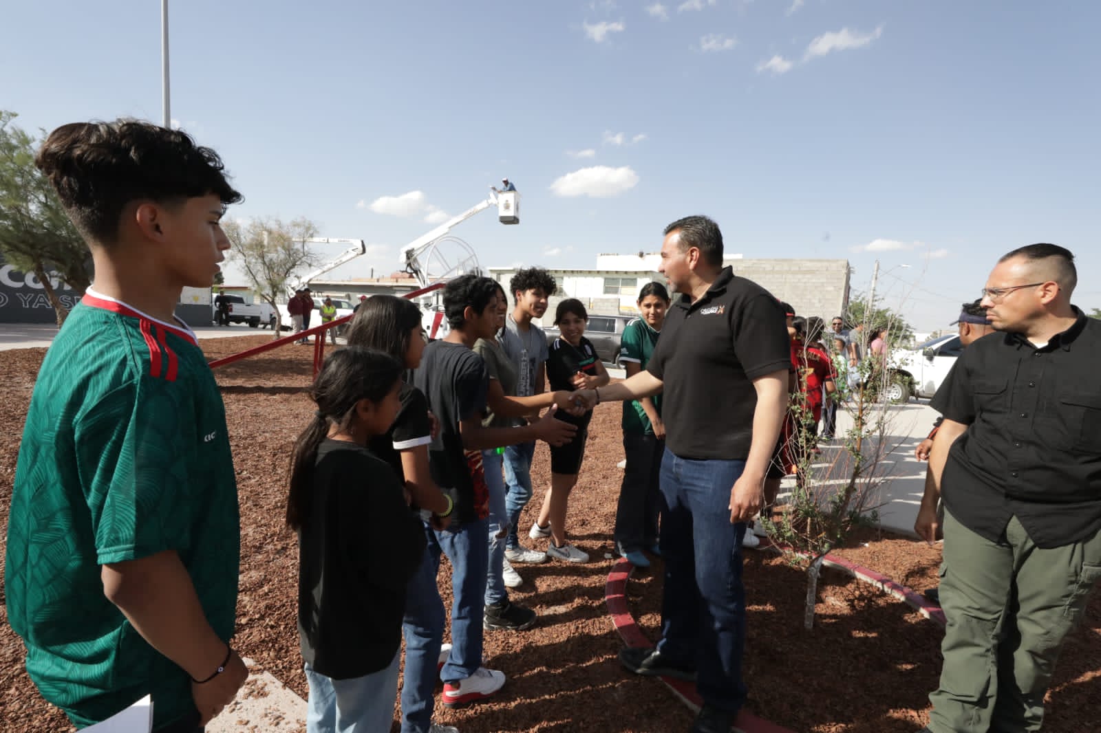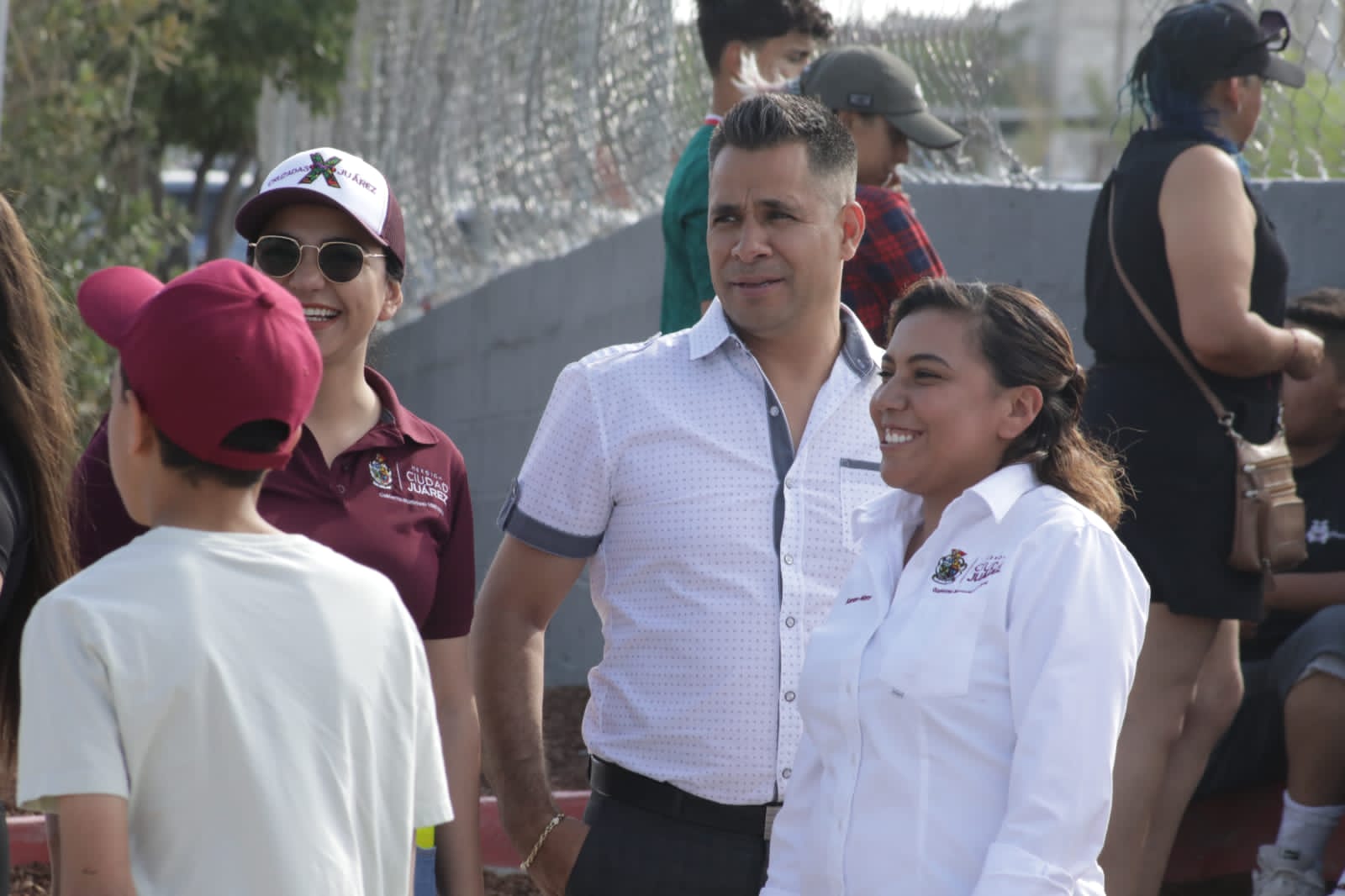 Durante la entrega de este espacio a los vecinos, el alcalde fue abordado por los niños de la Liga de Futbol Juárez-Tierra Nueva, quienes le solicitaron que la cancha de futbol rápido se instalara pasto sintético.