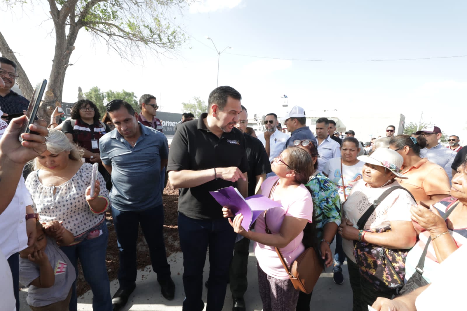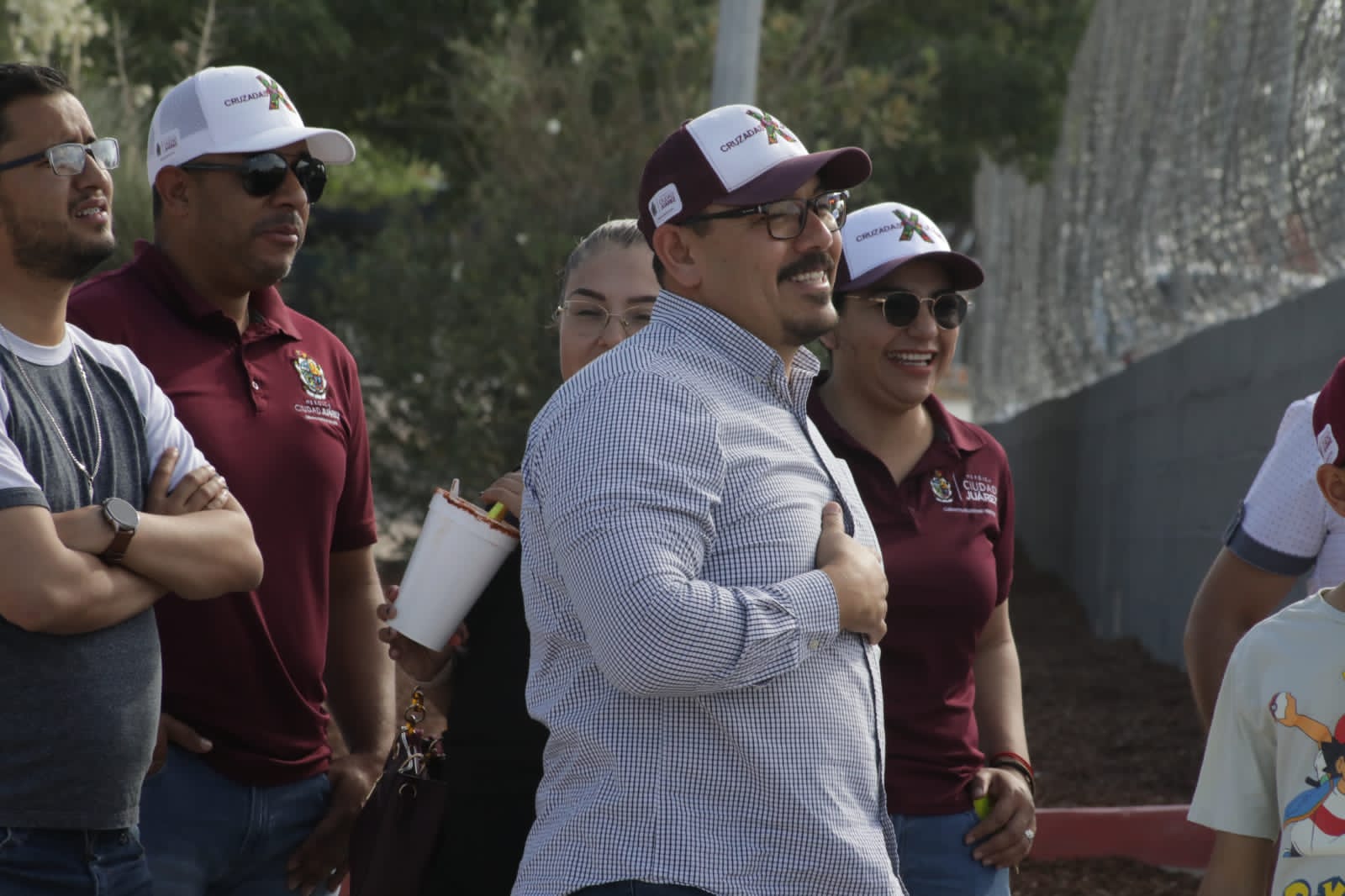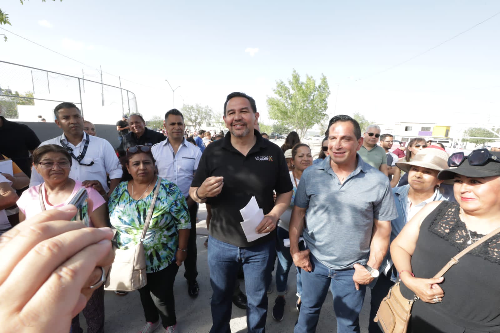 Durante la entrega de este espacio a los vecinos, el alcalde fue abordado por los niños de la Liga de Futbol Juárez-Tierra Nueva, quienes le solicitaron que la cancha de futbol rápido se instalara pasto sintético.