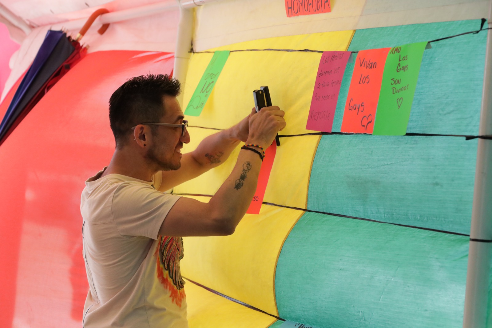 En la explanada de la Presidencia Municipal se colocó un mural para que la ciudadanía denuncie los actos homofóbicos que ha recibido, así como su apoyo a la lucha contra la homofobia.