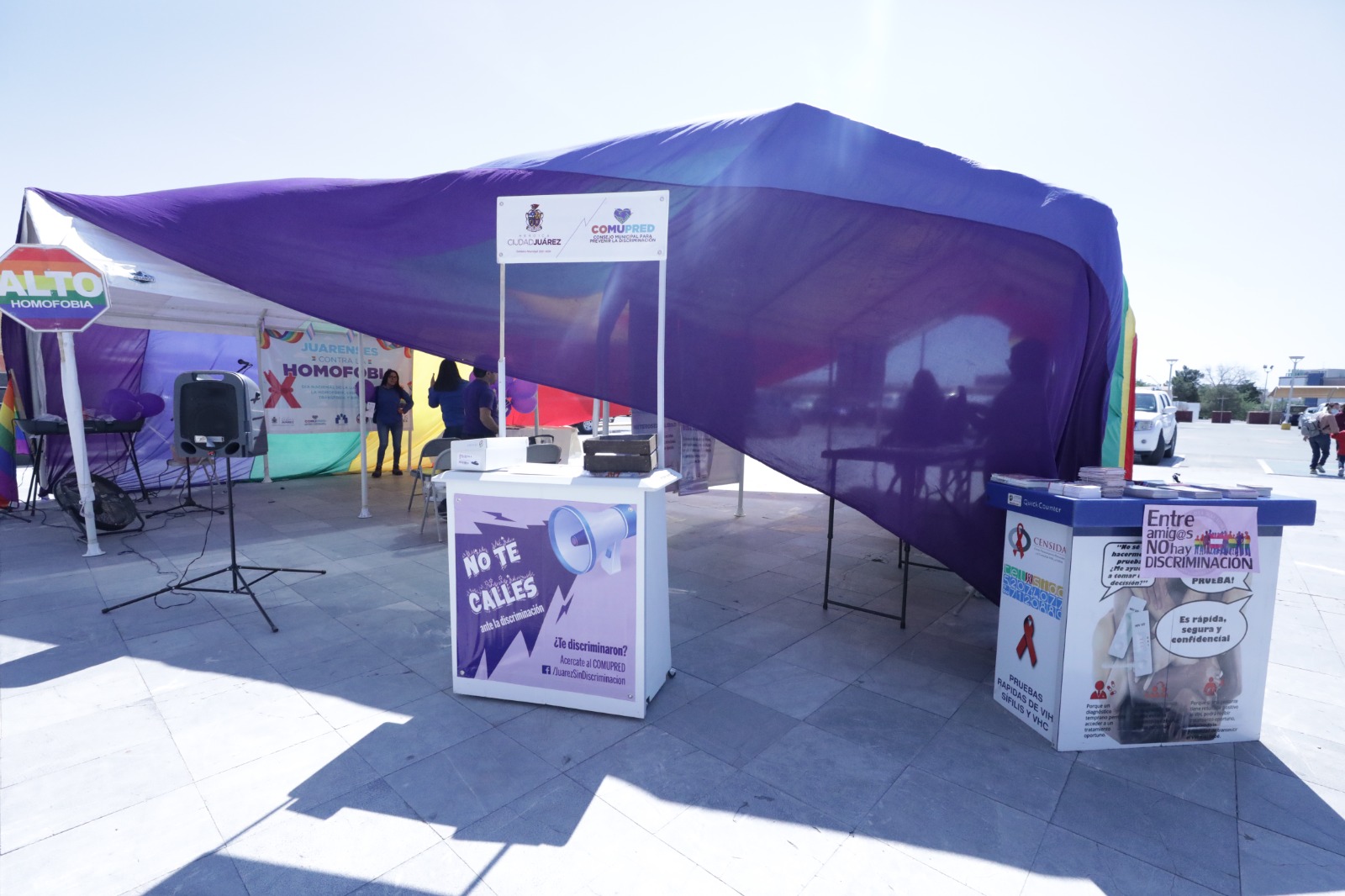 En el marco del Día Nacional de la Lucha contra la Homofobia, Lesbofobia, Transfobia y Bifobia, el Consejo Municipal para Prevenir la Discriminación (COMUPRED) realizó una actividad en la explanada de la Unidad Administrativa Benito Juárez, con la intención de generar conciencia sobre la discriminación y violencia que sufre la población LGBT+.