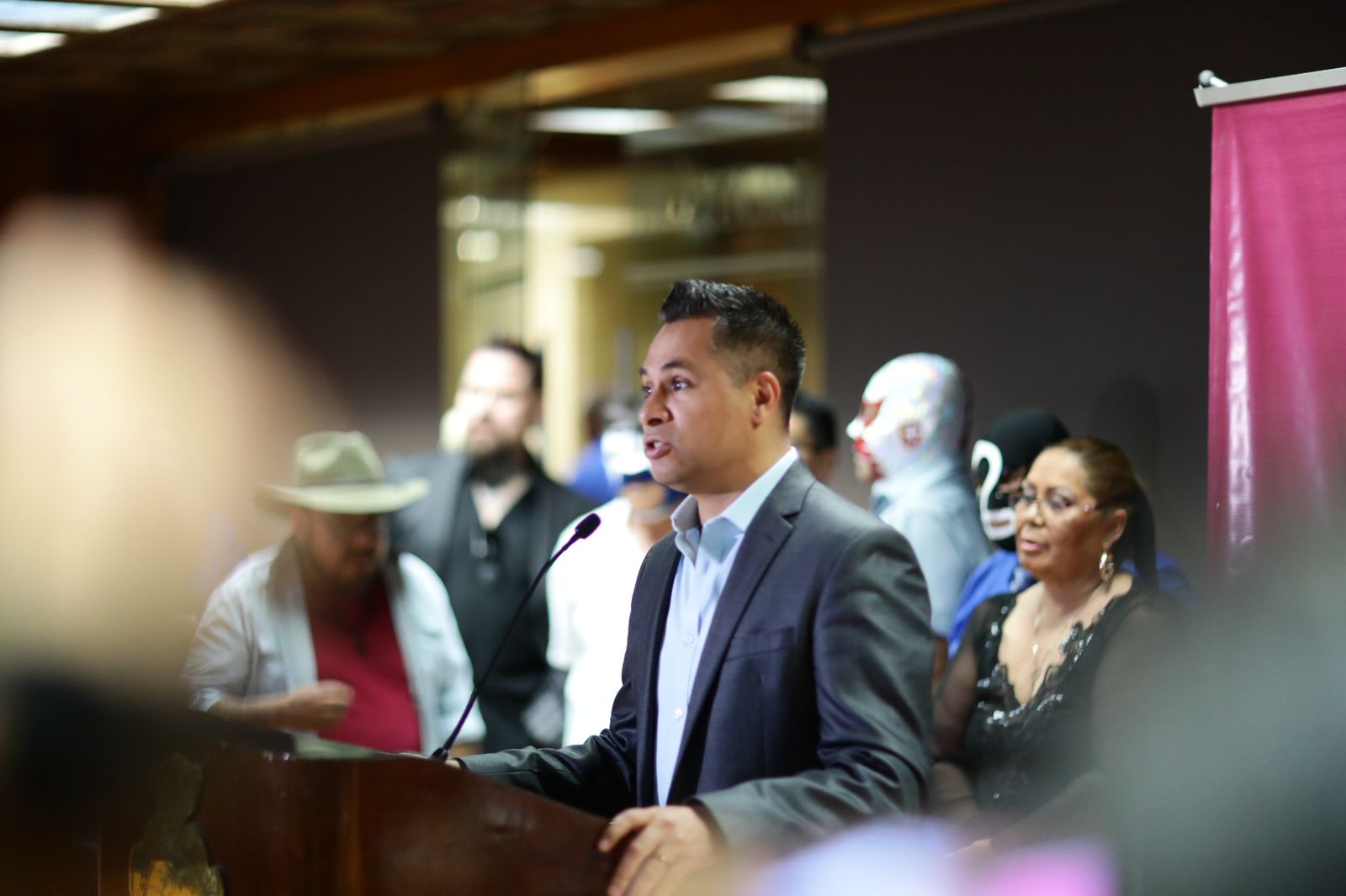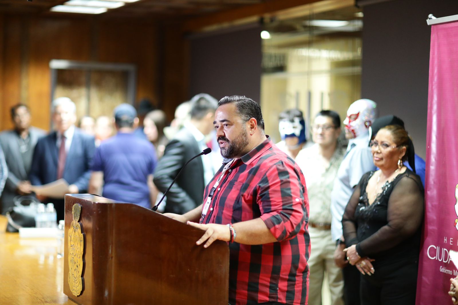 ??Estoy muy contento de colaborar y festejar este reconocimiento, poder aportar para la lucha libre en Ciudad Juárez, porque los luchadores dejaron huella para la afición y las familias juarenses con funciones de lucha libre con el Gimnasio Municipal Josué Neri Santos siempre a reventar?, dijo.