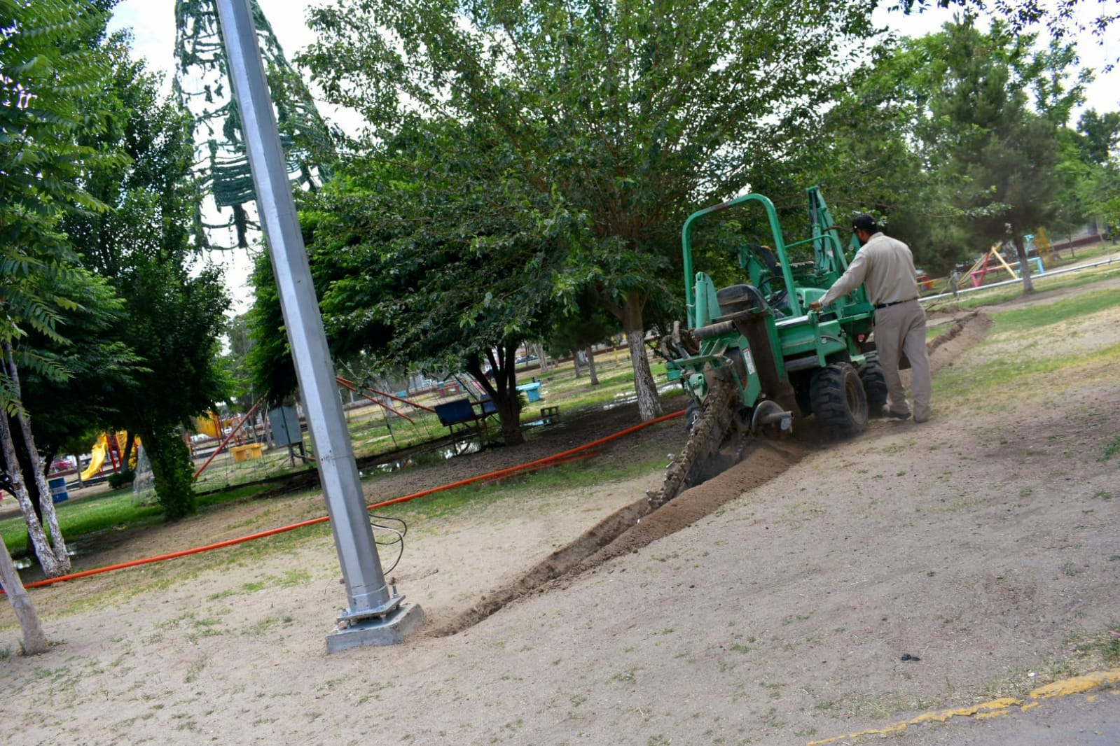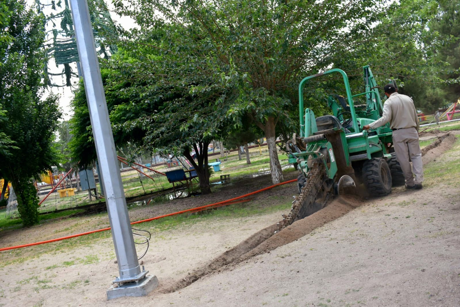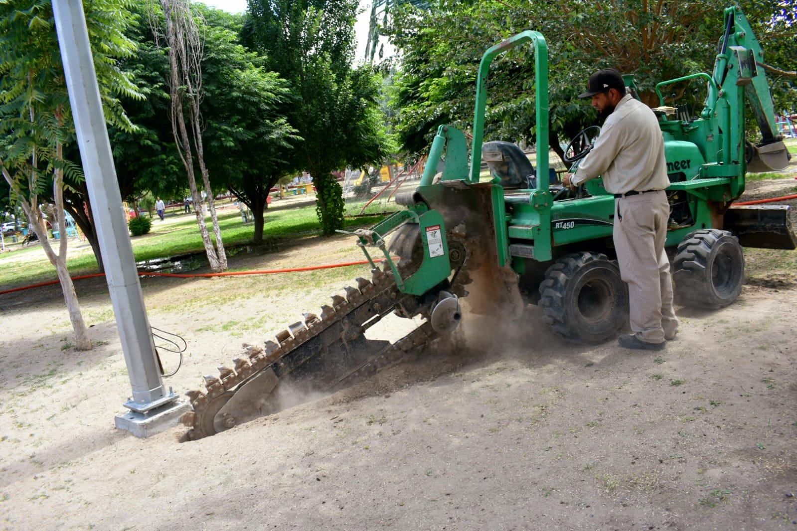 El funcionario detalló que se trabaja también en la instalación de 25 arbotantes que van desde sencillos, dobles, curvos y tipo araña, con el fin de abarcar gran parte del parque, mejorando la iluminación para que los visitantes puedan disfrutar del lugar.