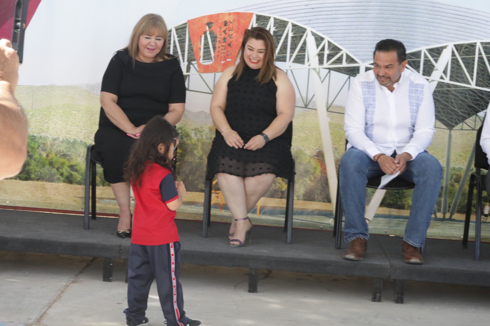 ??Gracias Presidente por hacer realidad nuestros sueños, este proyecto a lo mejor para ustedes es uno más, se suma a todos los que tienen, pero para nosotros es de suma importancia porque cuando fuimos enterados del domo no podíamos creerlo y ahorita que vemos los hechos, la realidad, es inmensamente emocionante, muchísimas gracias?, expresó la directora del preescolar, Itzel Bojórquez Sotelo.