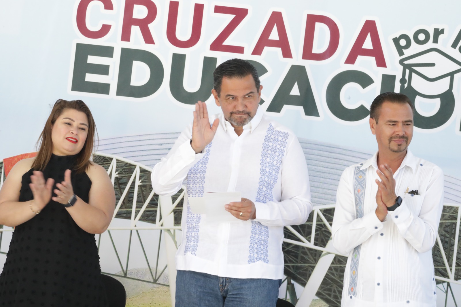 A la entrega acudieron también el regidor Jorge Marcial Bueno Quiroz y Martha Aracely González Holguín, directora de Educación.