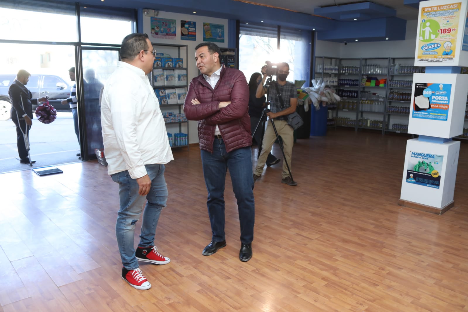 Acompañado del director general de Desarrollo Económico, Iván Pérez Ruiz, el alcalde dio un recorrido por los diversos. anaqueles donde se muestran los productos.