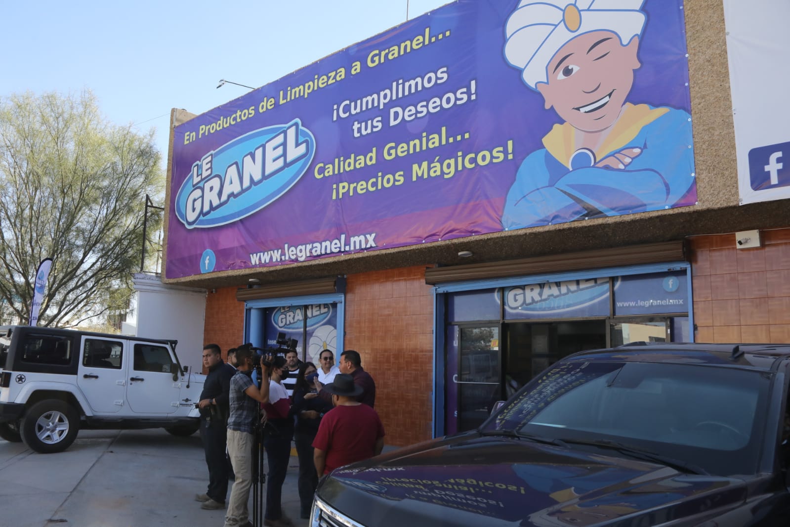 El Presidente Municipal, Cruz Pérez Cuéllar, encabezó el corte de listón inaugural de la sucursal 24 de Le Granel, una tienda de productos de higiene para el hogar.