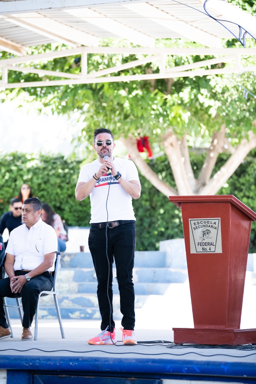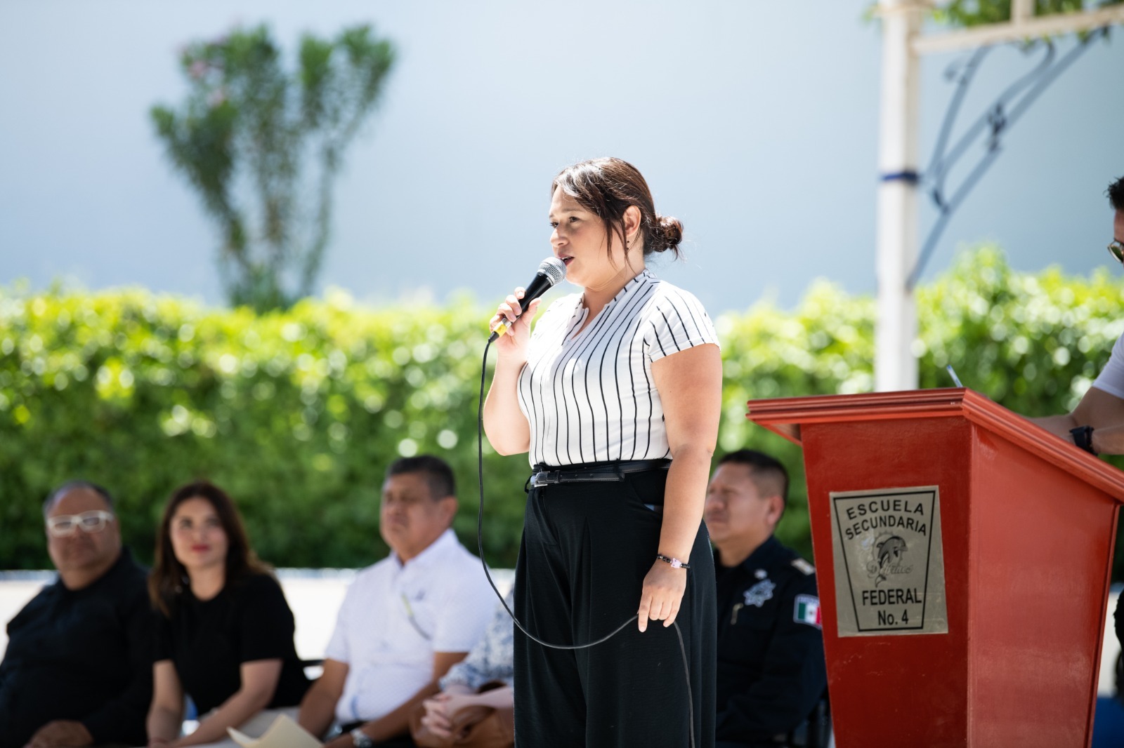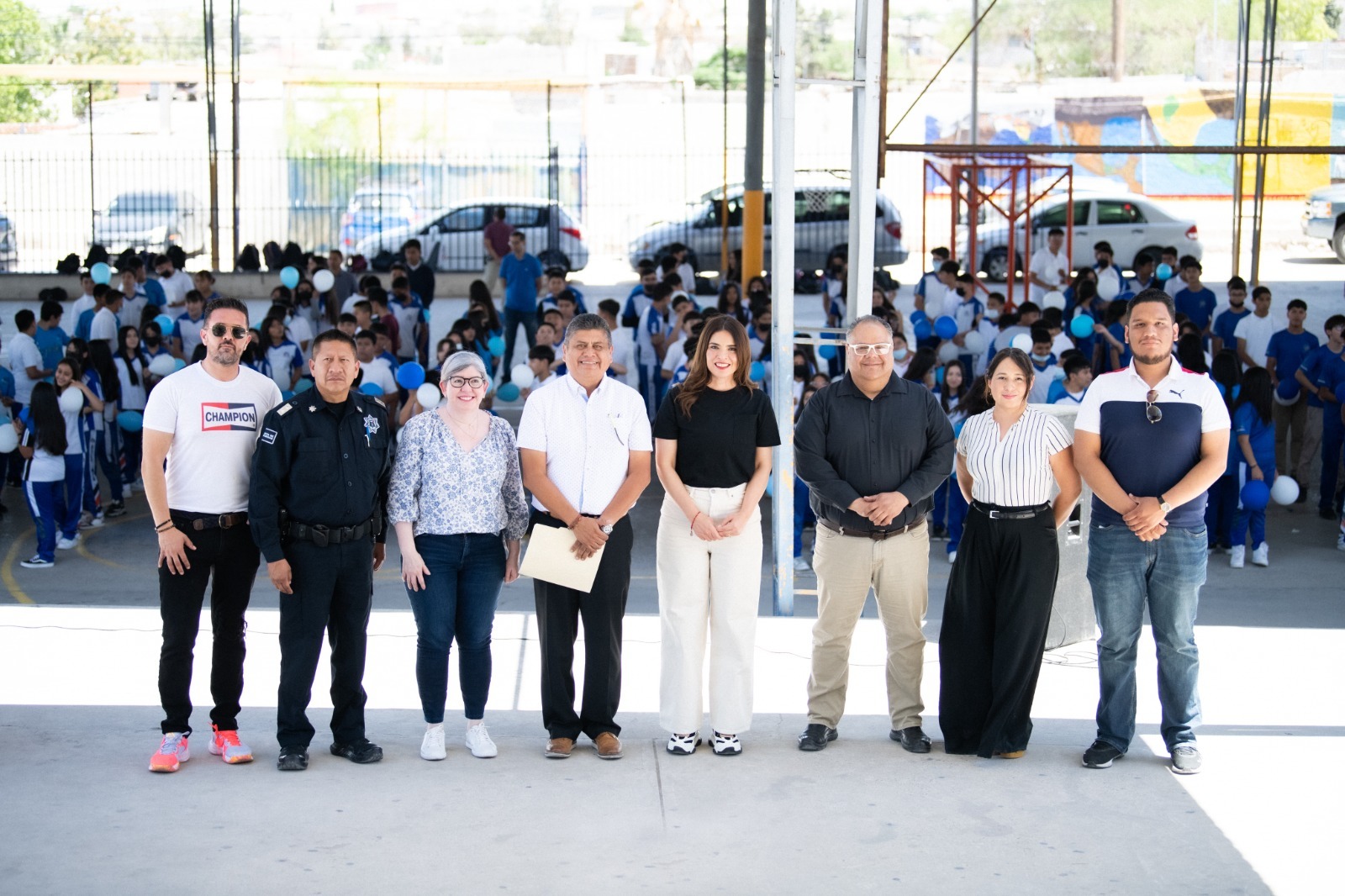 La presidenta del Sistema de Desarrollo Integral de la Familia del Municipio de Juárez, Rubí Enríquez, asistió a la Escuela Secundaria Federal 4 para dar inicio a la Feria por la paz, la Igualdad y una vida libre de violencia para niñas, niños y adolescentes, que la Secretaría de Seguridad y Protección Ciudadana de Gobierno Federal, con el apoyo de la estrategia municipal Florece, están trabajando en varias escuelas de la localidad.