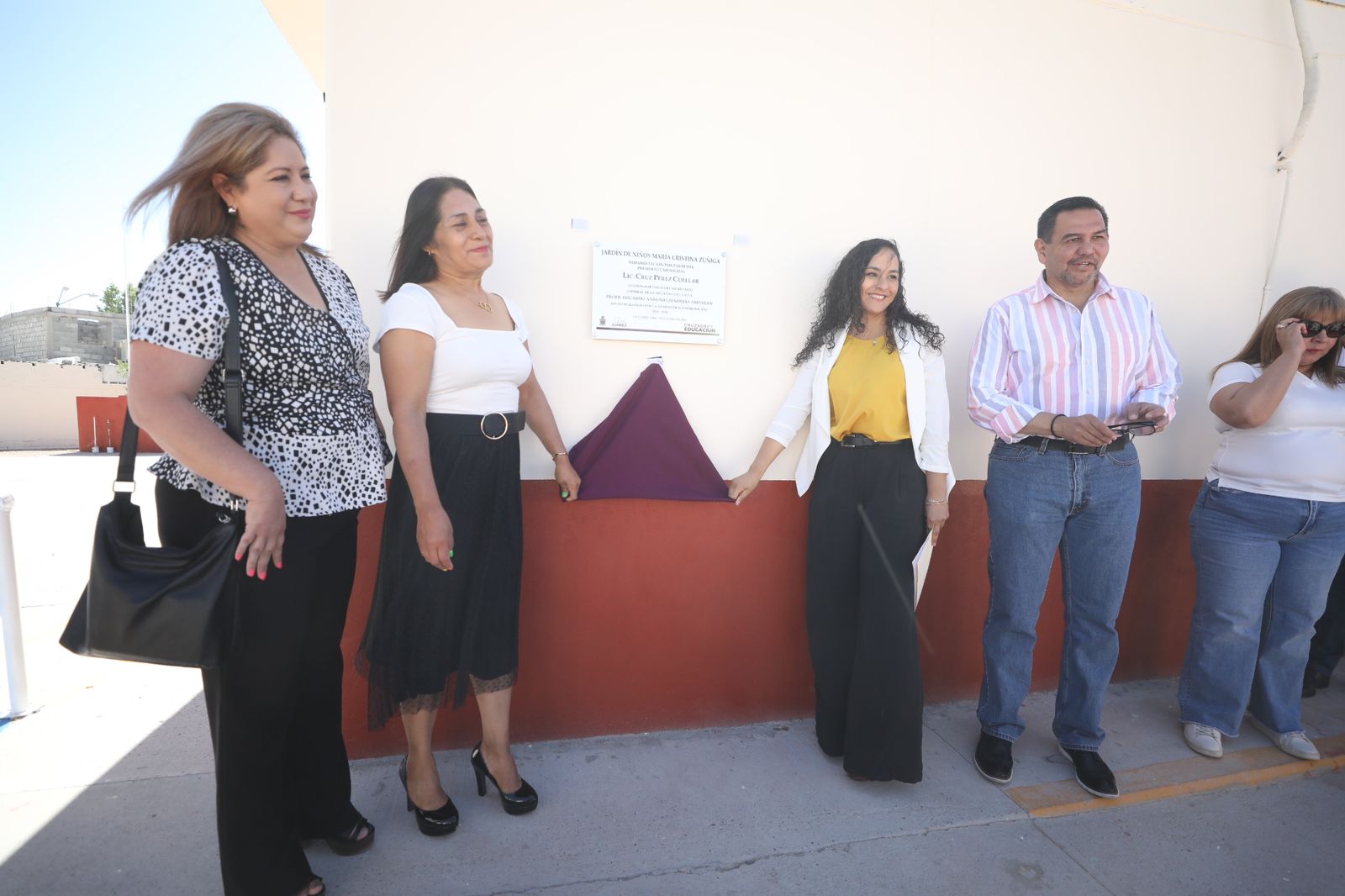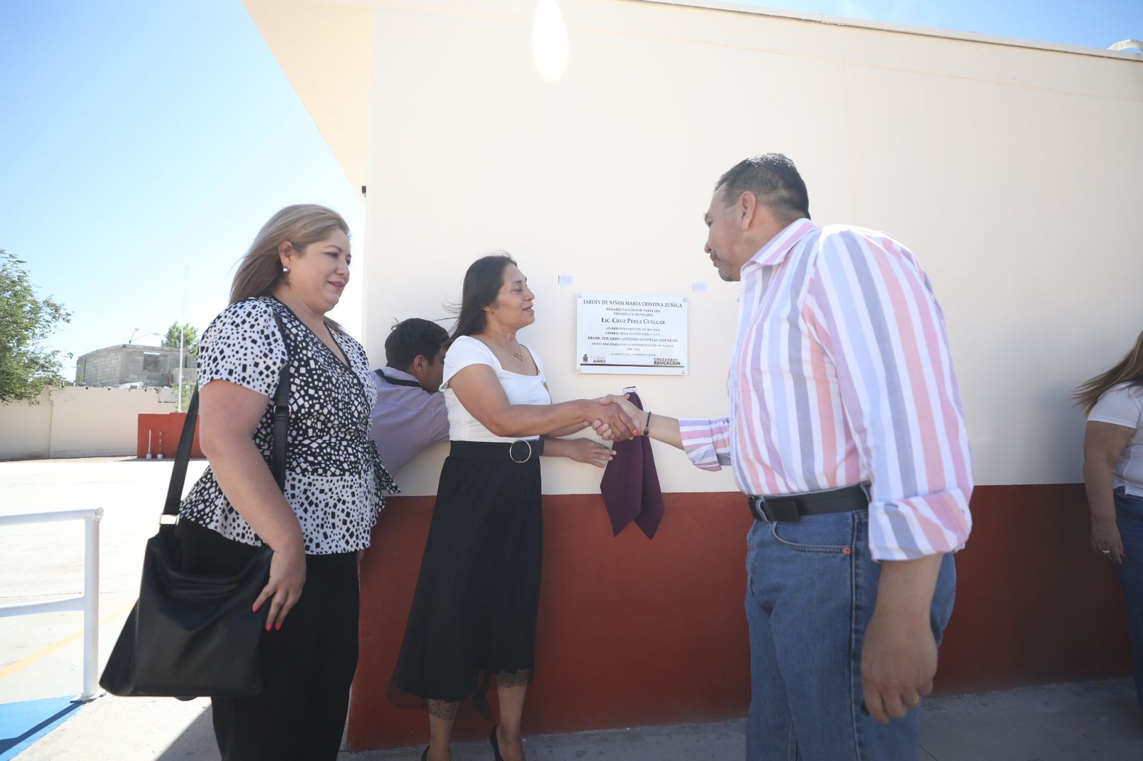 Este día el Presidente Municipal, Cruz Pérez Cuéllar, entregó las obras de rehabilitación del Jardín de Niños María Cristina Zuñiga, en beneficio de cientos de familias de la colonia Médanos.