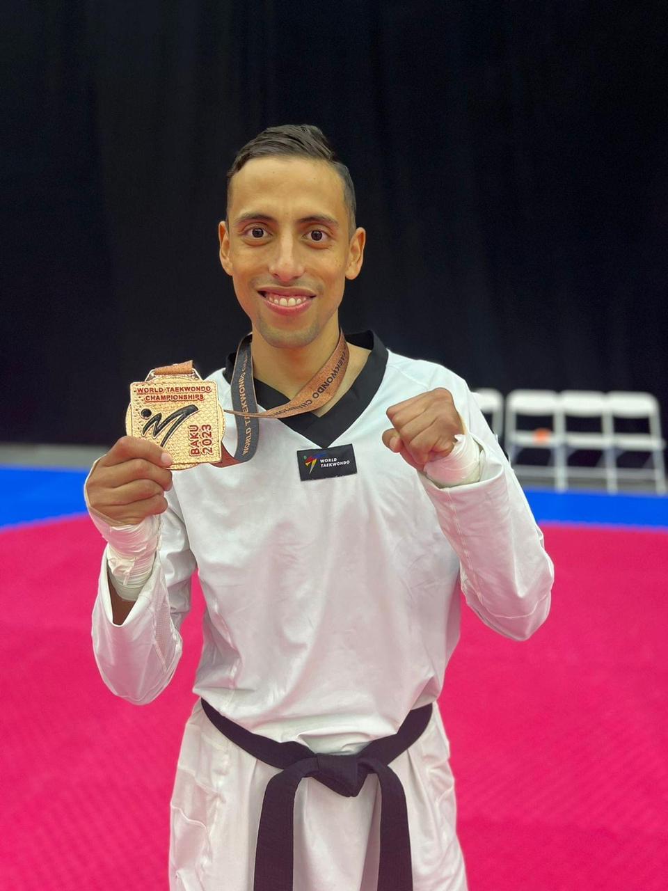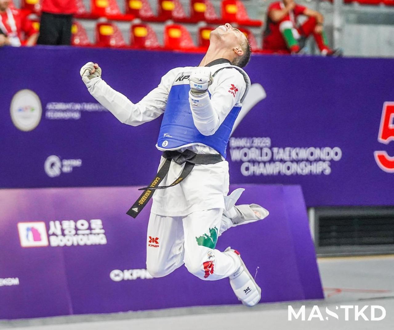 El juarense Carlos Navarro ganó medalla de bronce en el Campeonato Mundial de Taekwondo 2023 que se realiza en Azerbaiyán, luego de obtener la victoria en cuatro combates hasta llegar a la semifinal, donde cayó con el representante de Turquía.