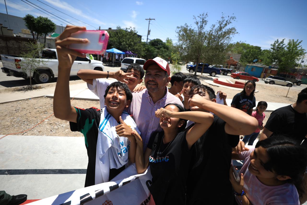 Esta mañana el Presidente Municipal, Cruz Pérez Cuéllar, estuvo en la colonia Rincón del Solar para entregar las obras de rehabilitación del parque comunitario Gente Mágica.