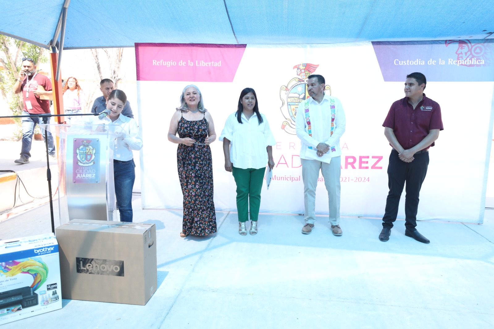 En la entrega del Jardín de Niños, se contó con la presencia de la supervisora de Zona número 46 de Preescolar, Ana María Pérez Soto y Christian Michel Ibarra, presidenta de la Sociedad de Padres de Familia.