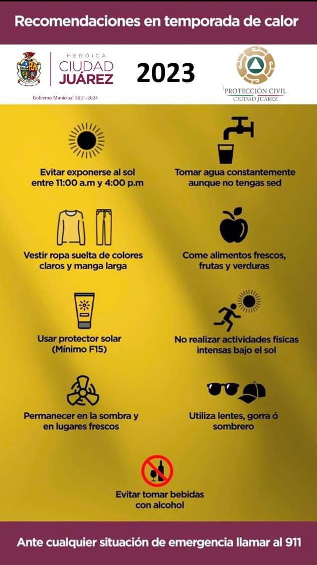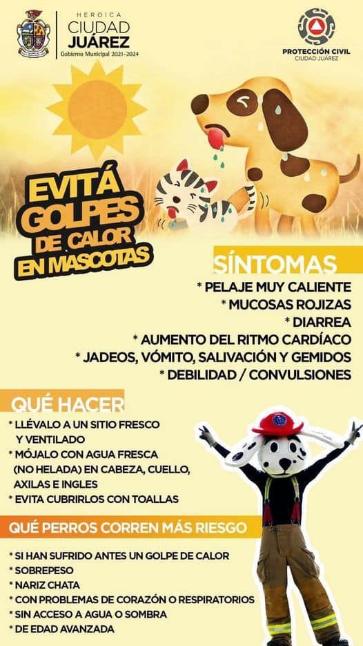 Ante las altas temperaturas que se registran en la región, la Dirección General de Protección Civil ha emitido recomendaciones a la población para que tome precauciones y se proteja de los golpes de calor, además, se recomienda también prestar atención a las mascotas y tomar medidas para evitar que sufran las consecuencias del calor extremo.