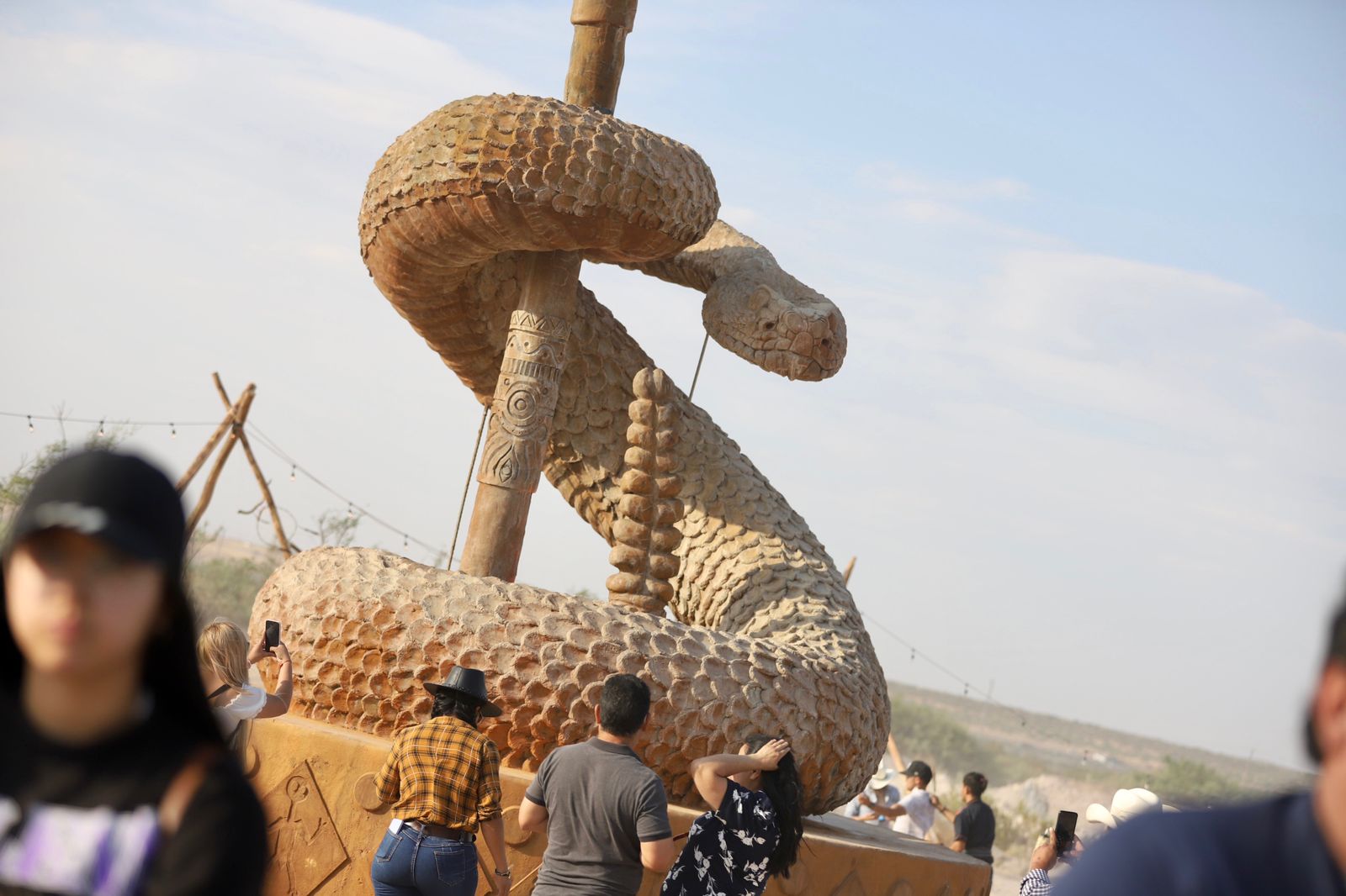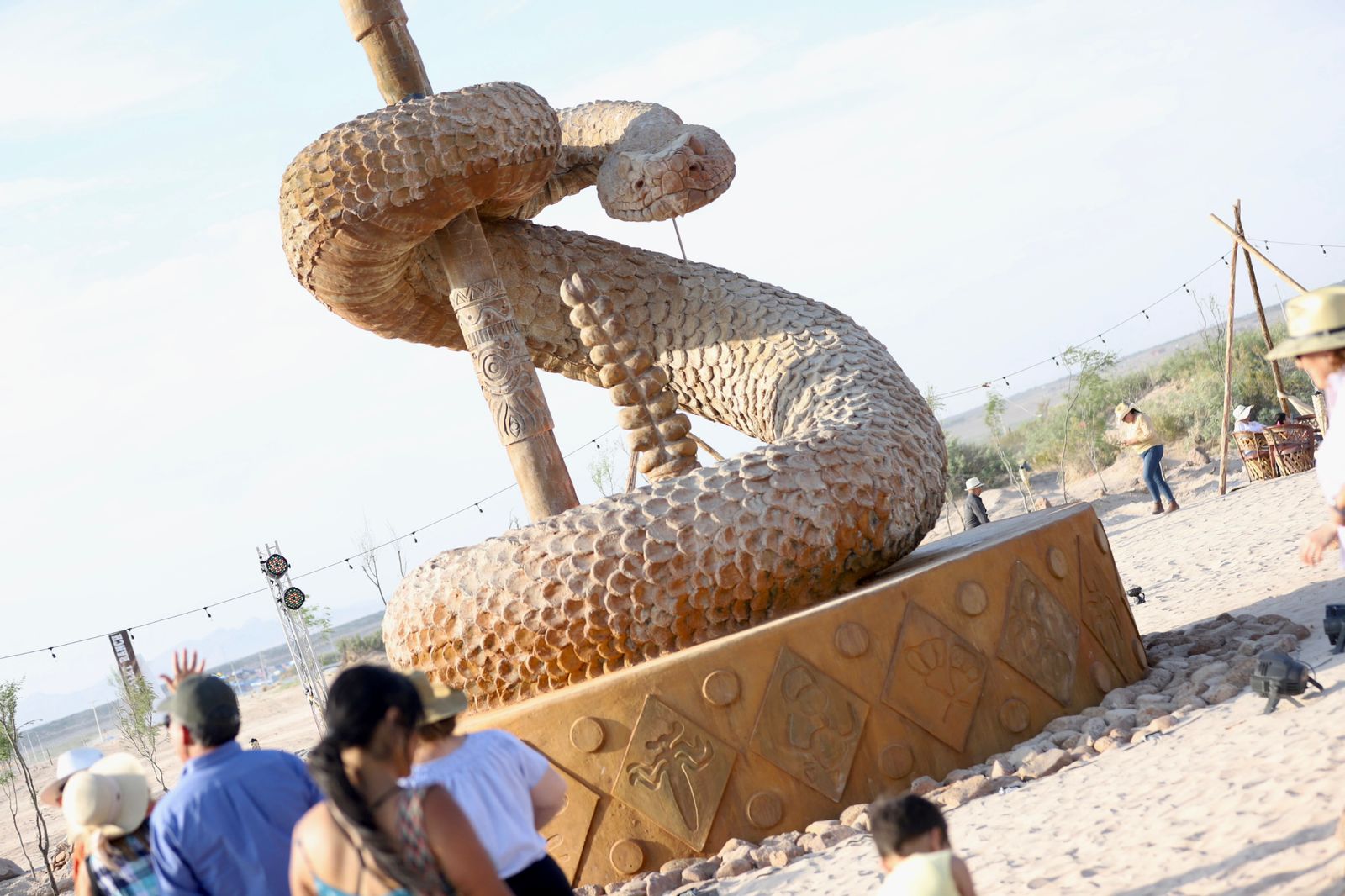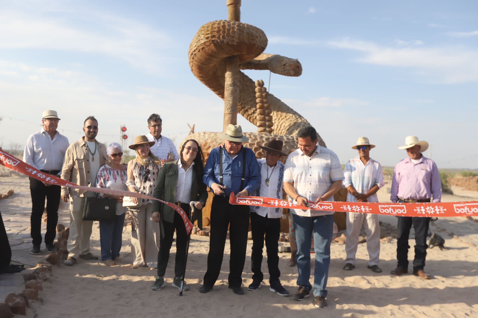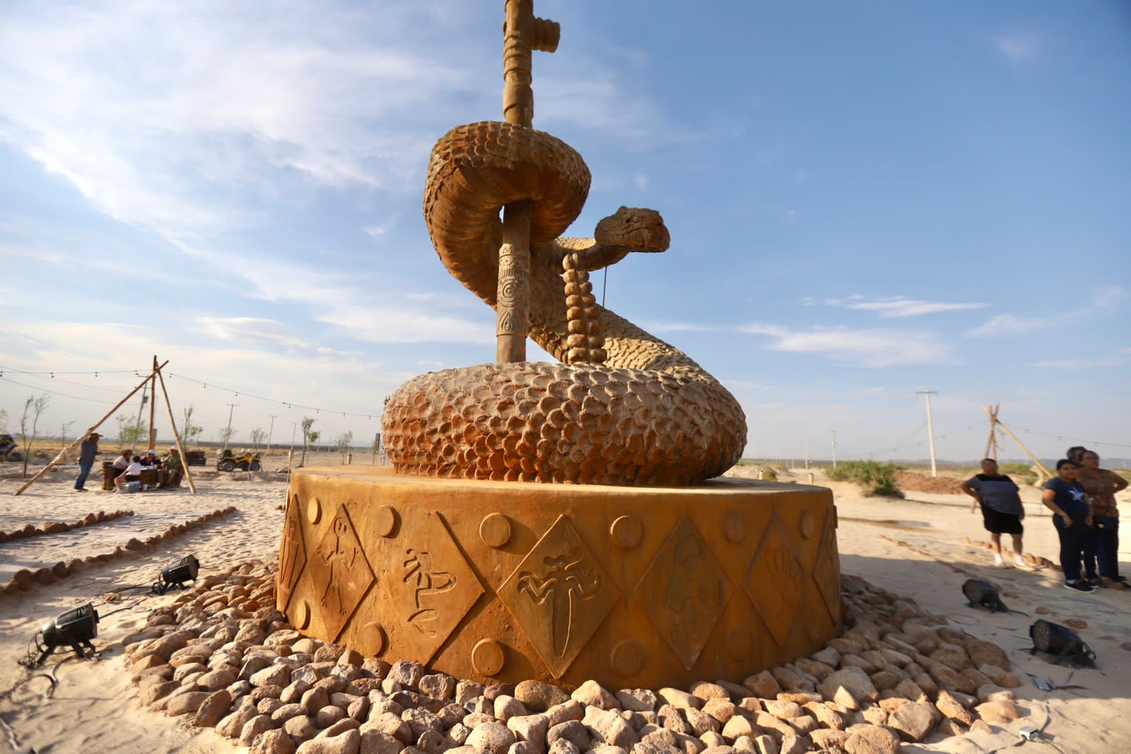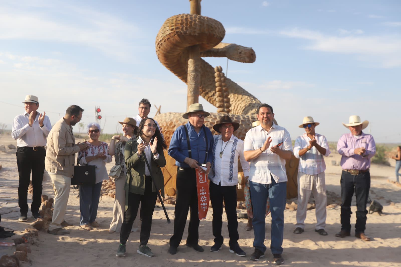 El Presidente Municipal, Cruz Pérez Cuéllar, participó en la ceremonia de inauguración de la escultura ??Guardián del Territorio?, una gigantesca escultura con forma de una víbora de cascabel, la cual puede ser apreciada desde hoy en Samalayuca.