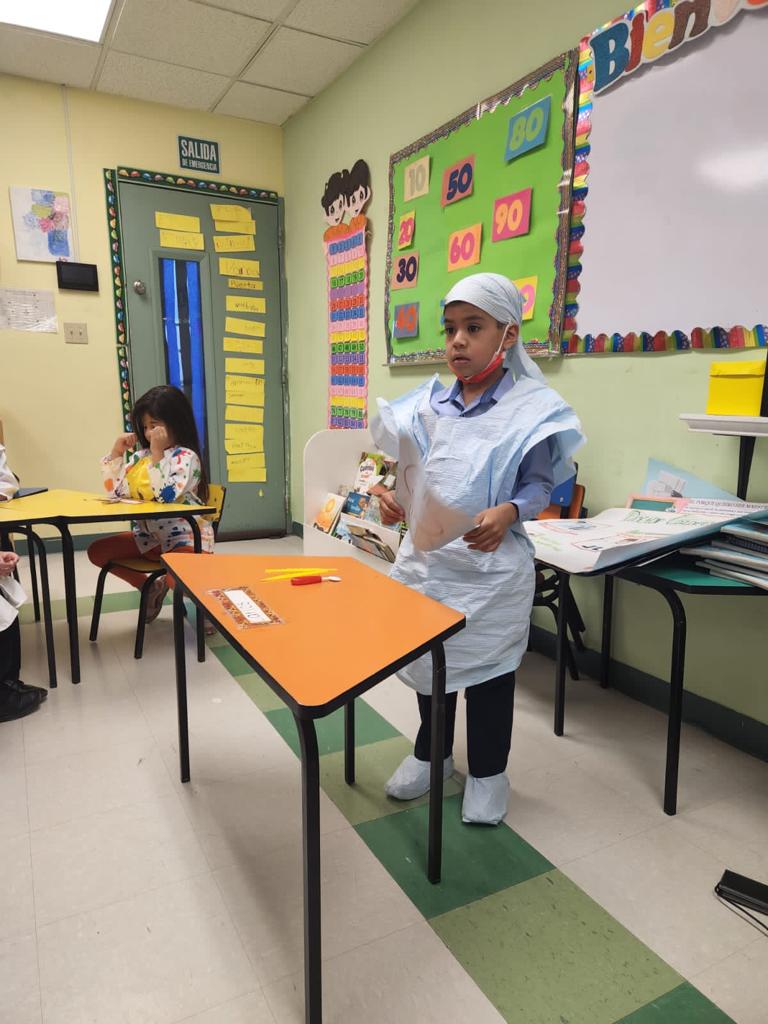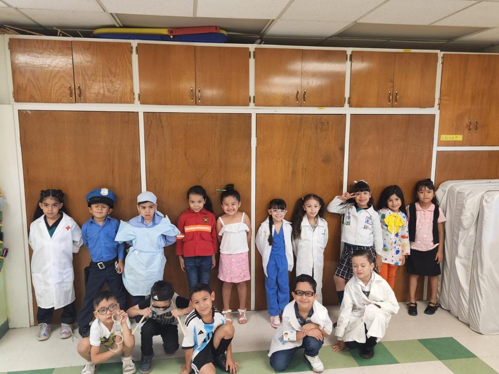 La maestra Nydia Hernández, titular del área, señaló que previo a esta actividad se habló con los infantes sobre las profesiones y oficios, donde ellos pudieron elegir alguna de estas para presentarse con material didáctico y caracterizados.